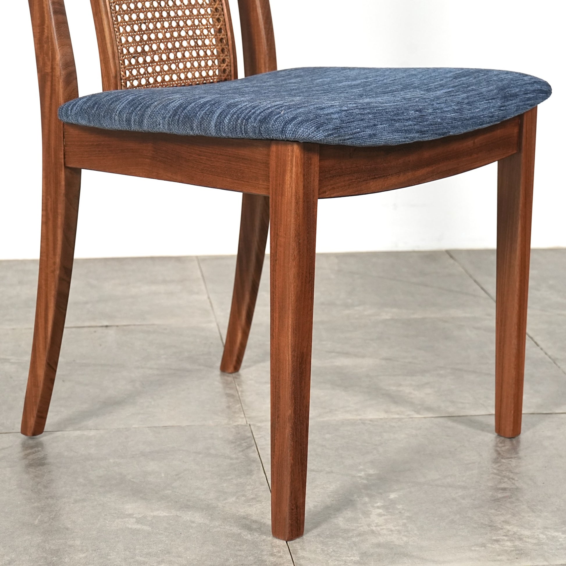 シンプルなデザインだからこそ際立つ上質なチークの質感や、背もたれに編み込まれたラタンの異素材感が良いアクセントとなった秀逸なバランスです。
