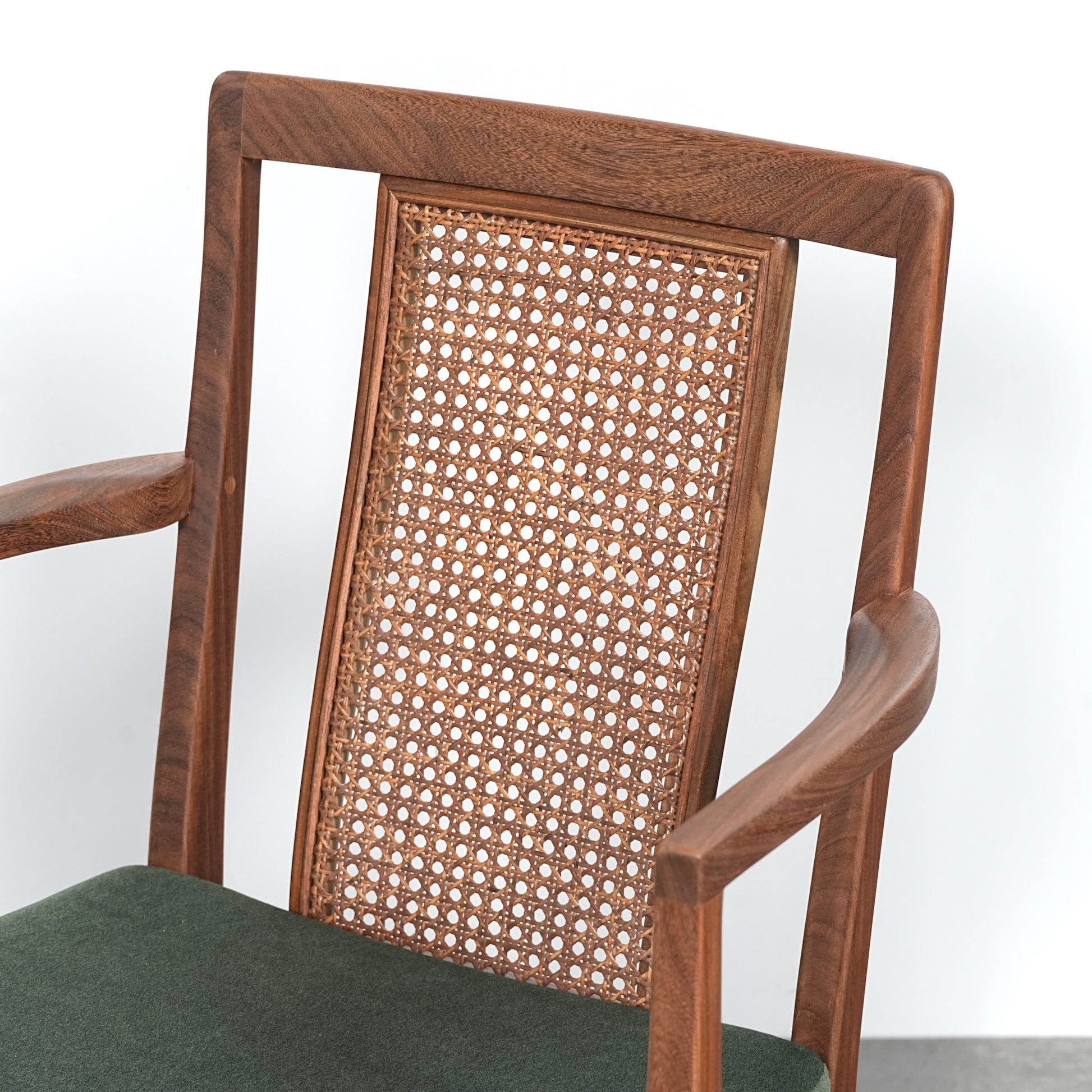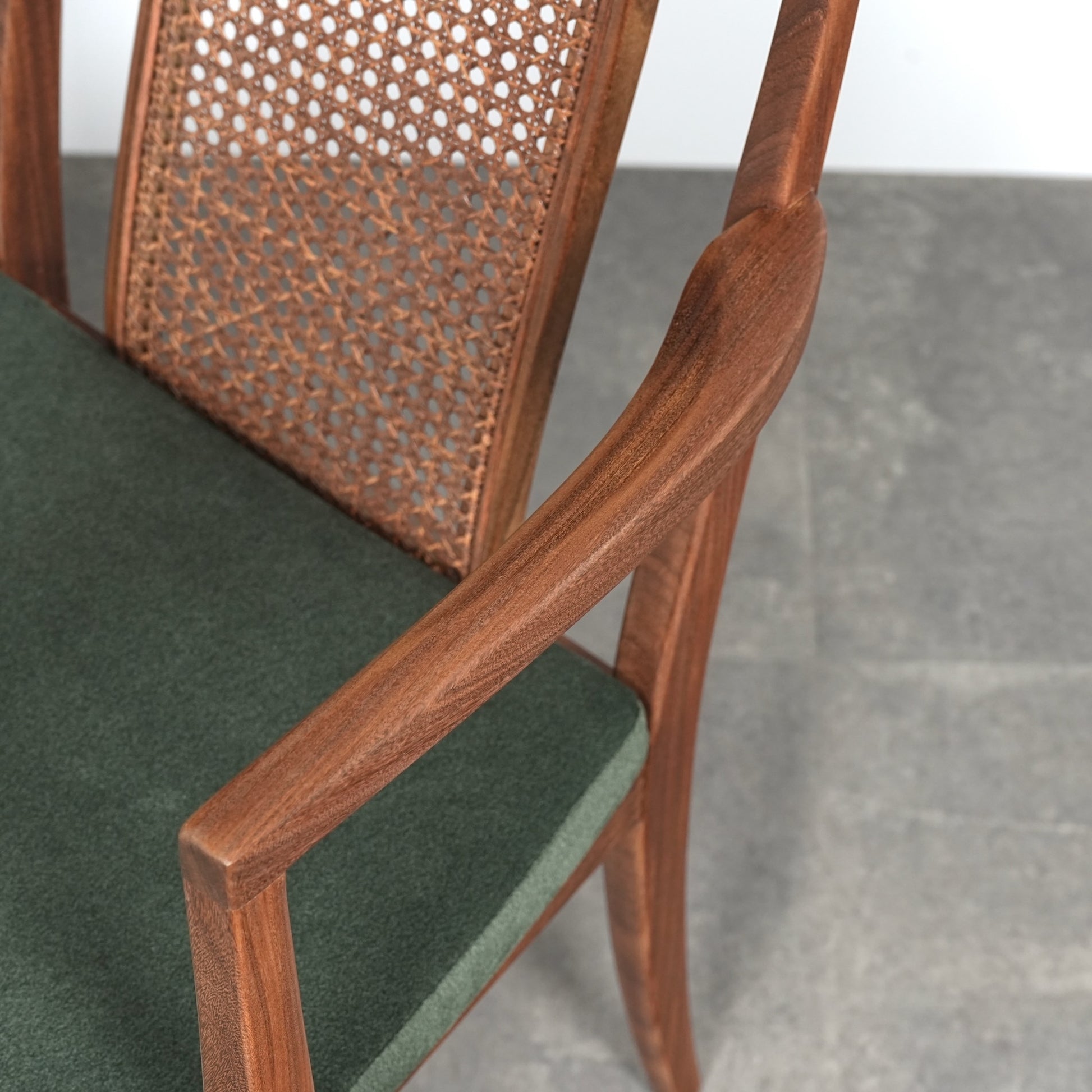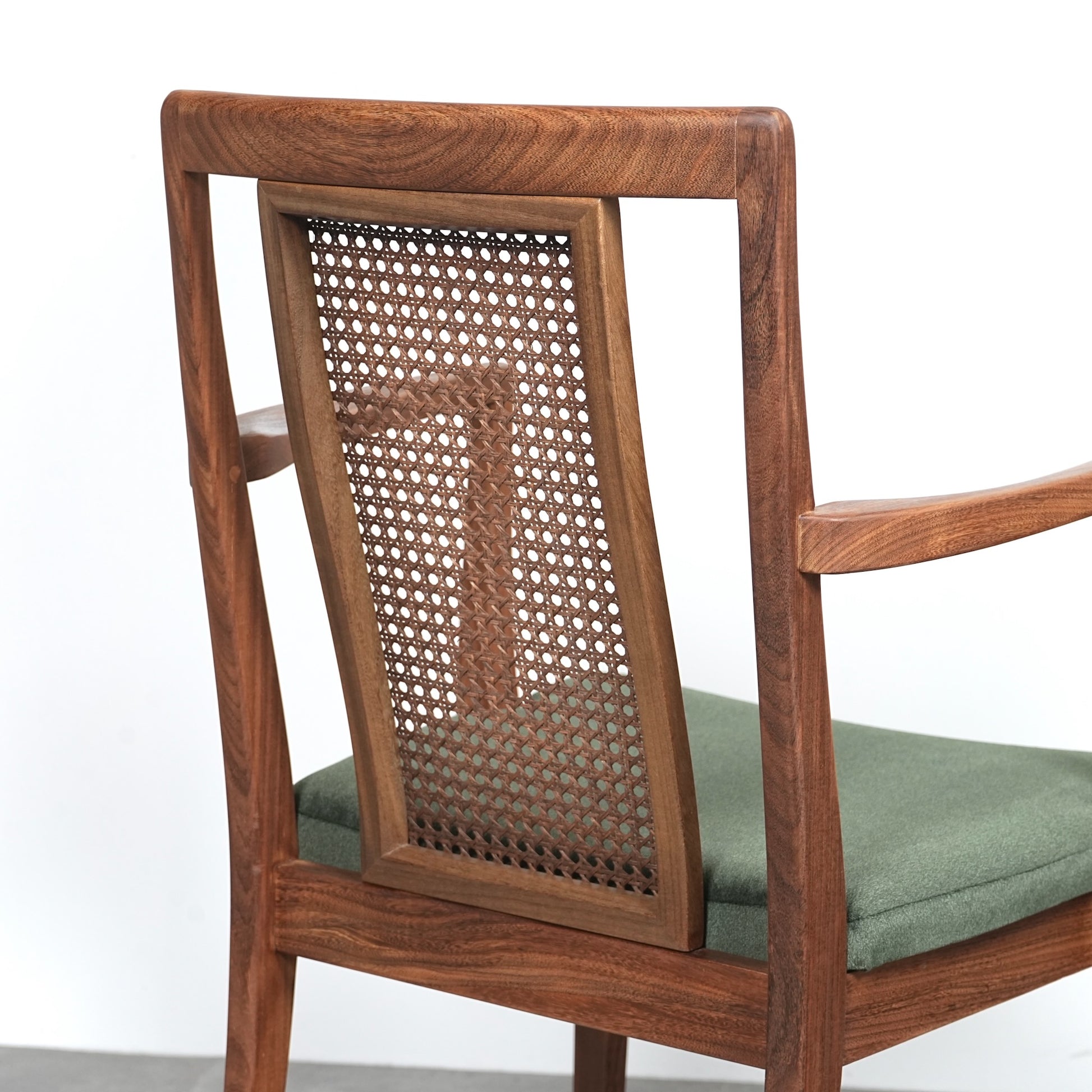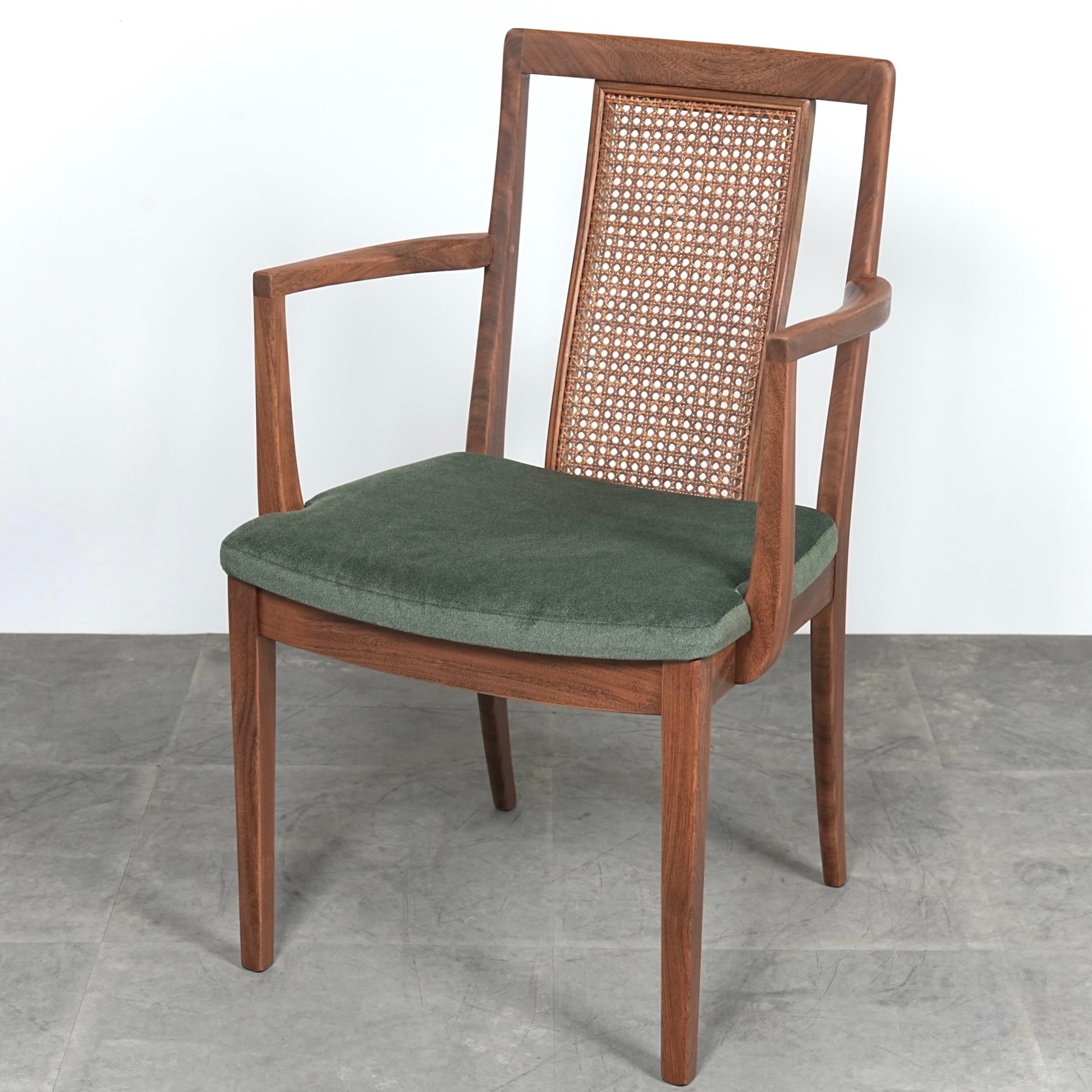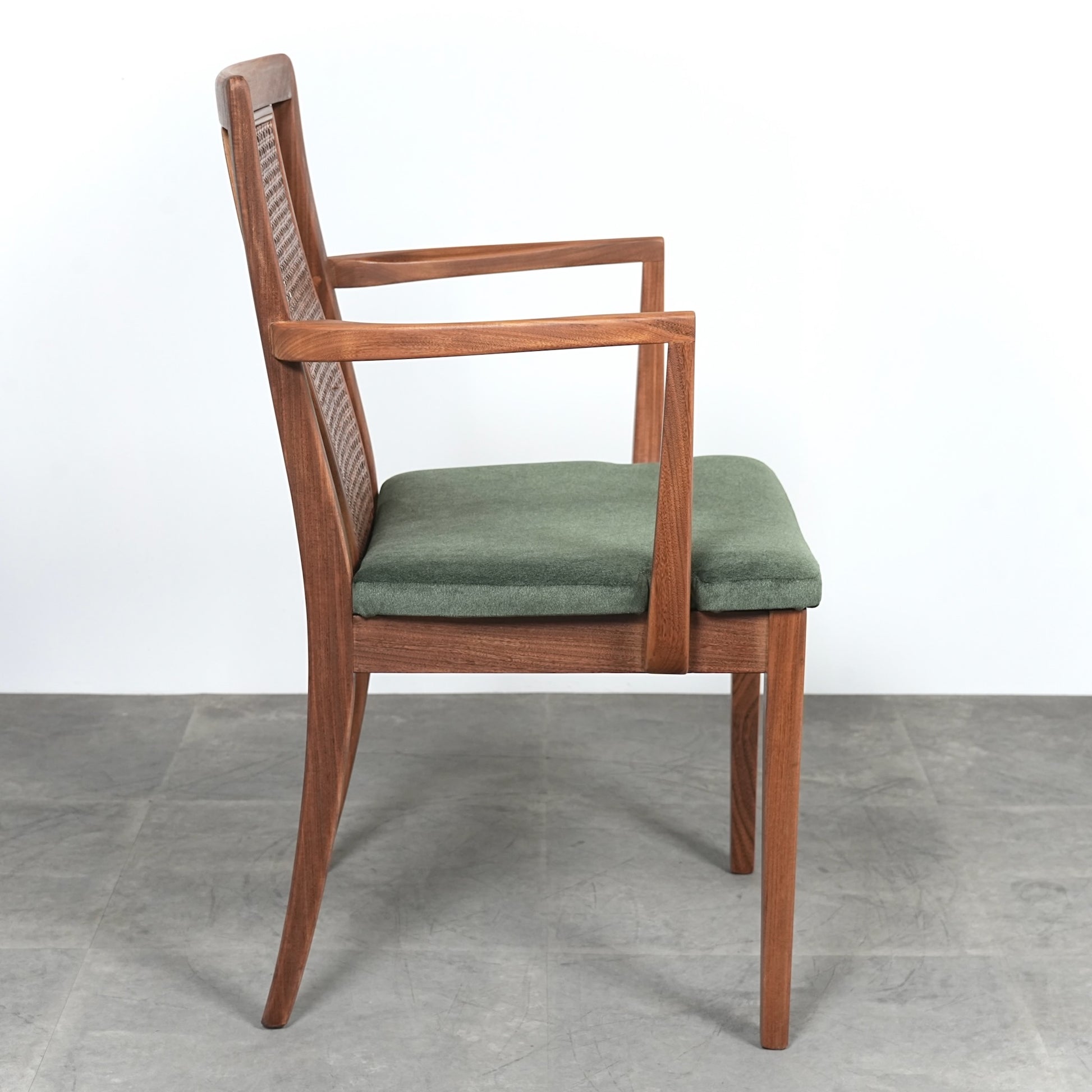 シンプルなデザインだからこそ際立つ上質なチークの質感や、背もたれに編み込まれたラタンの異素材感が良いアクセントとなった秀逸なバランスです。