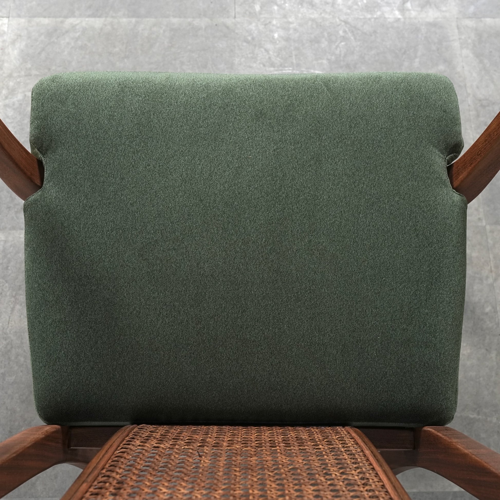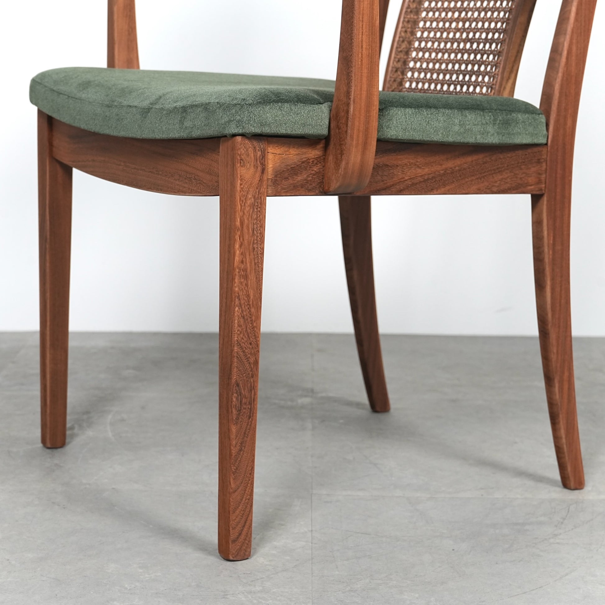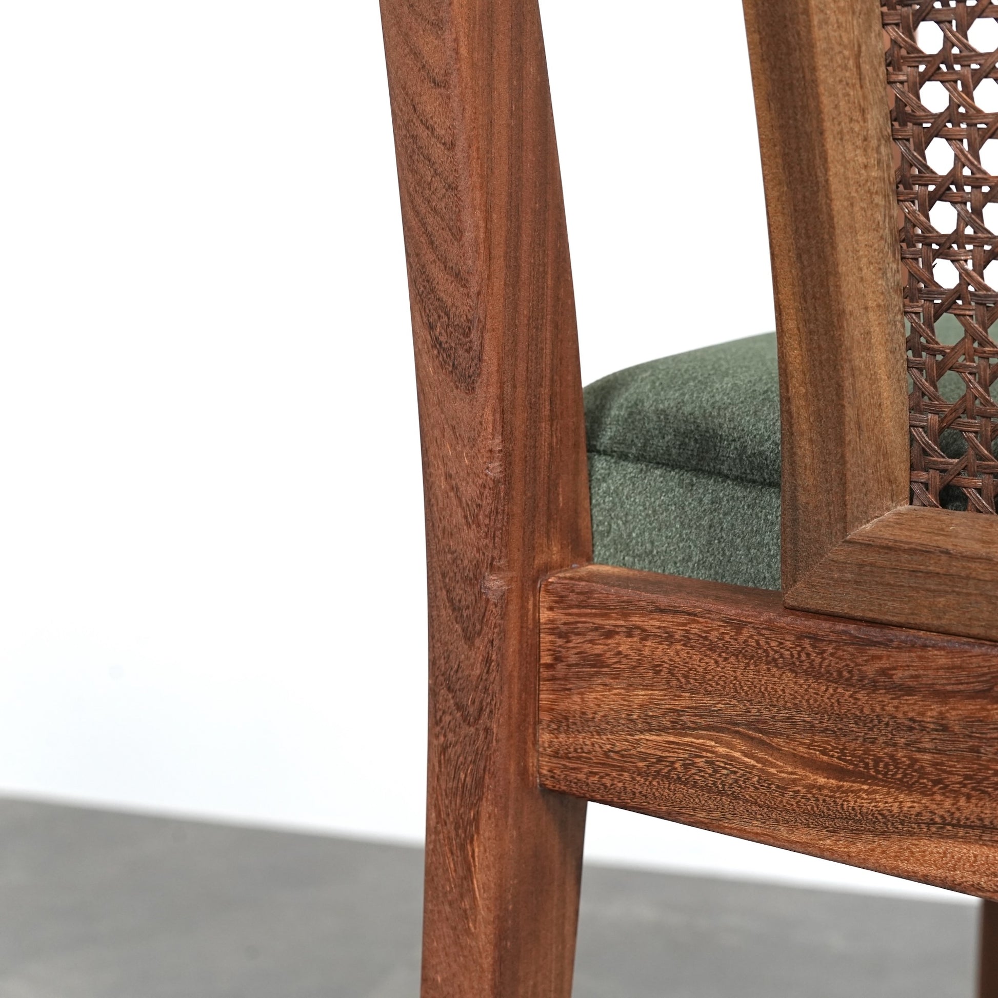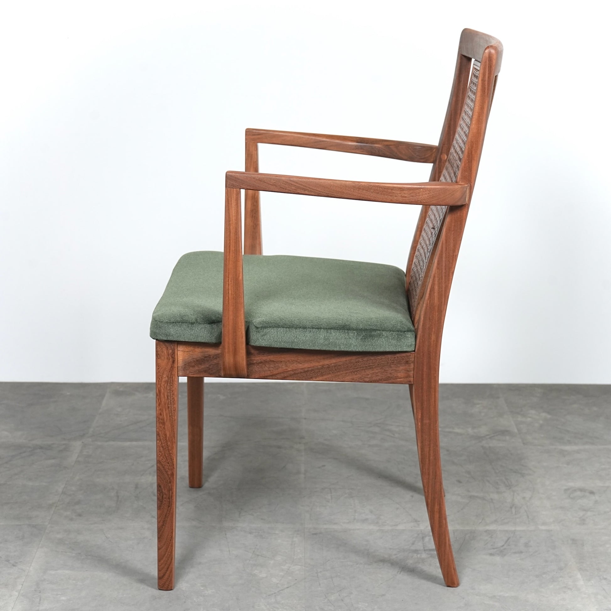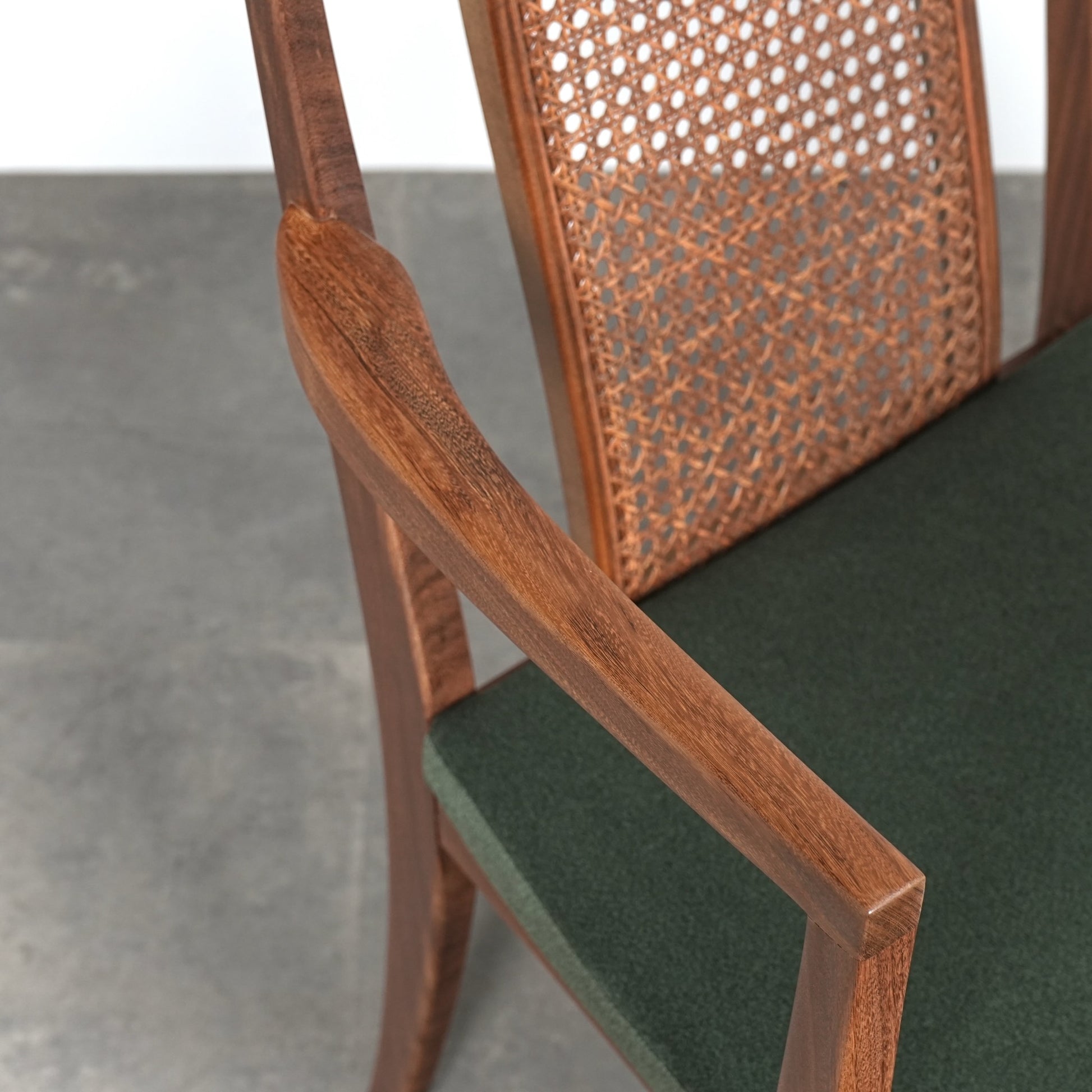 シンプルなデザインだからこそ際立つ上質なチークの質感や、背もたれに編み込まれたラタンの異素材感が良いアクセントとなった秀逸なバランスです。