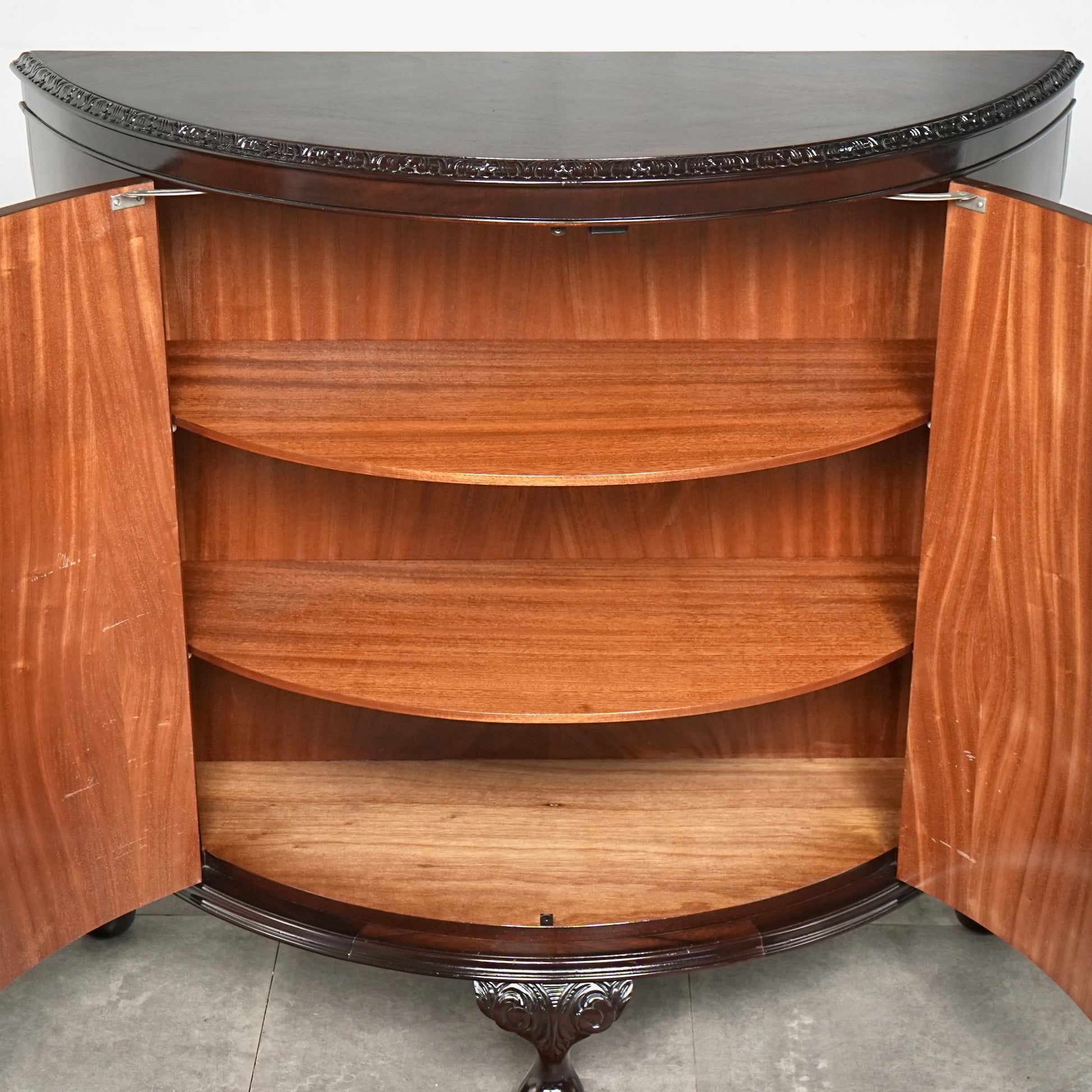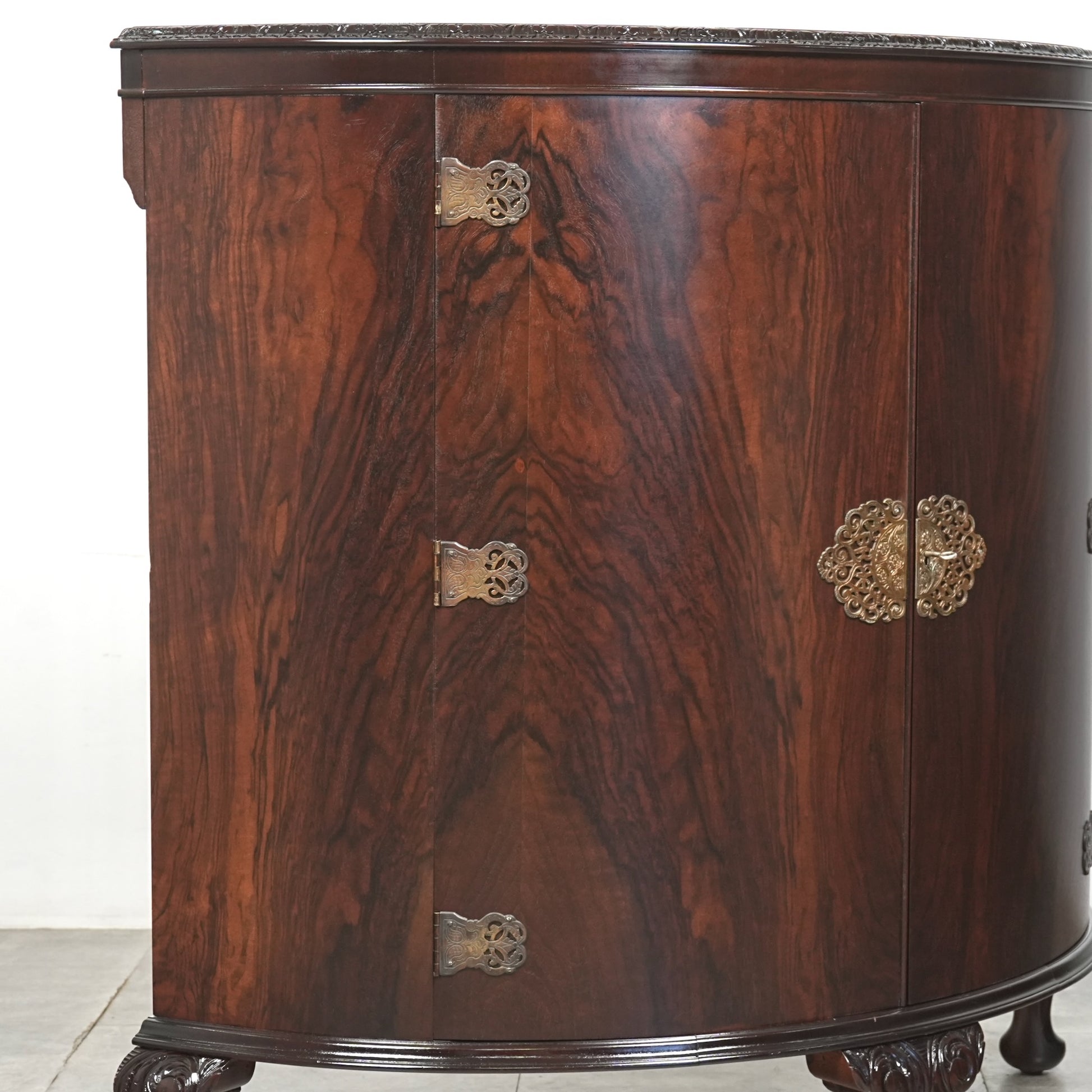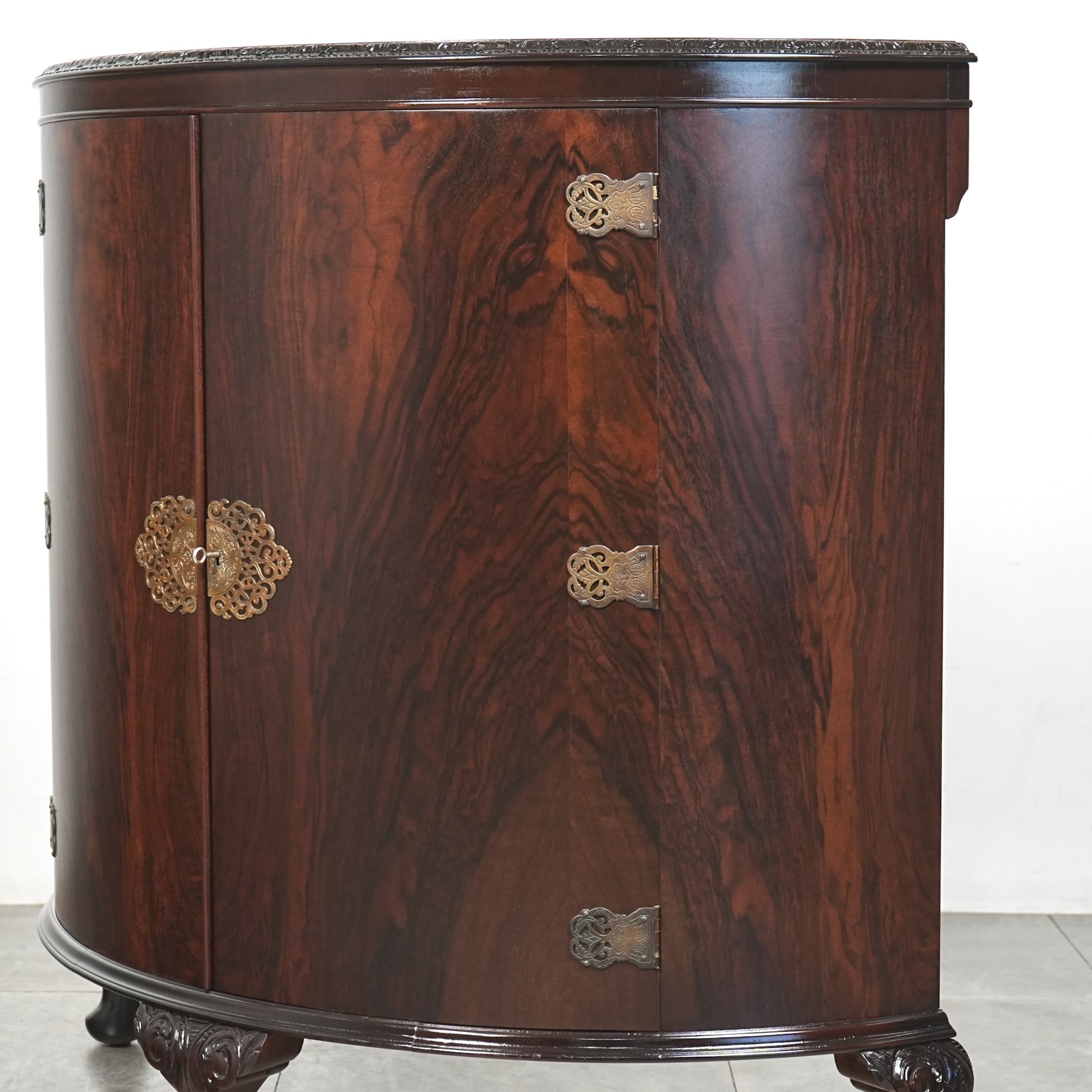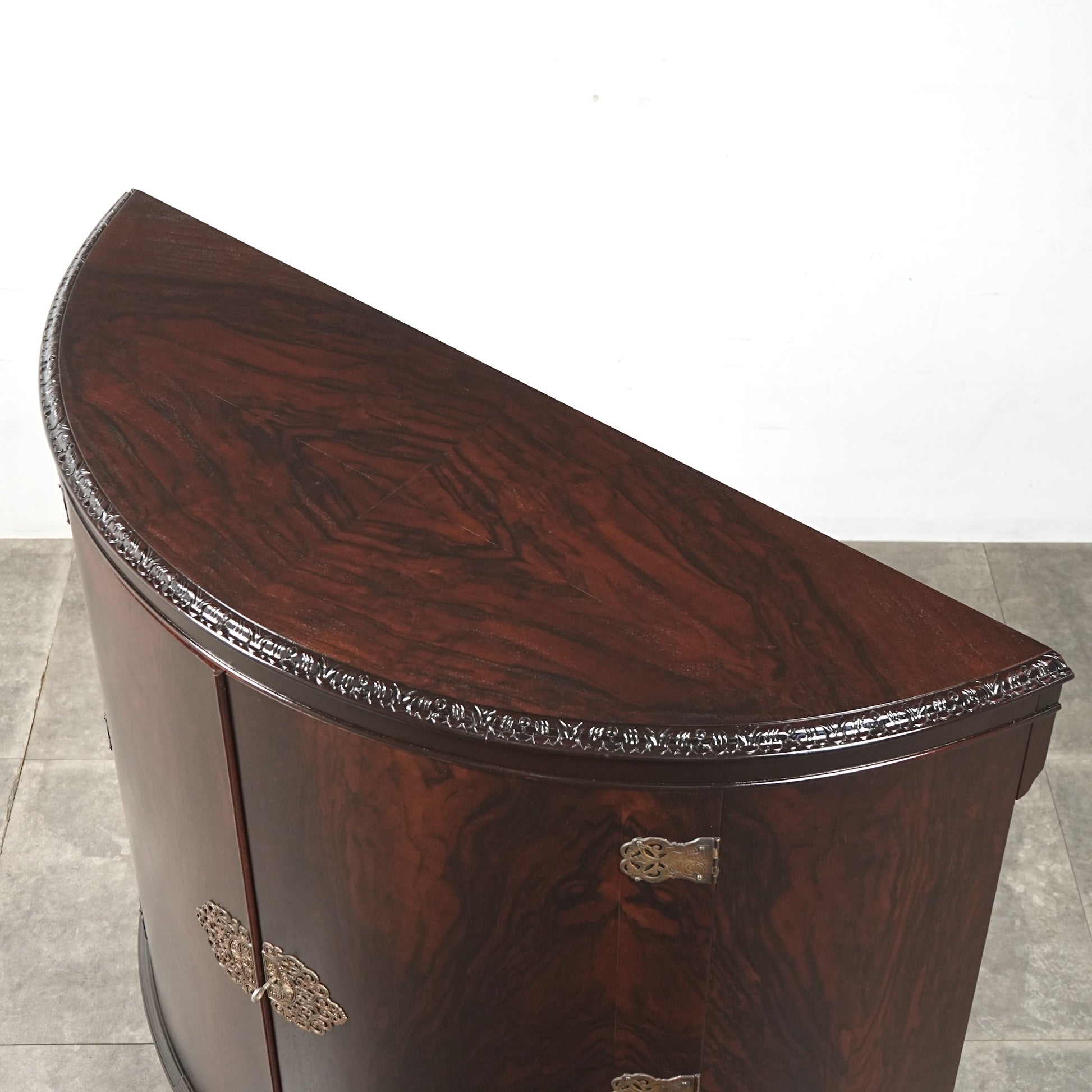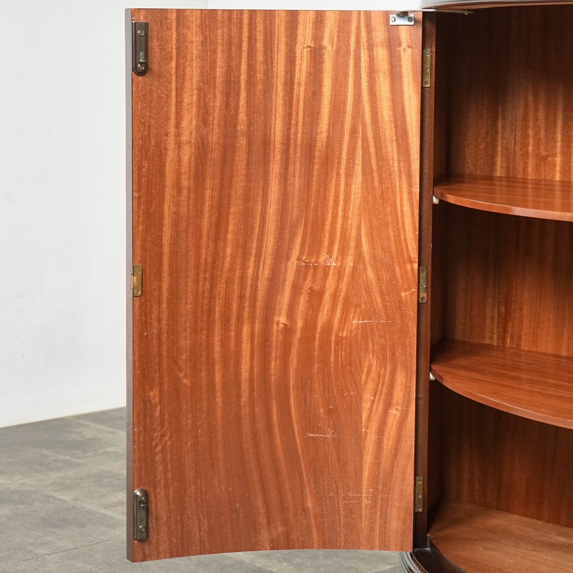 三大銘木のウォルナットならではの見事な木目と質感が印象的で、優雅で美しいラインを描く曲面扉からもその品質の高さを感じ取って頂けるのではないでしょうか。