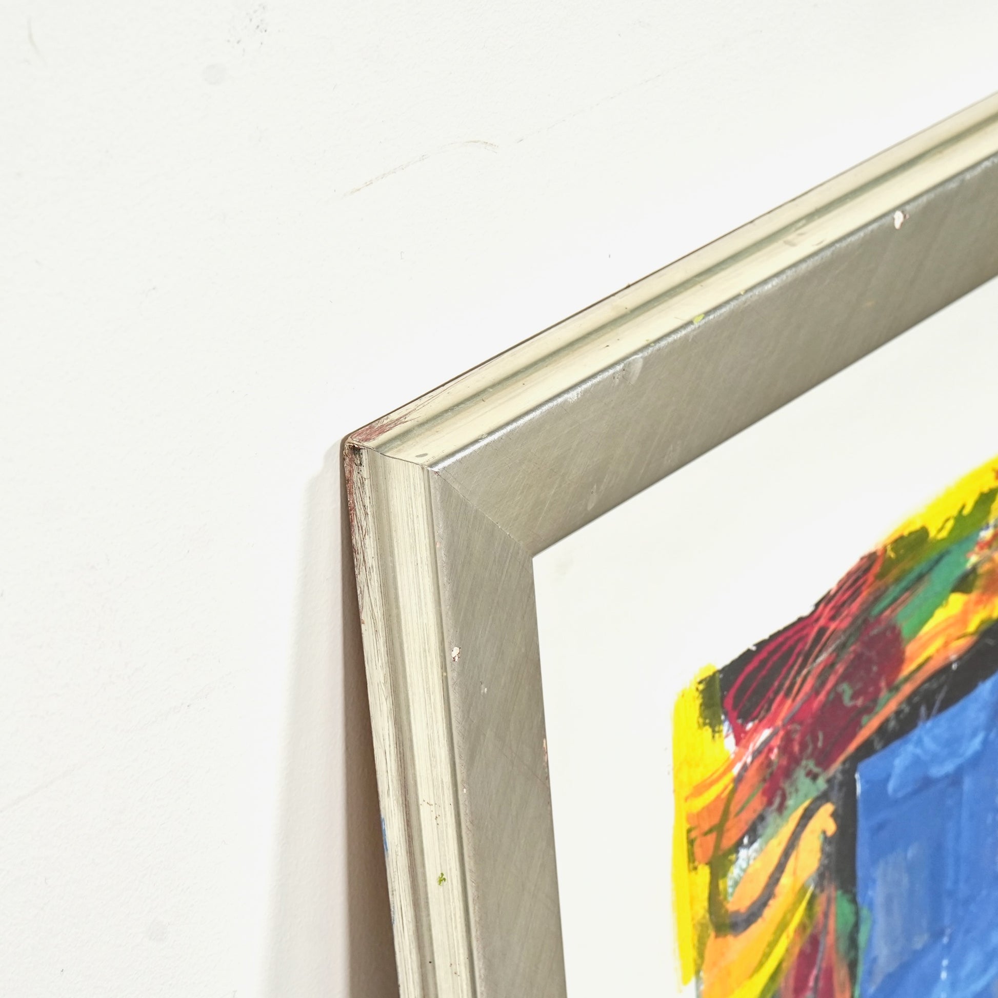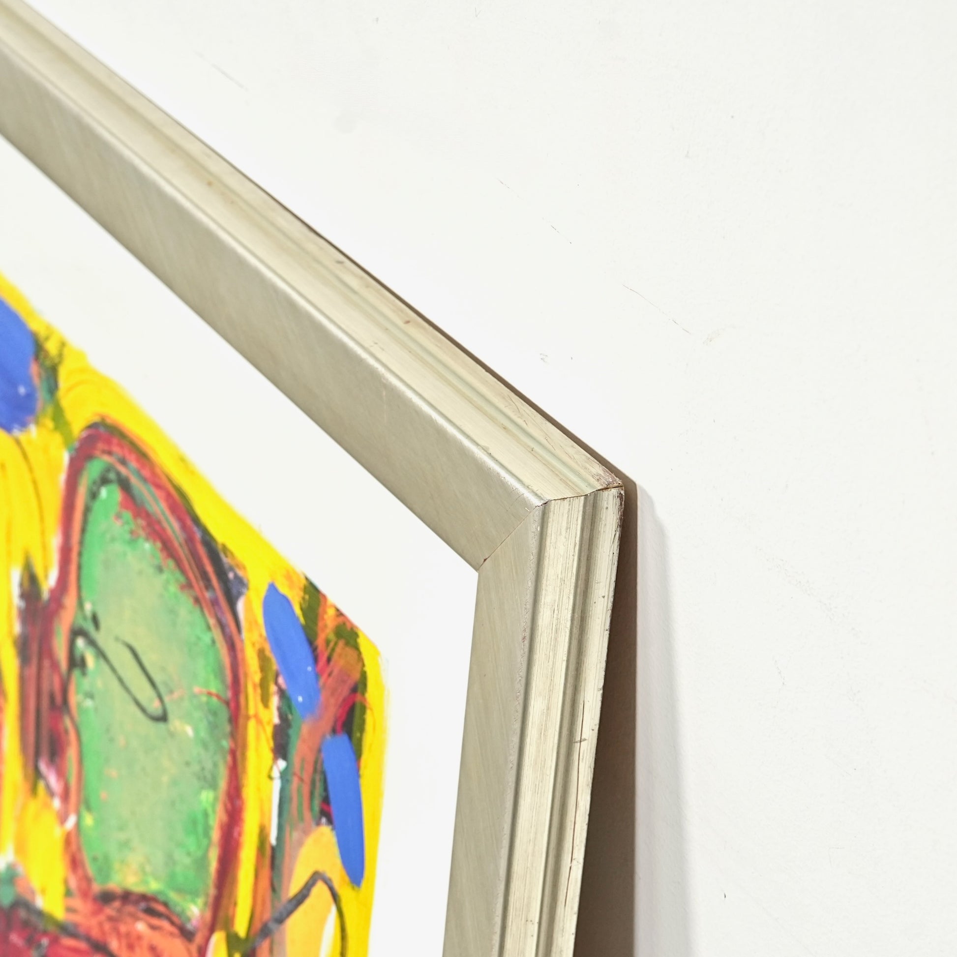 強烈な色彩と抽象化された人物モチーフが印象的な本作は、彼の表現スタイルを象徴するようなエネルギーに満ちた一枚。