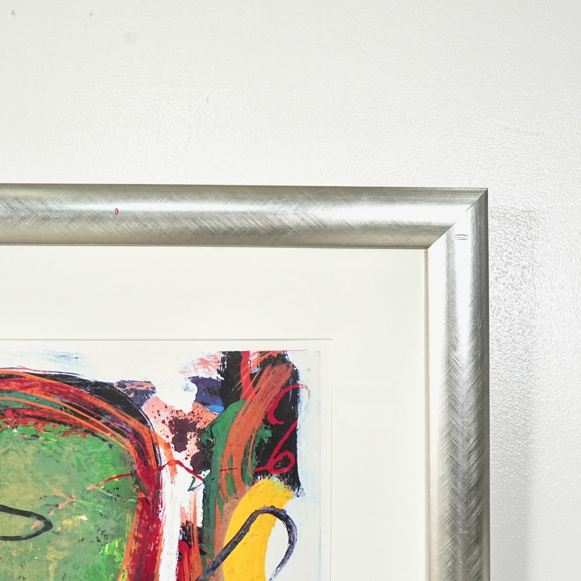 強烈な色彩と抽象化された人物モチーフが印象的な本作は、彼の表現スタイルを象徴するようなエネルギーに満ちた一枚。