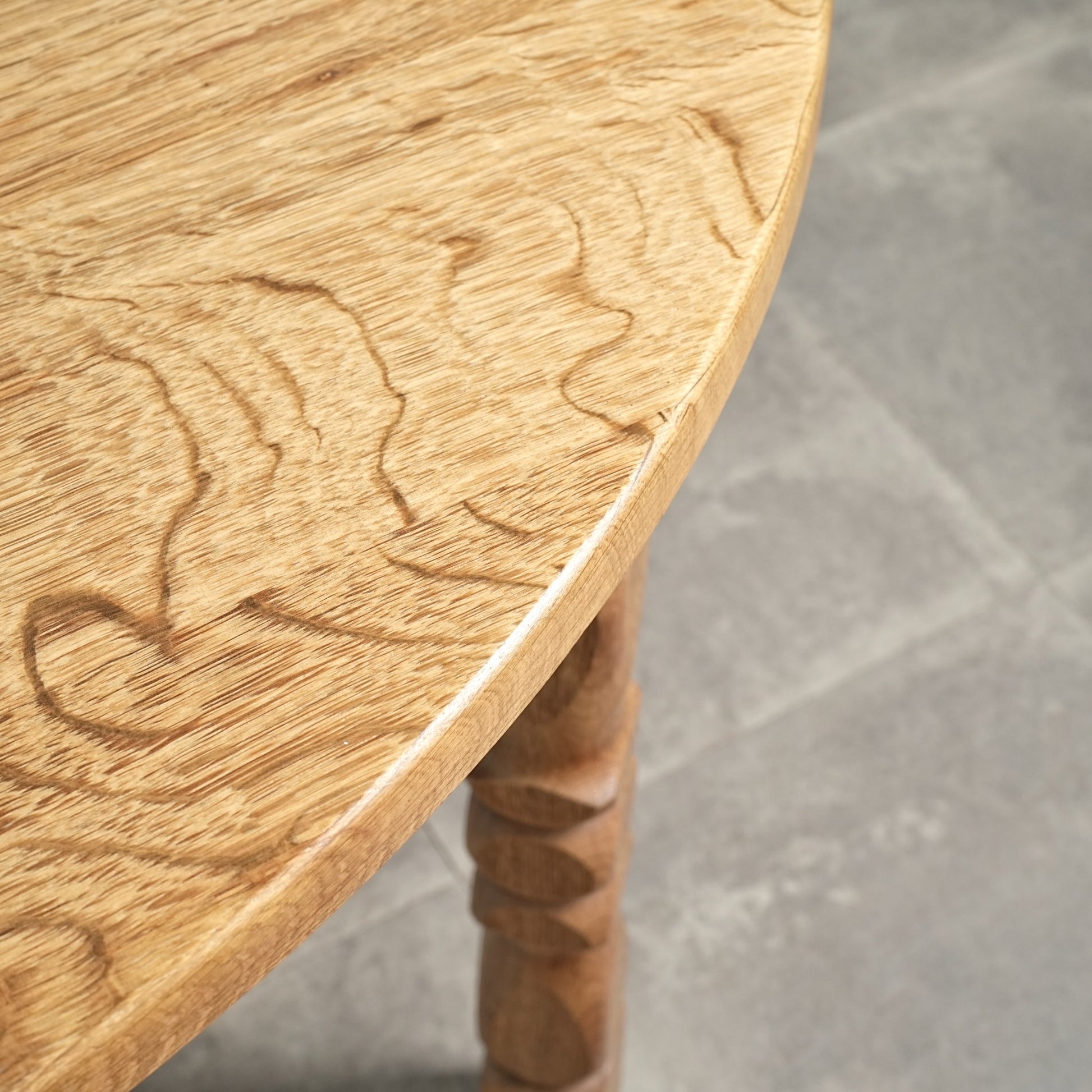 角のない天板の処理や挽物細工に更にひと手間加えた脚部の美しい意匠など、その品質の高さと美学が伝わってくる逸品です。