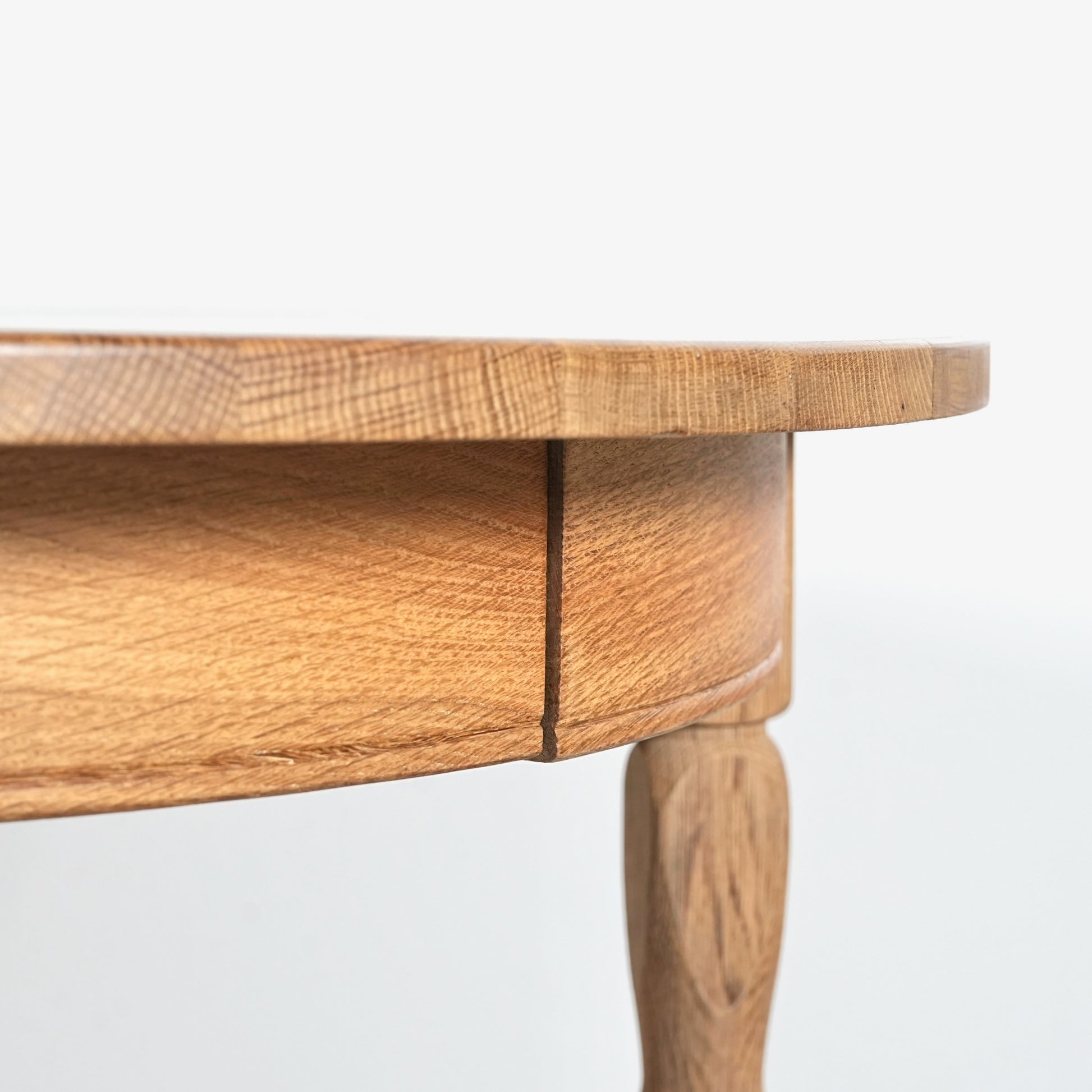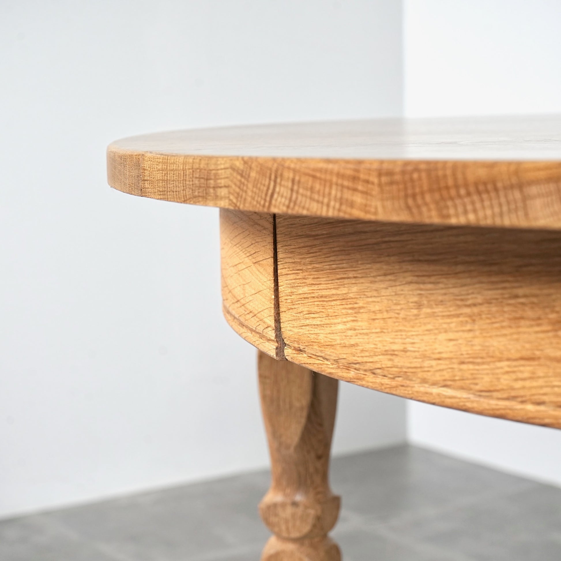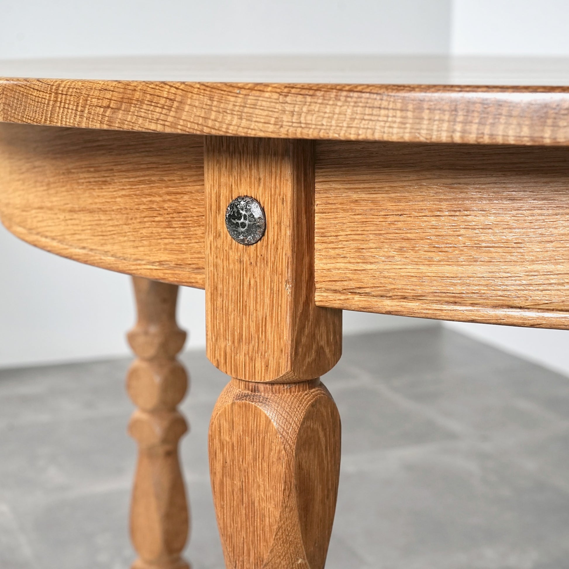角のない天板の処理や挽物細工に更にひと手間加えた脚部の美しい意匠など、その品質の高さと美学が伝わってくる逸品です。