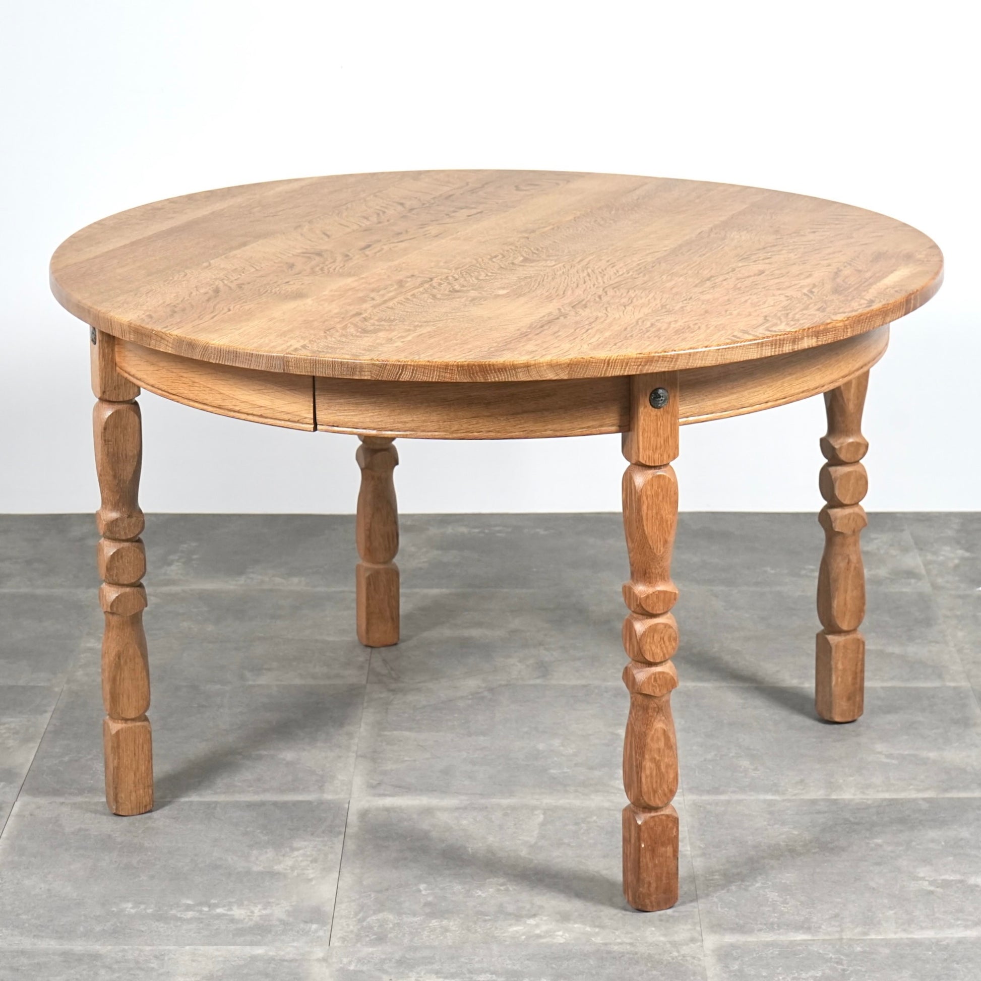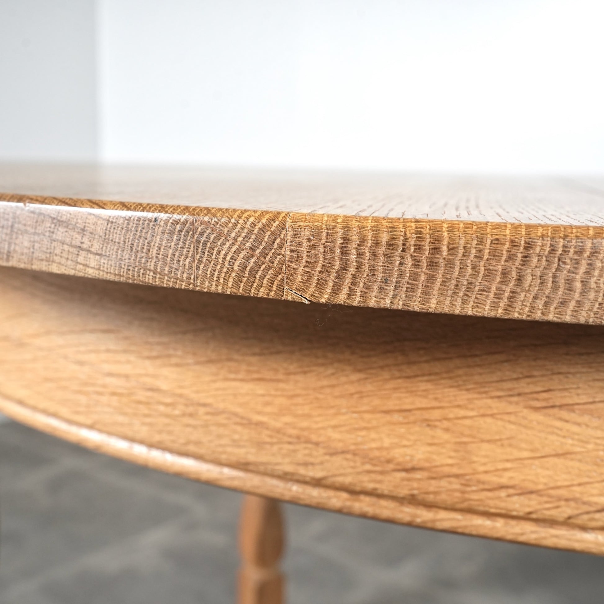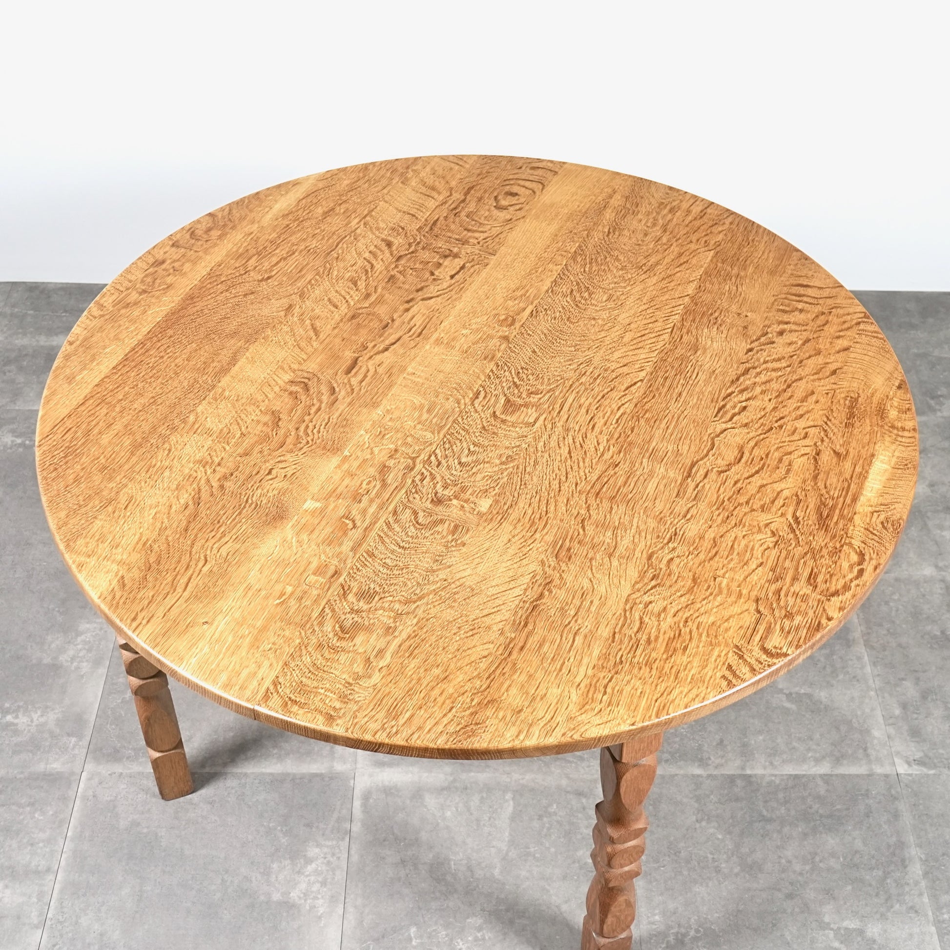 角のない天板の処理や挽物細工に更にひと手間加えた脚部の美しい意匠など、その品質の高さと美学が伝わってくる逸品です。