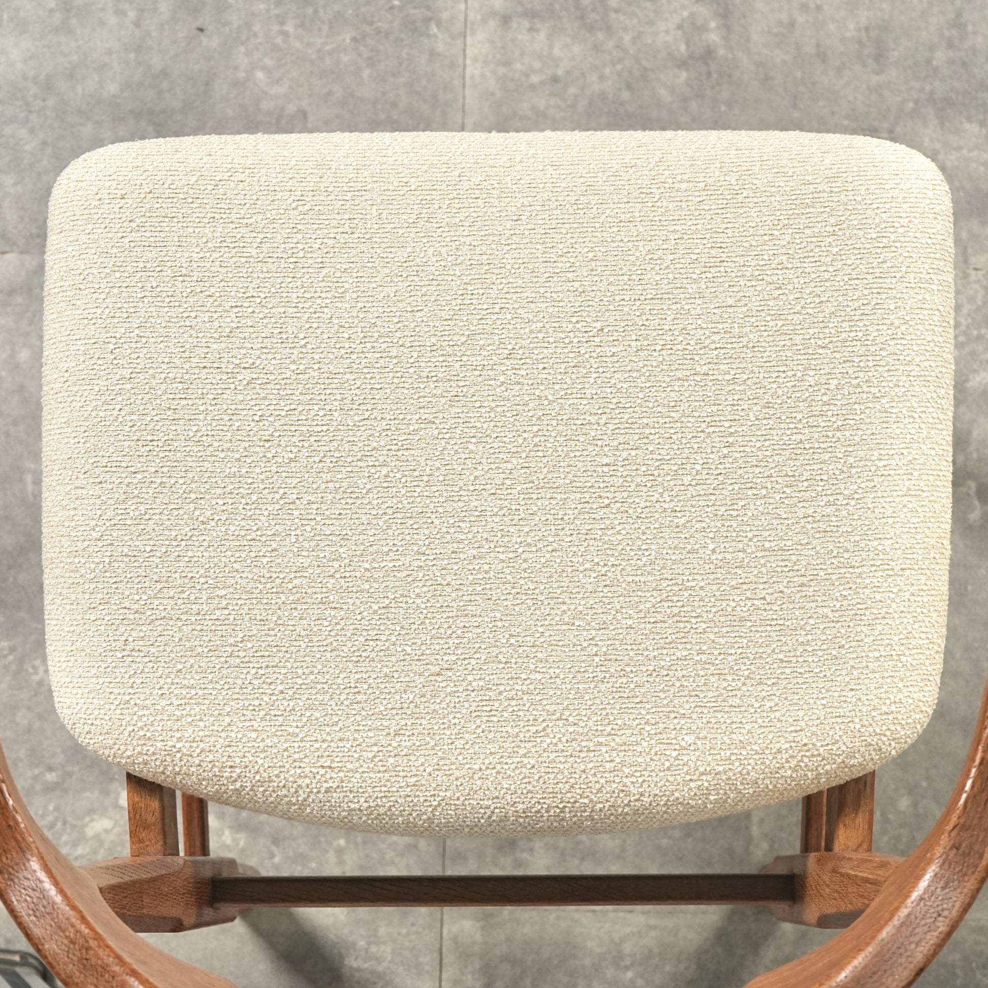 北欧らしい良質なオーク無垢材を贅沢に使用しており、デンマークの伝統的な家具デザインの影響を受けながらも挑戦的でモダンな独自のスタイルを展開したHenning Kjaernulfらしい作品と言えるでしょう。