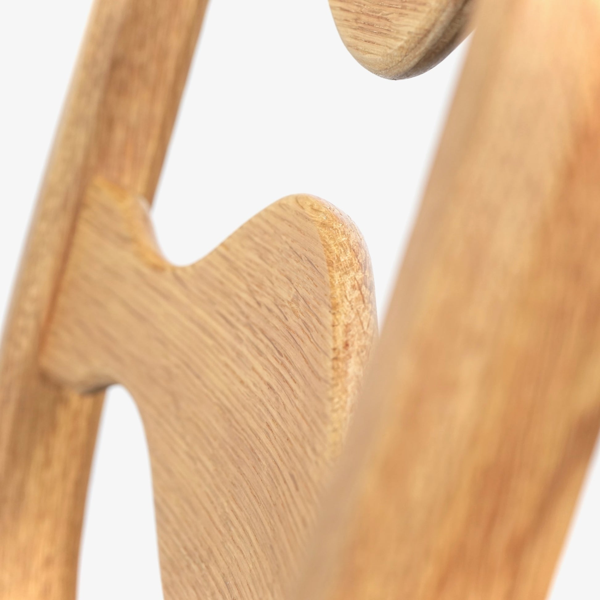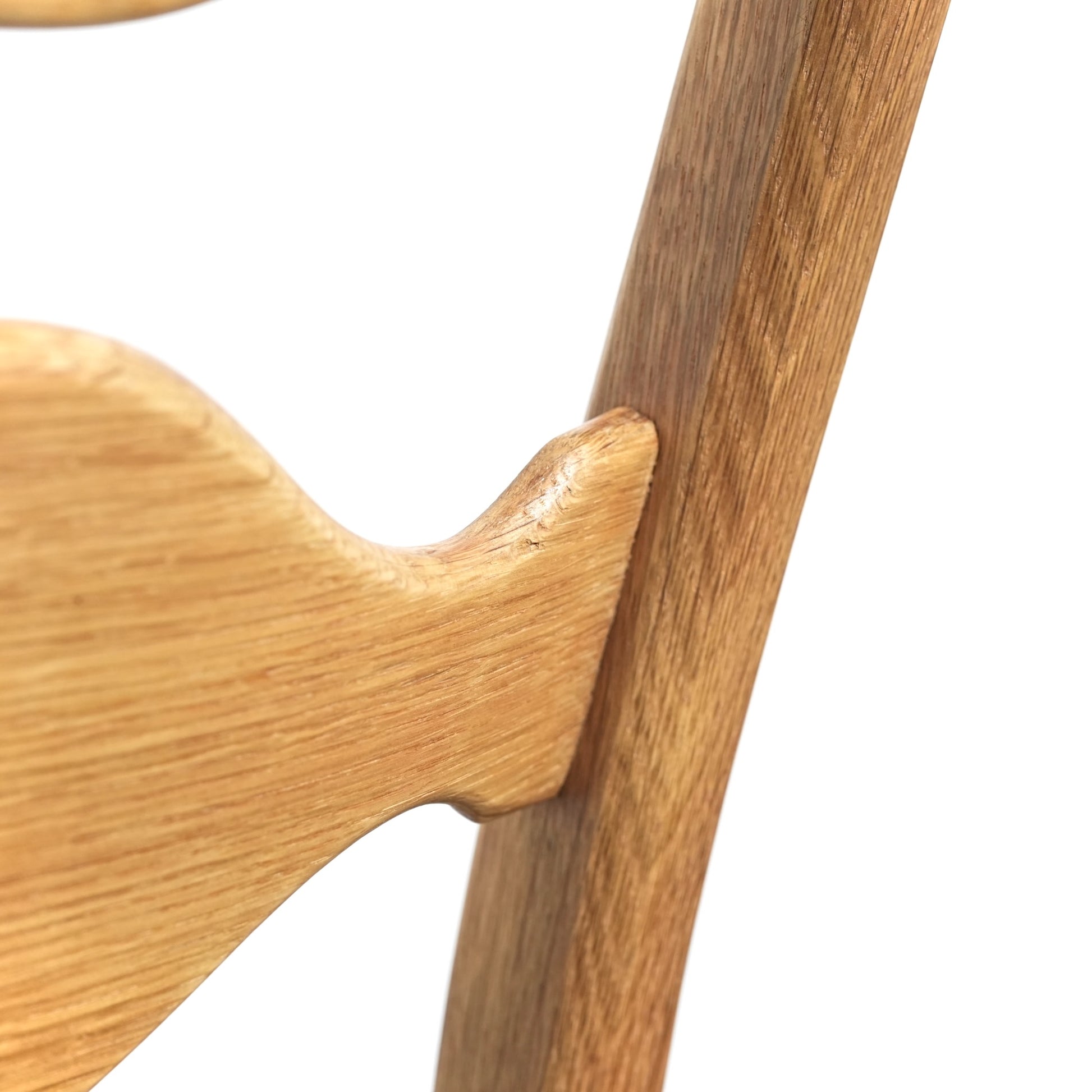 北欧らしく良質なオーク無垢材を贅沢に使用しており、デンマークの伝統的な家具デザインの影響を受けながらも挑戦的でモダンな独自のスタイルを展開したHenning Kjaernulfらしい作品と言えるでしょう。