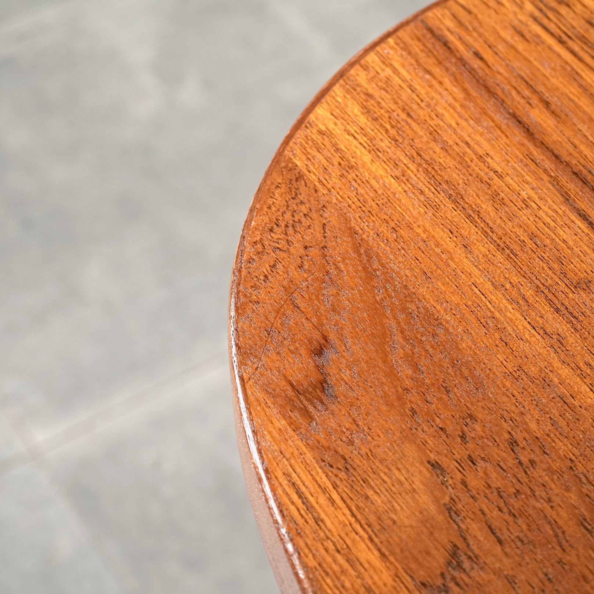 素材には温かみのある良質なチーク材を使用しており、丸みを帯びた天板のフォルムは柔らかな印象で、脚部はスリムでスマートなライン。