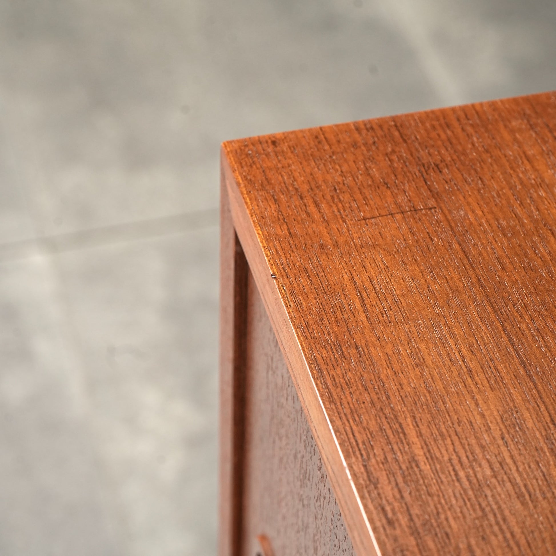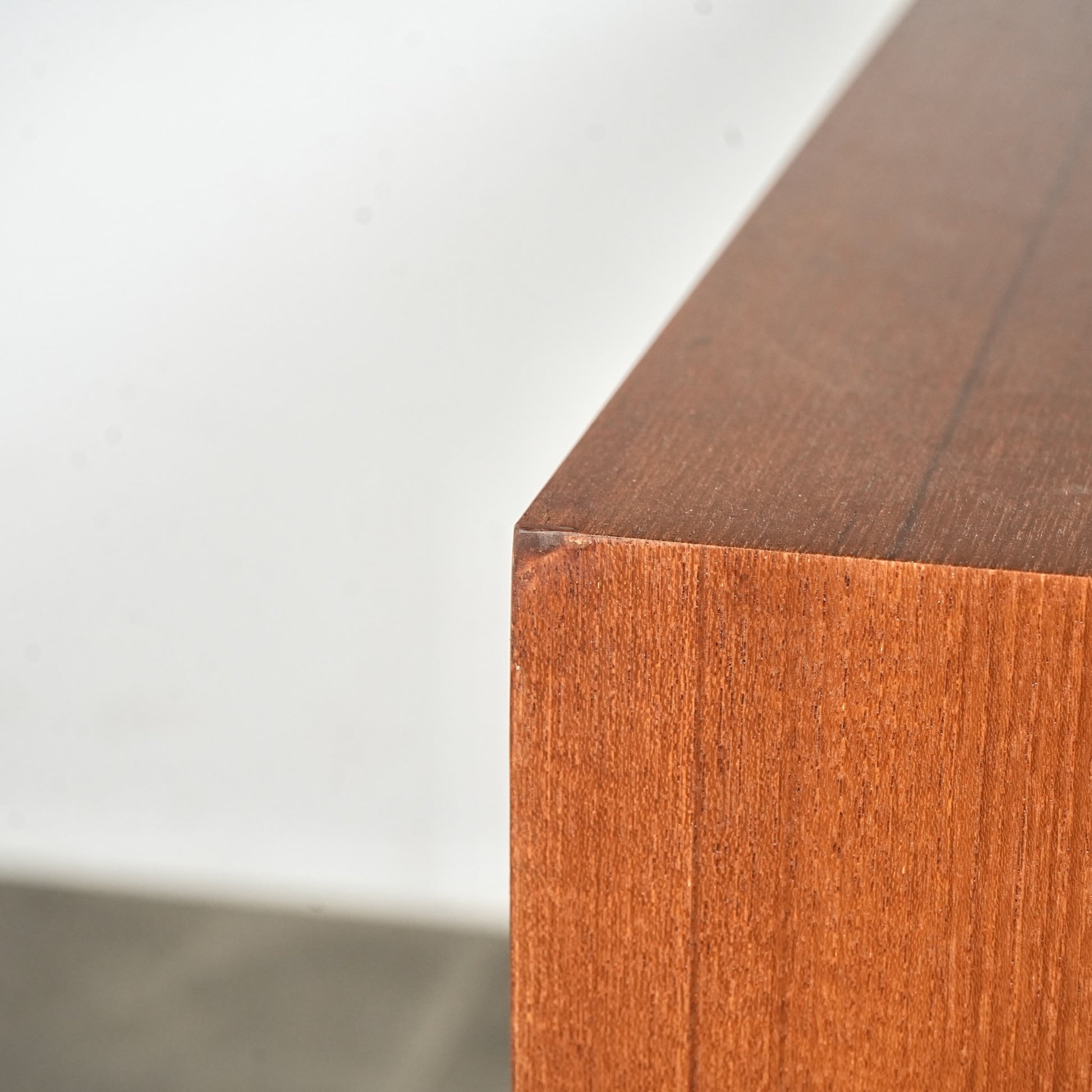 ひと目でその品質が伝わってくる良質なチーク材を使用しており、無駄を削ぎ落とした美しいミニマルデザインの中に可愛らしい取手やシャープな脚部がアクセントとなっています。
