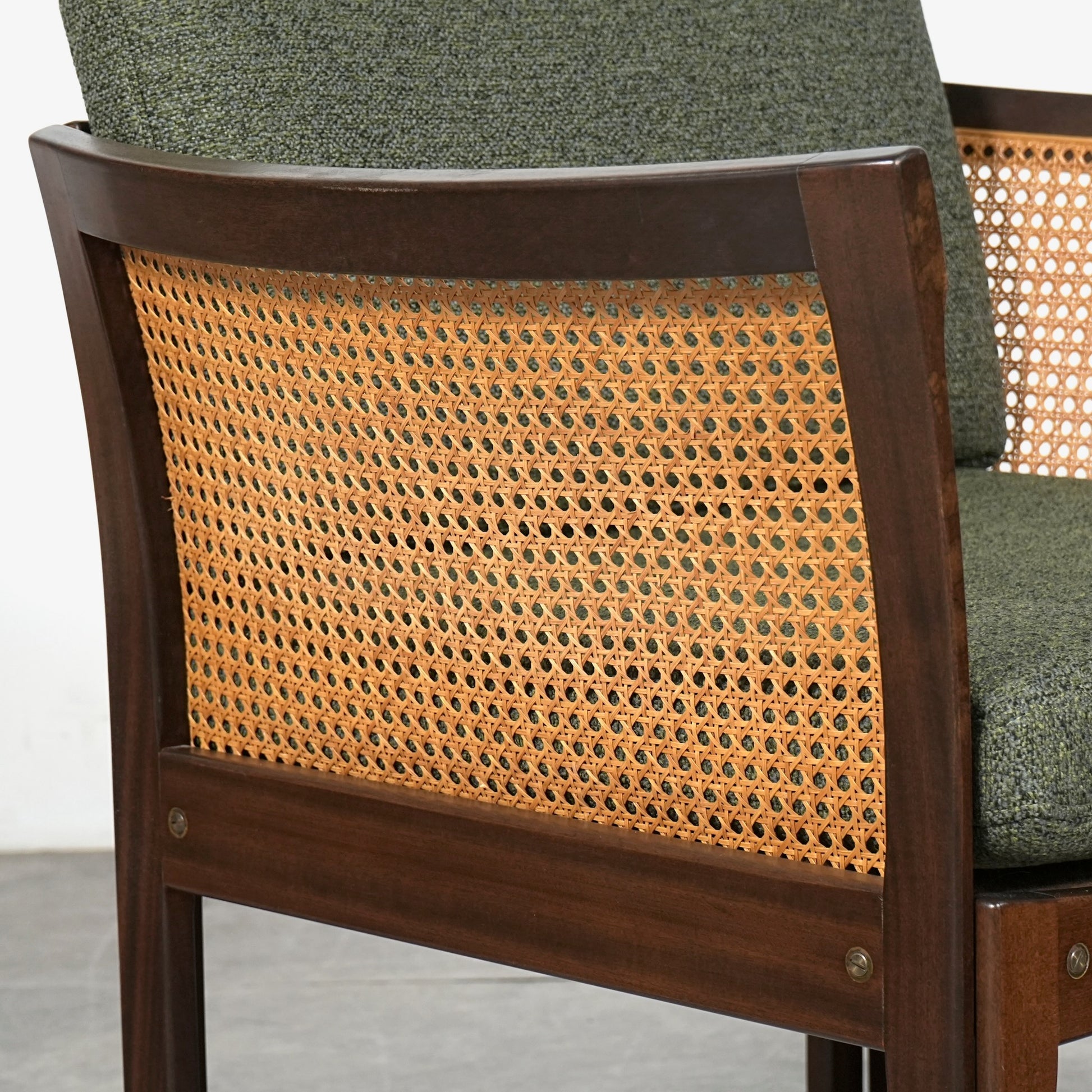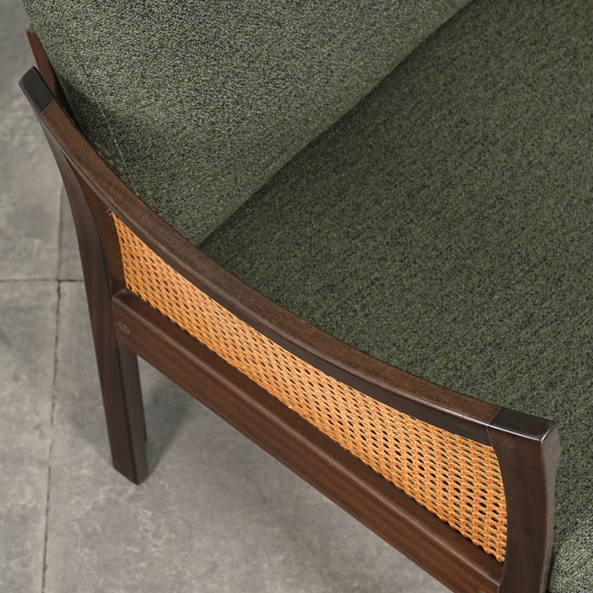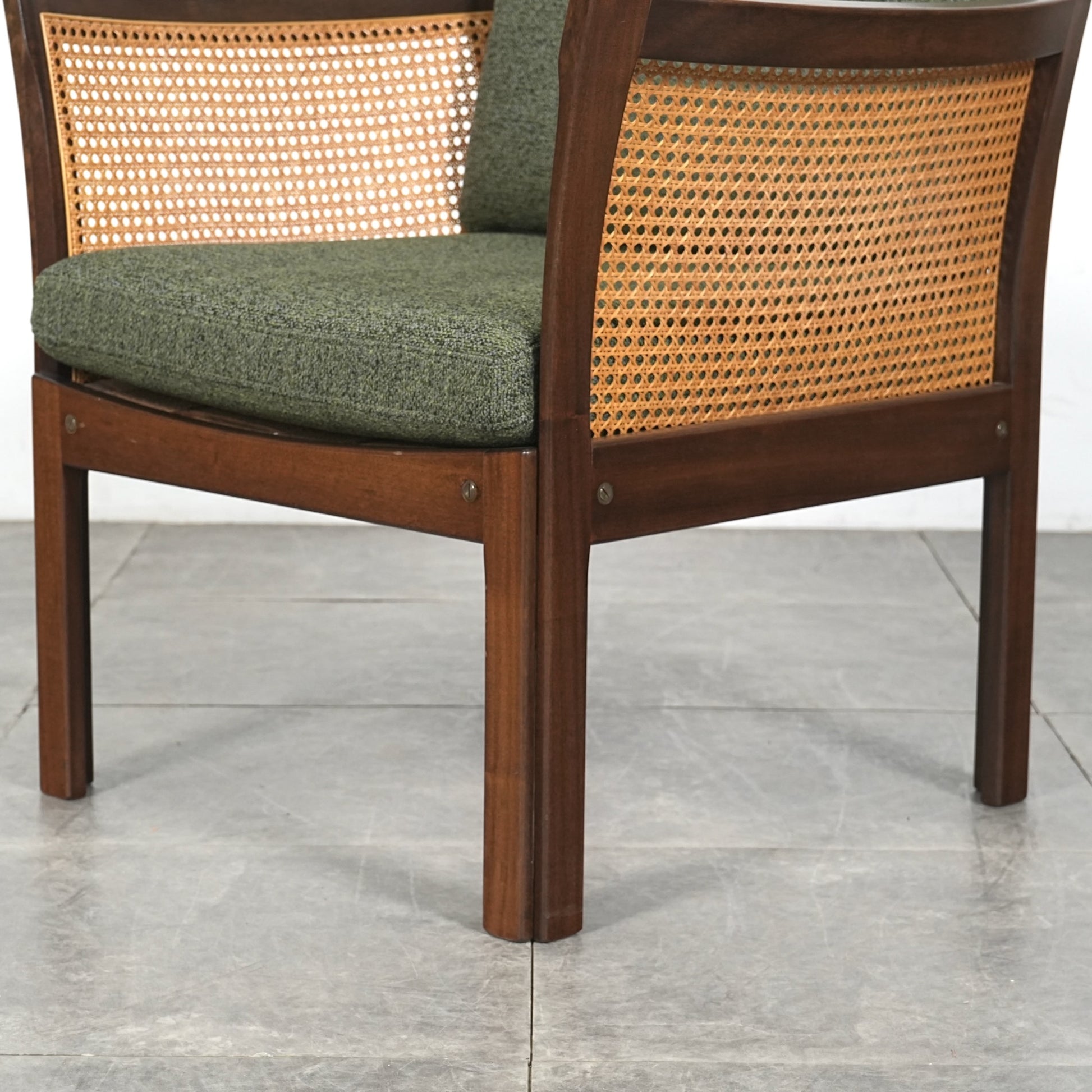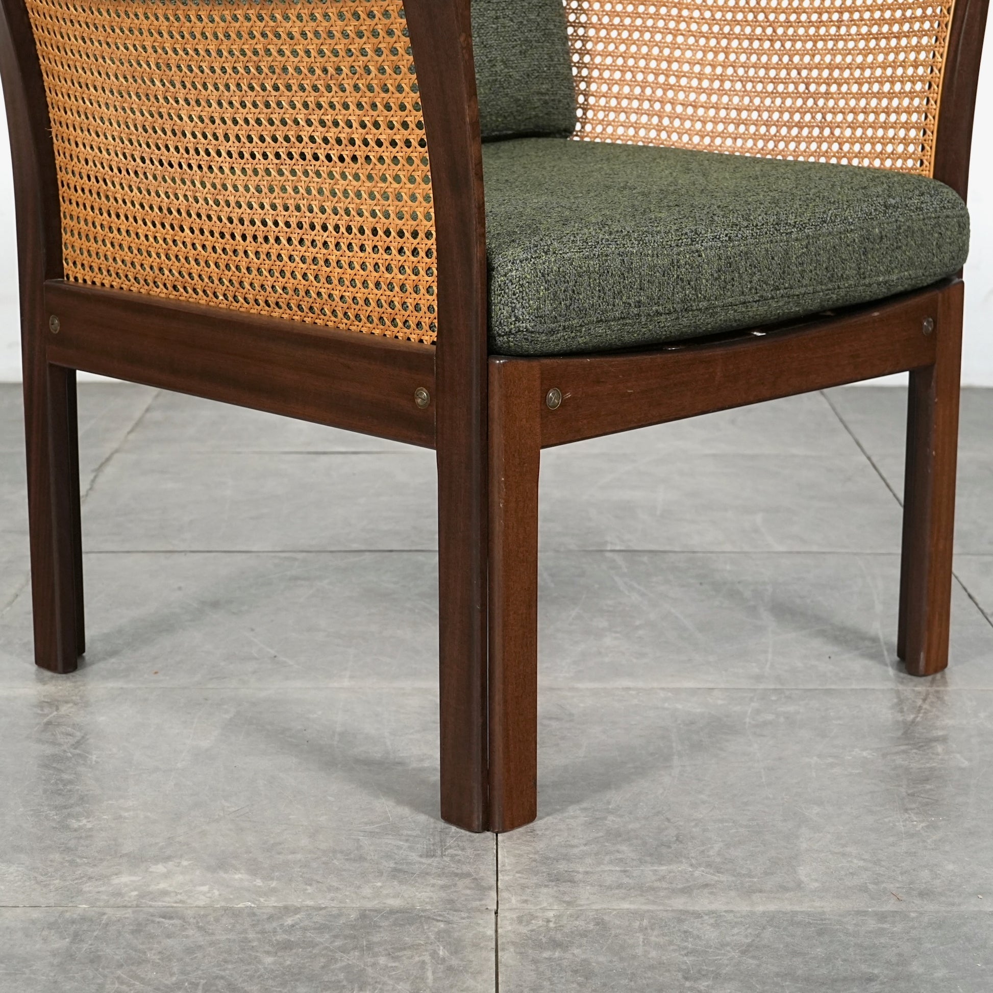 良質なマホガニー無垢材のフレームとラタンという見事な組み合わせで、Wikkelsoらしい合理的かつミニマルなフォルム。