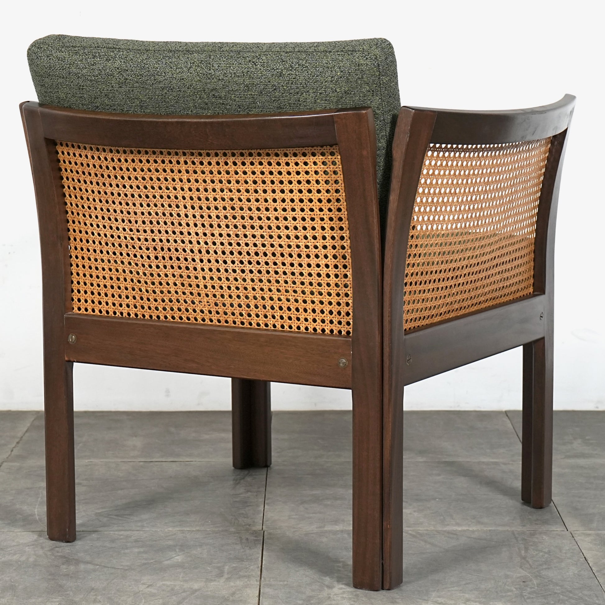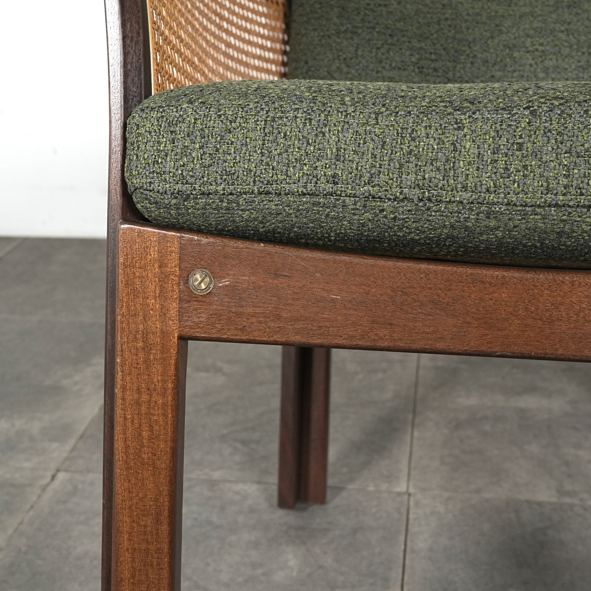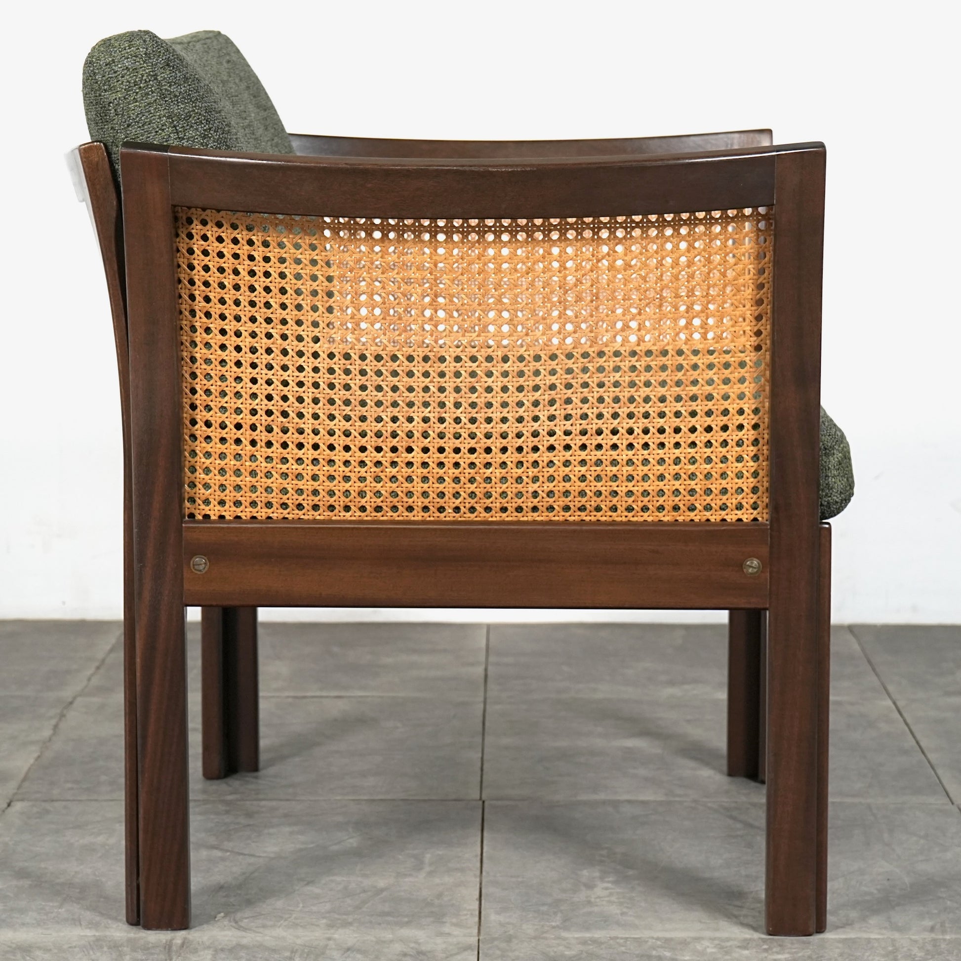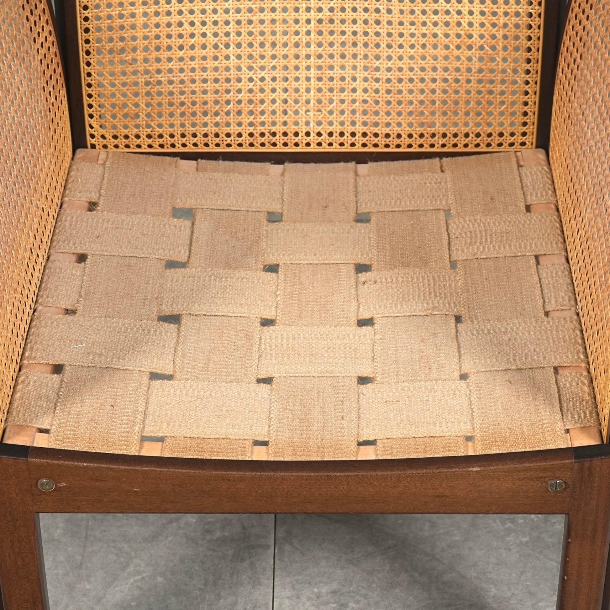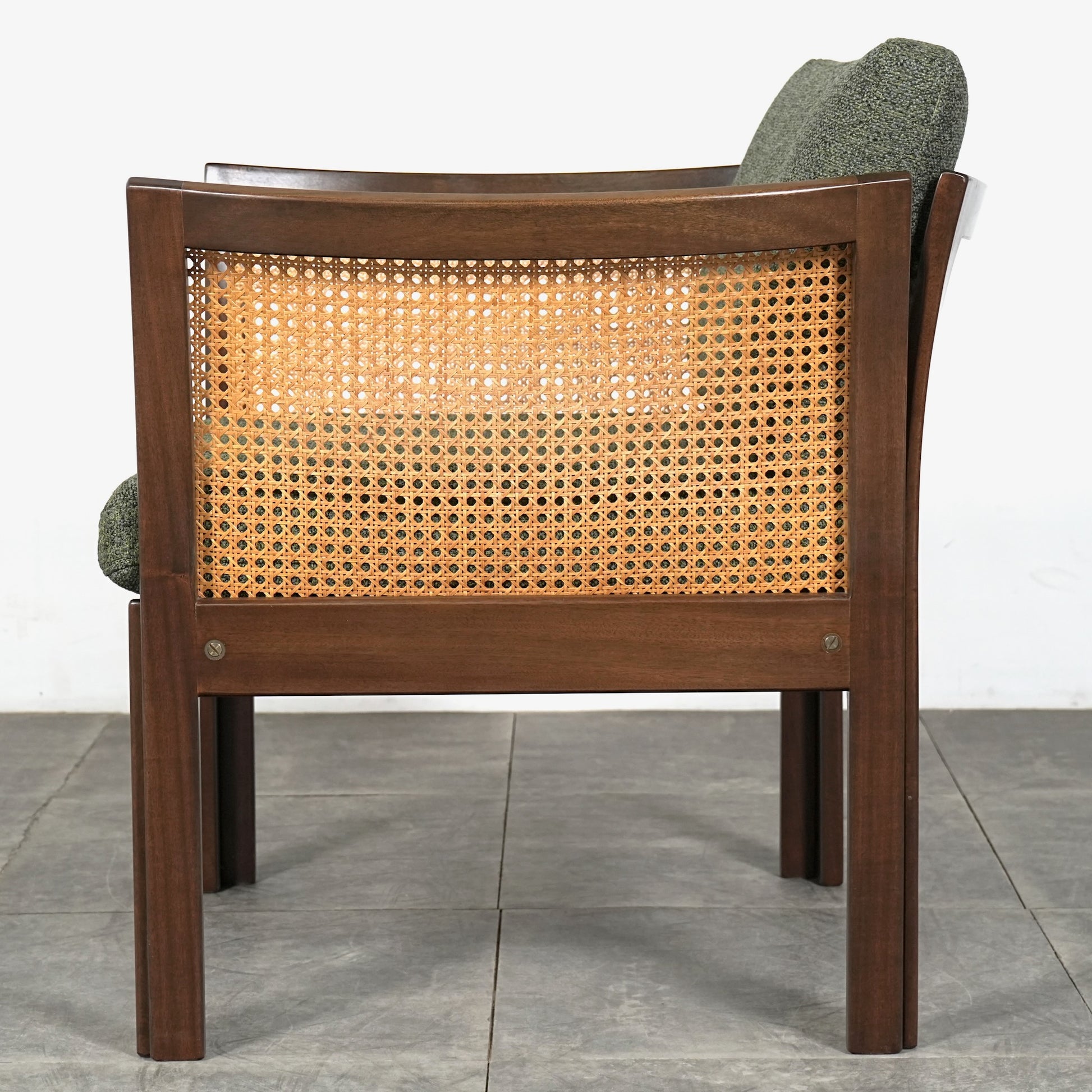 良質なマホガニー無垢材のフレームとラタンという見事な組み合わせで、Wikkelsoらしい合理的かつミニマルなフォルム。