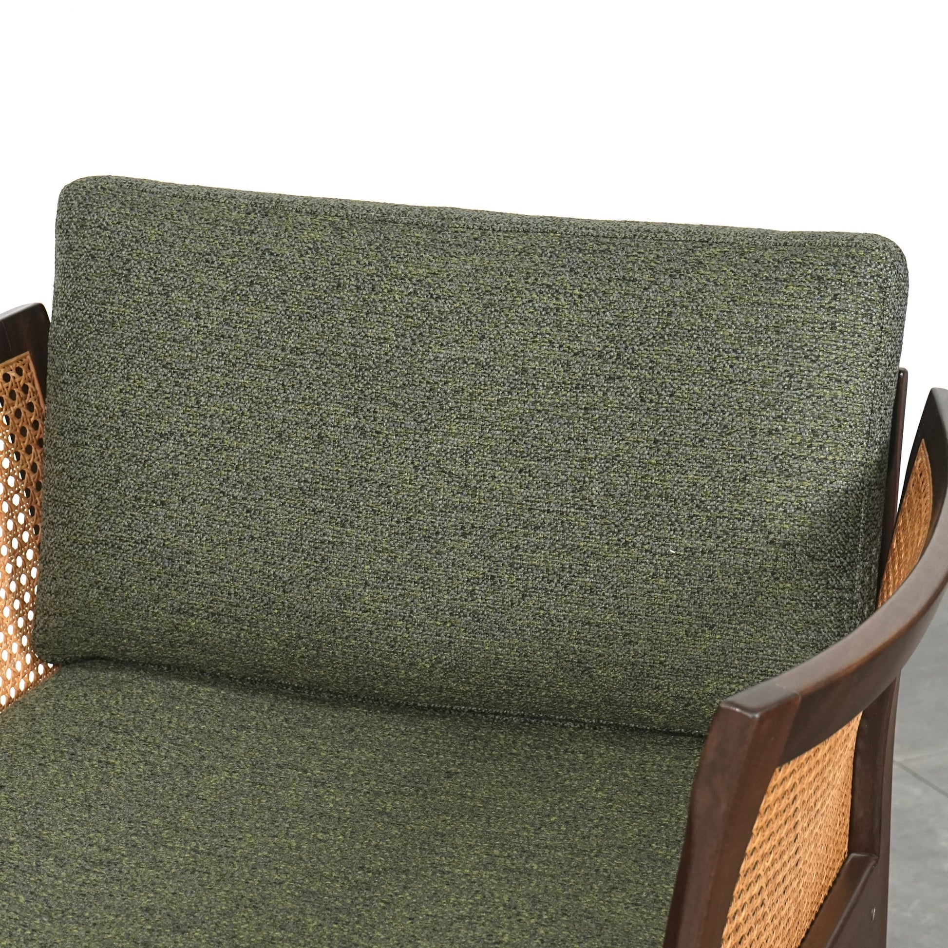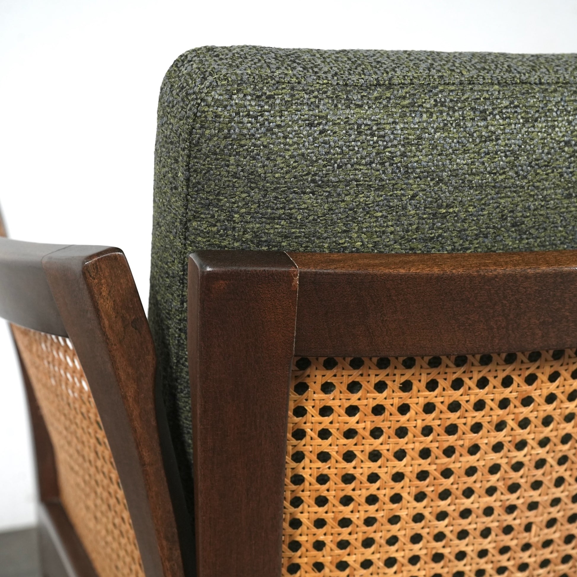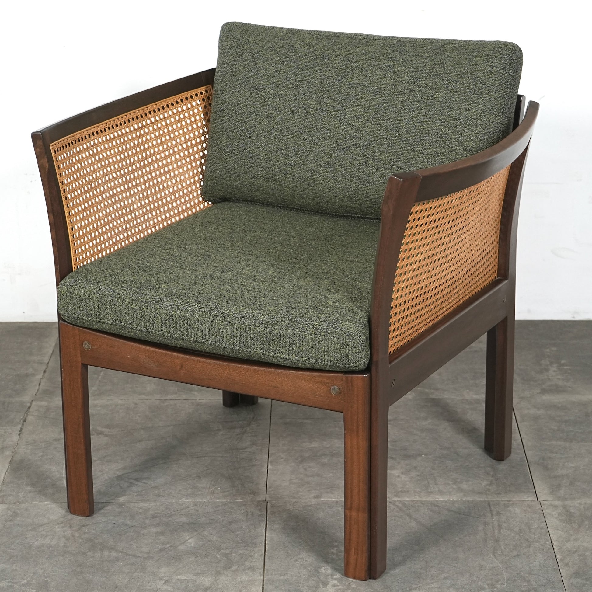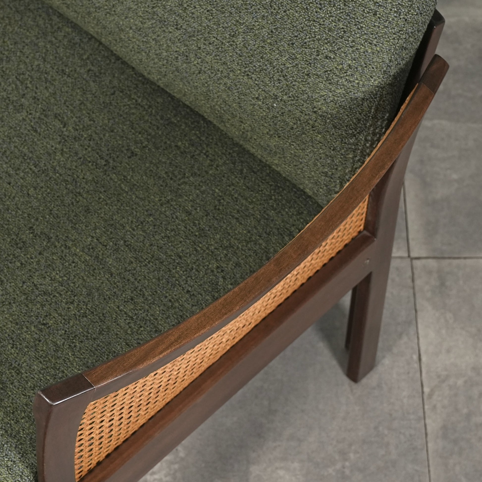 良質なマホガニー無垢材のフレームとラタンという見事な組み合わせで、Wikkelsoらしい合理的かつミニマルなフォルム。