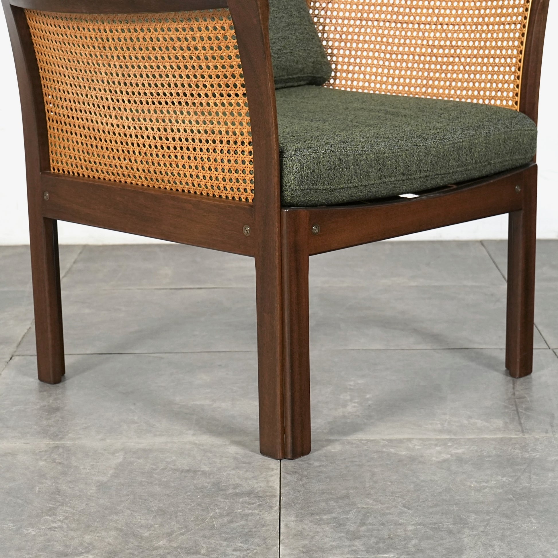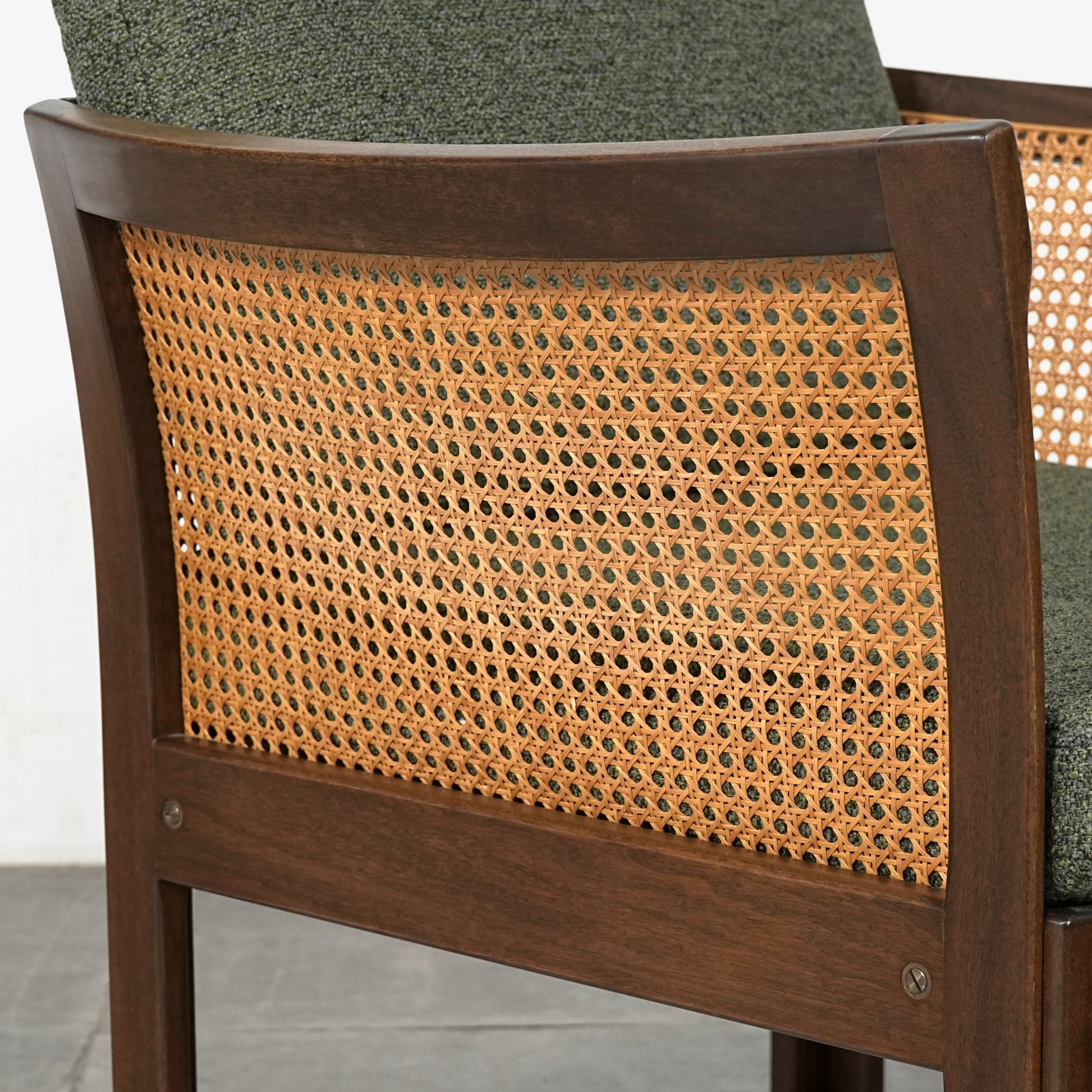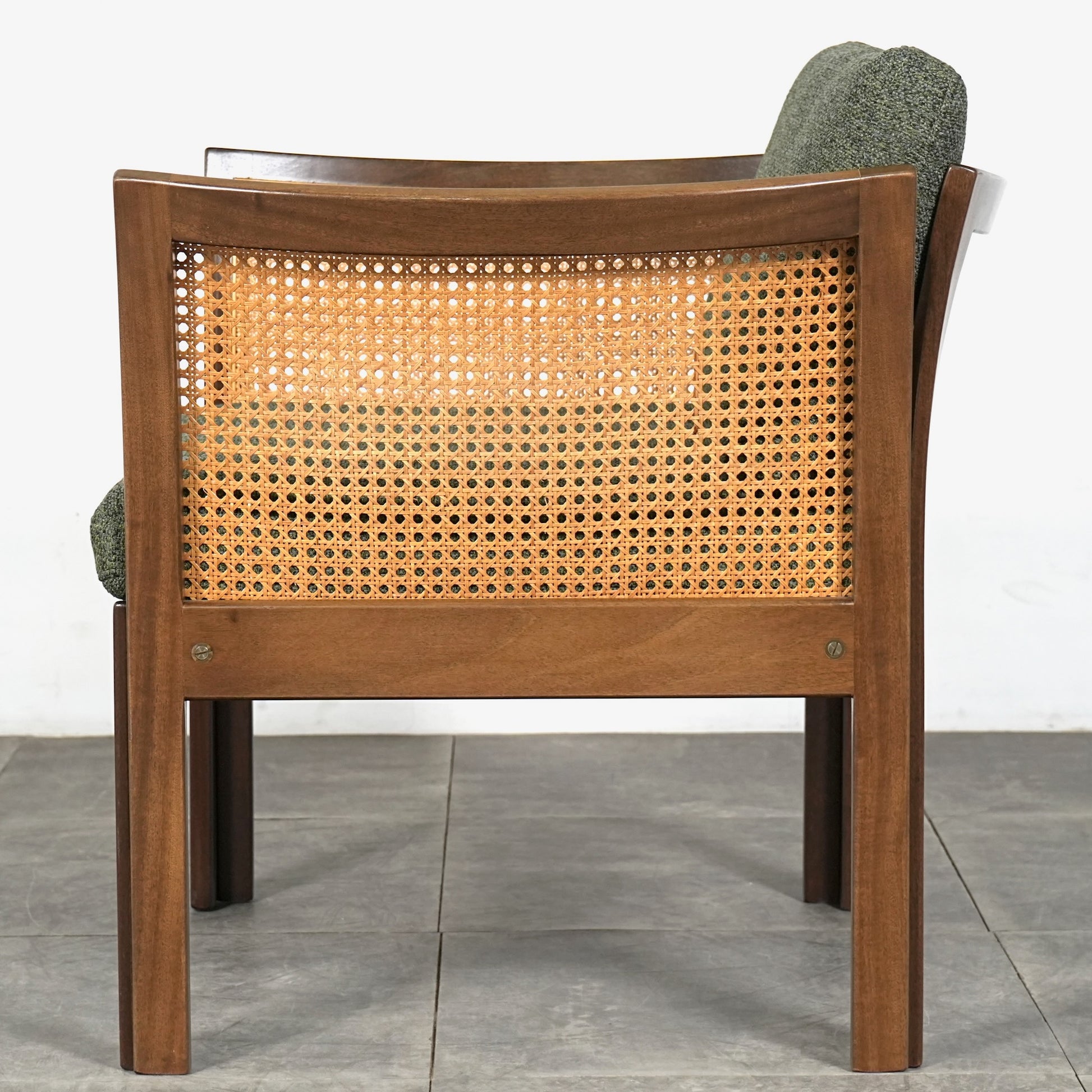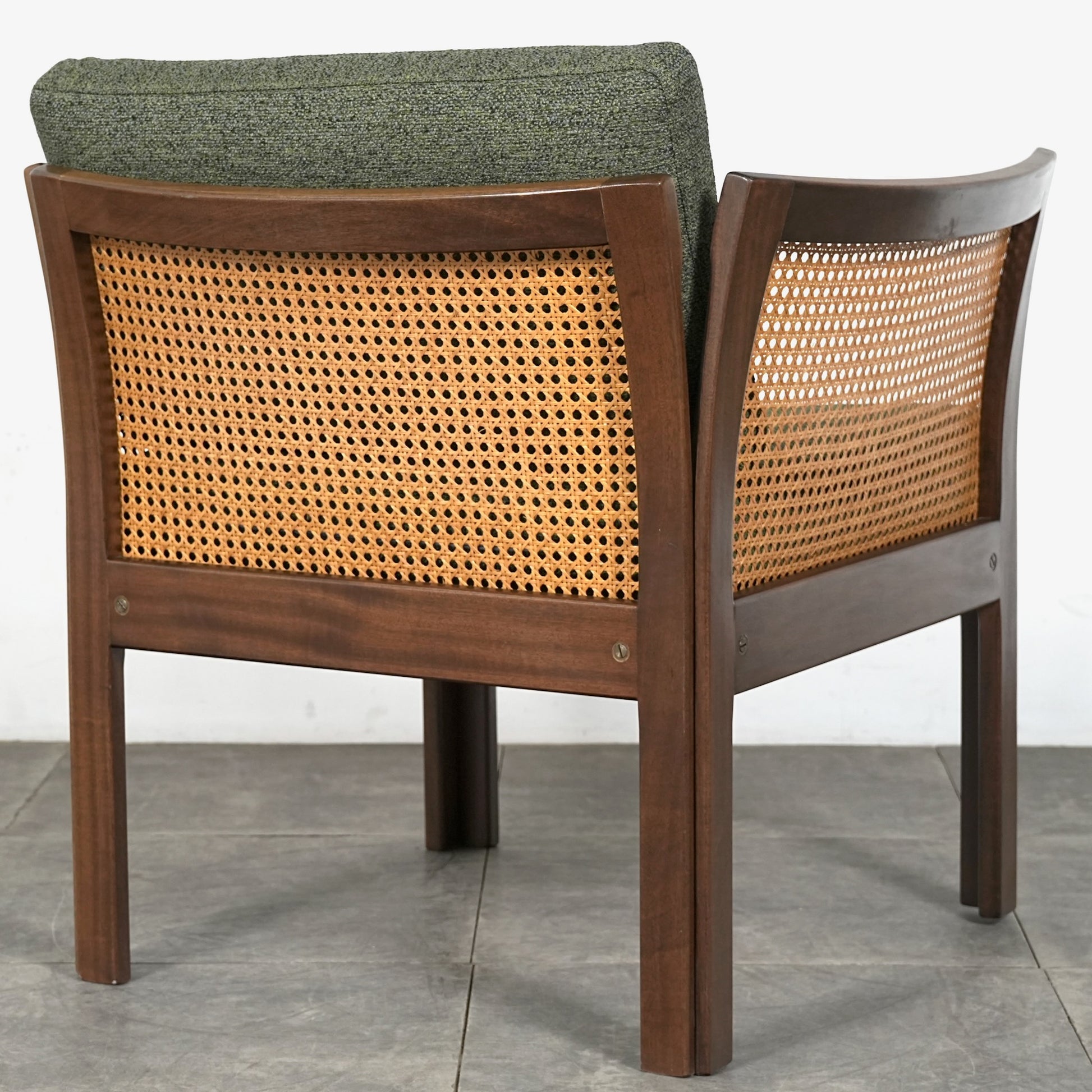 良質なマホガニー無垢材のフレームとラタンという見事な組み合わせで、Wikkelsoらしい合理的かつミニマルなフォルム。