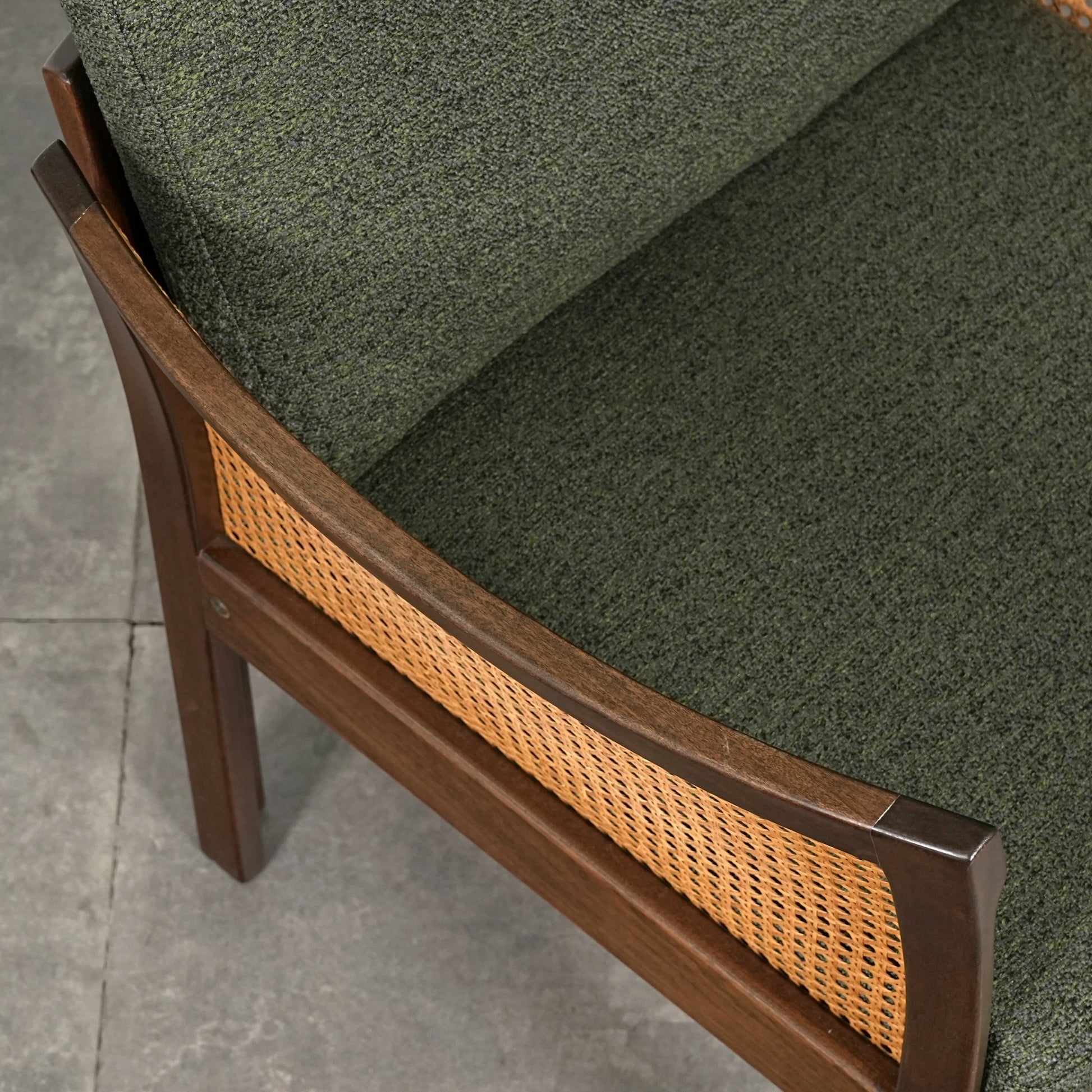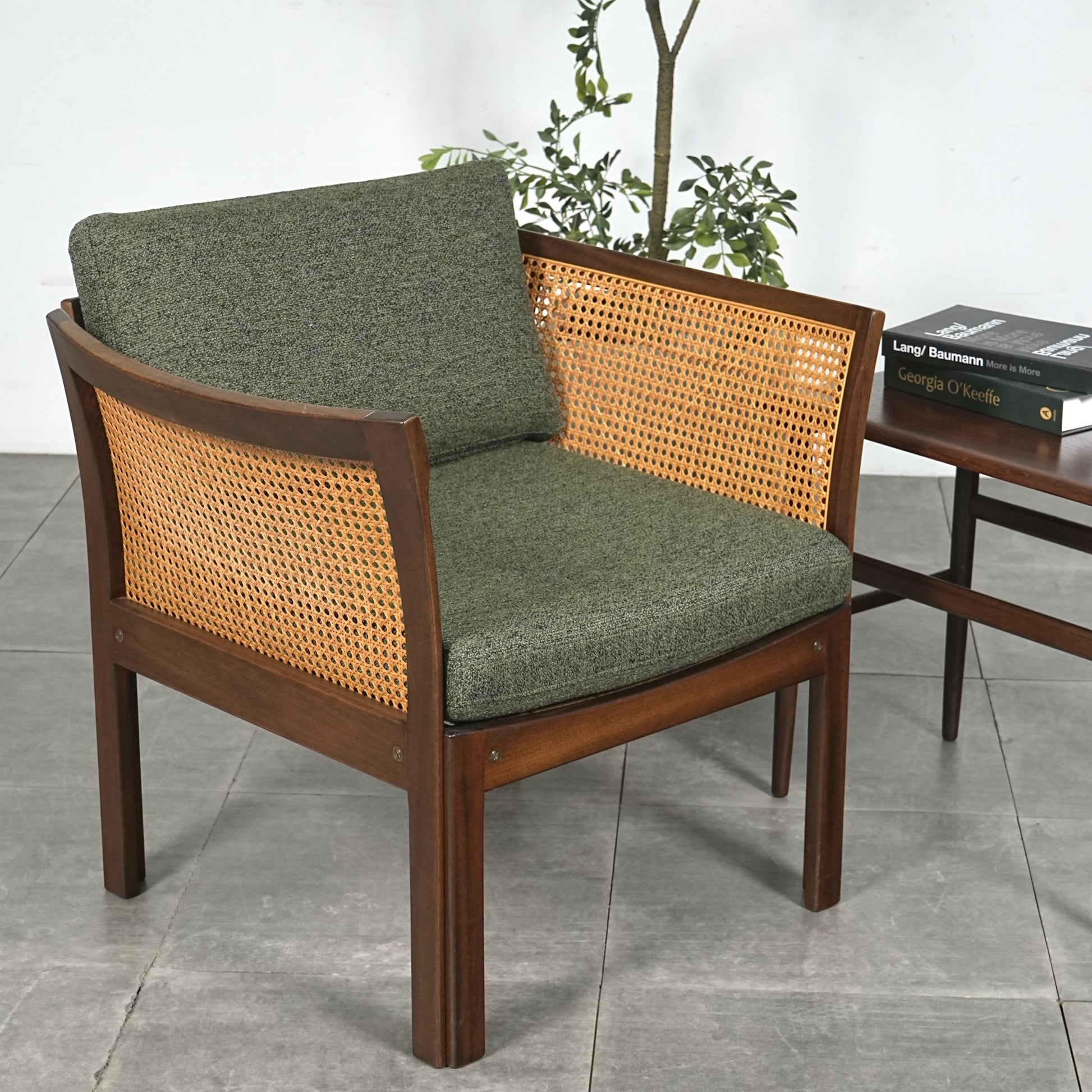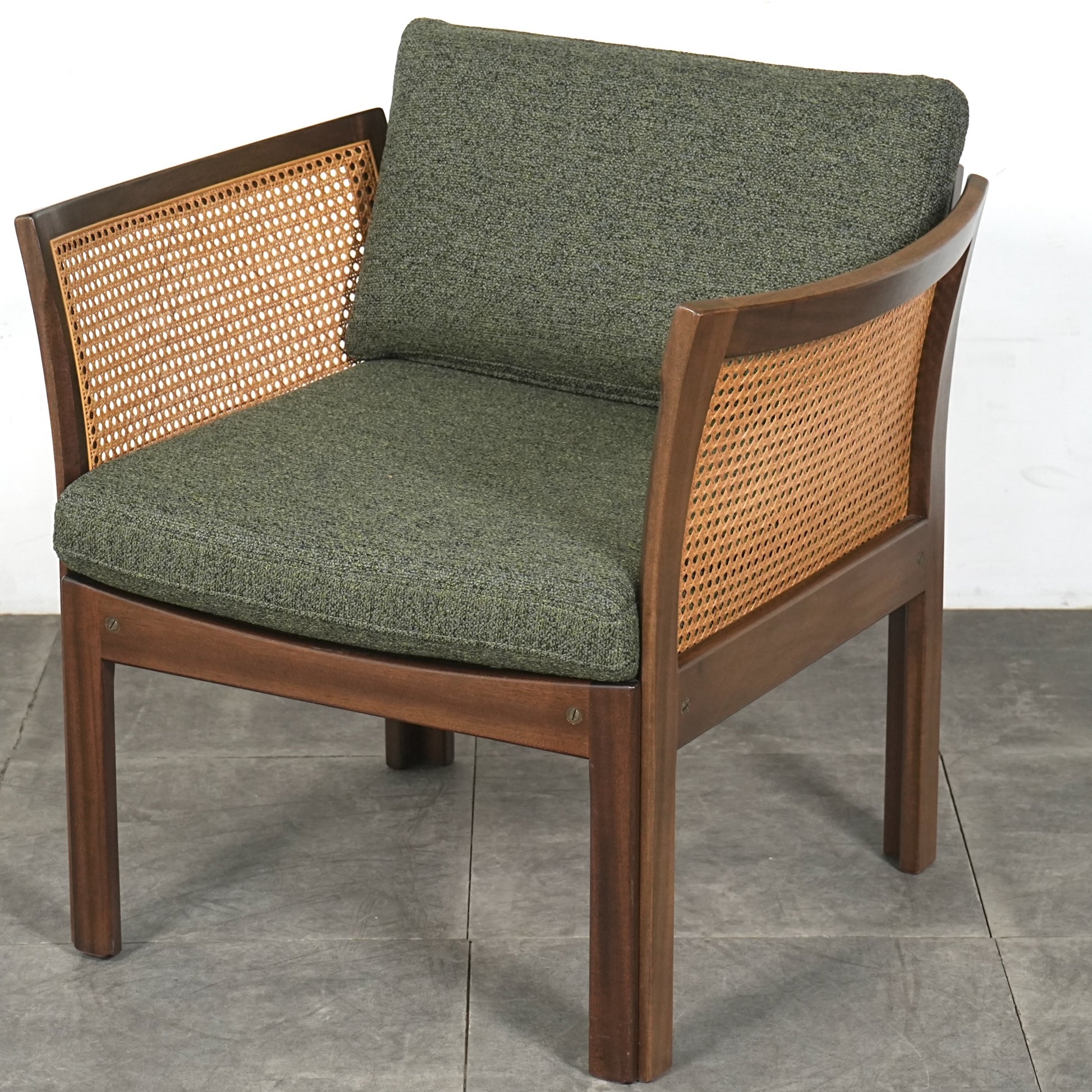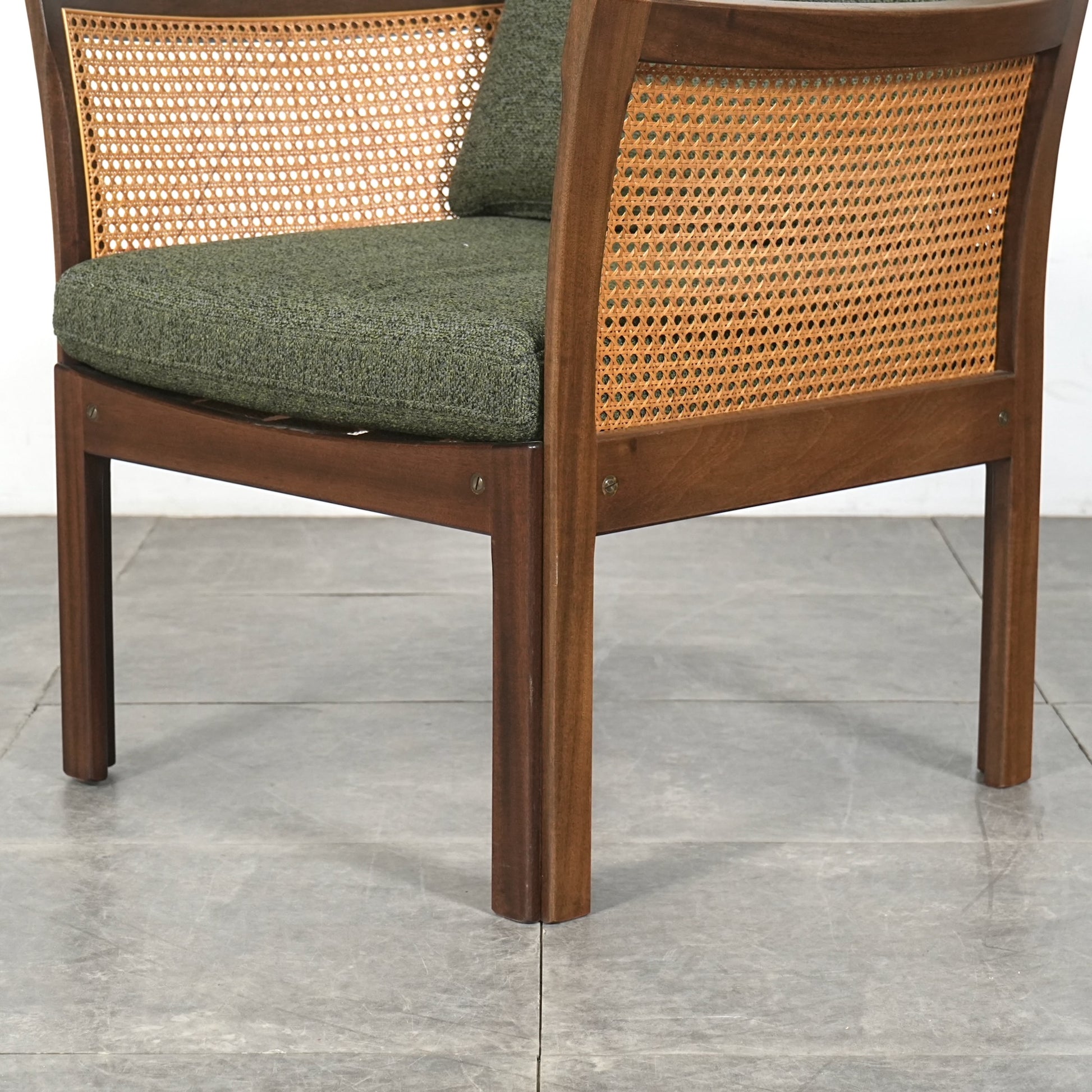 良質なマホガニー無垢材のフレームとラタンという見事な組み合わせで、Wikkelsoらしい合理的かつミニマルなフォルム。