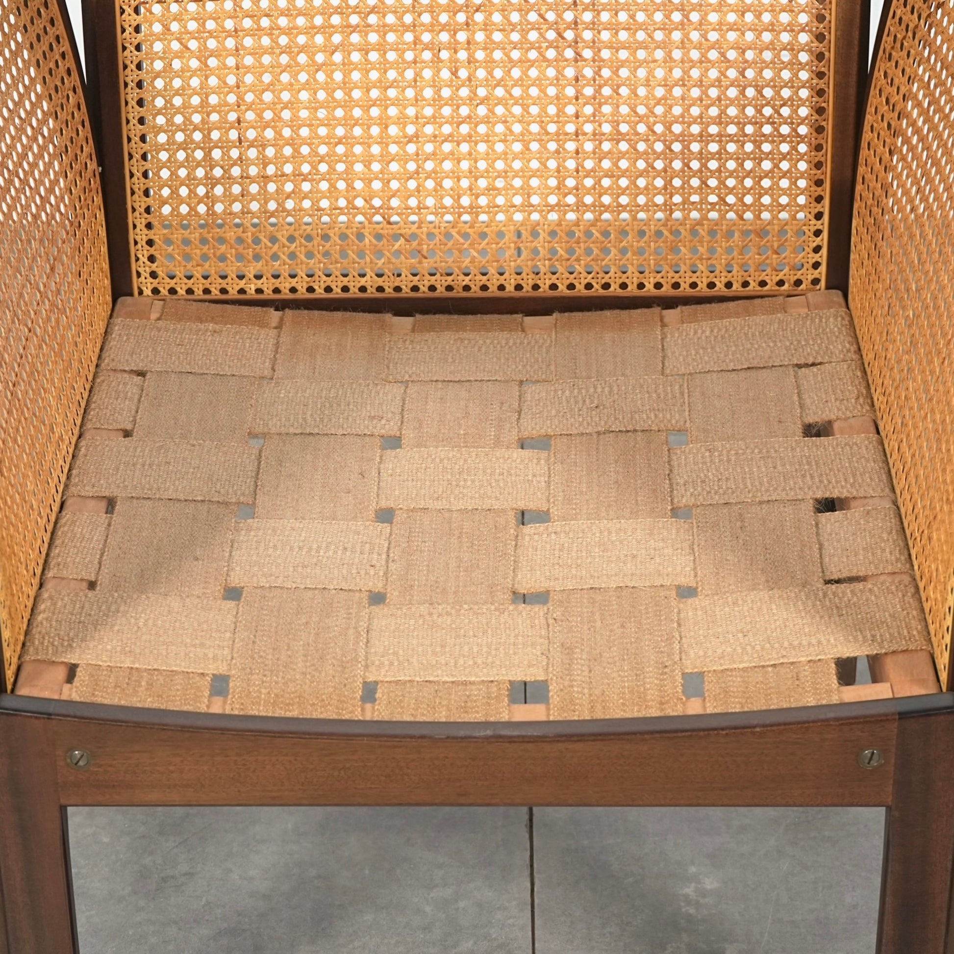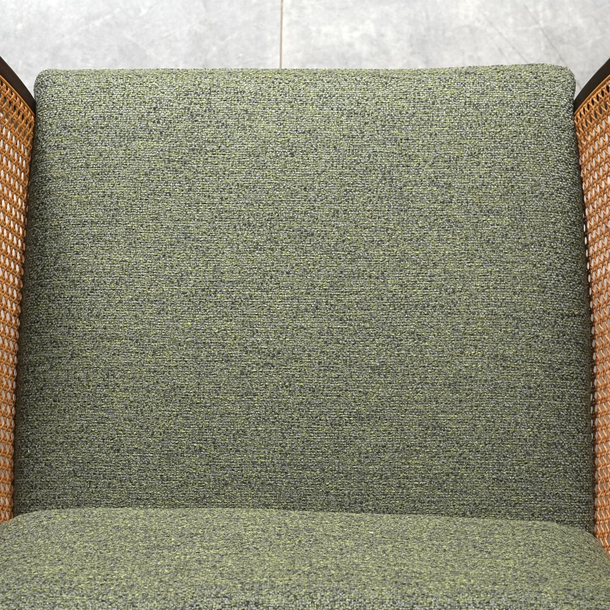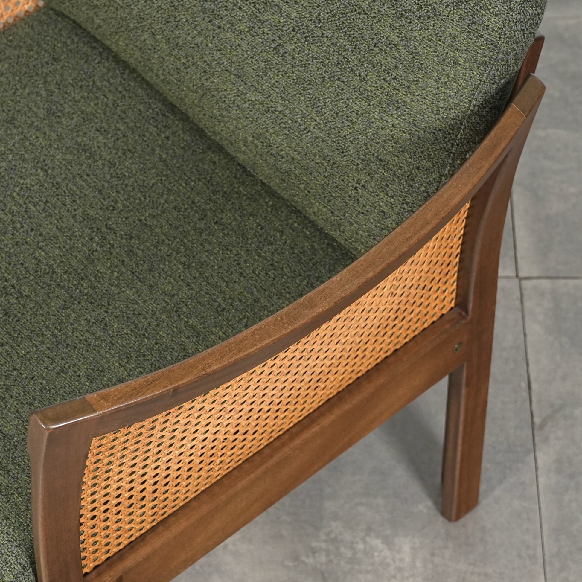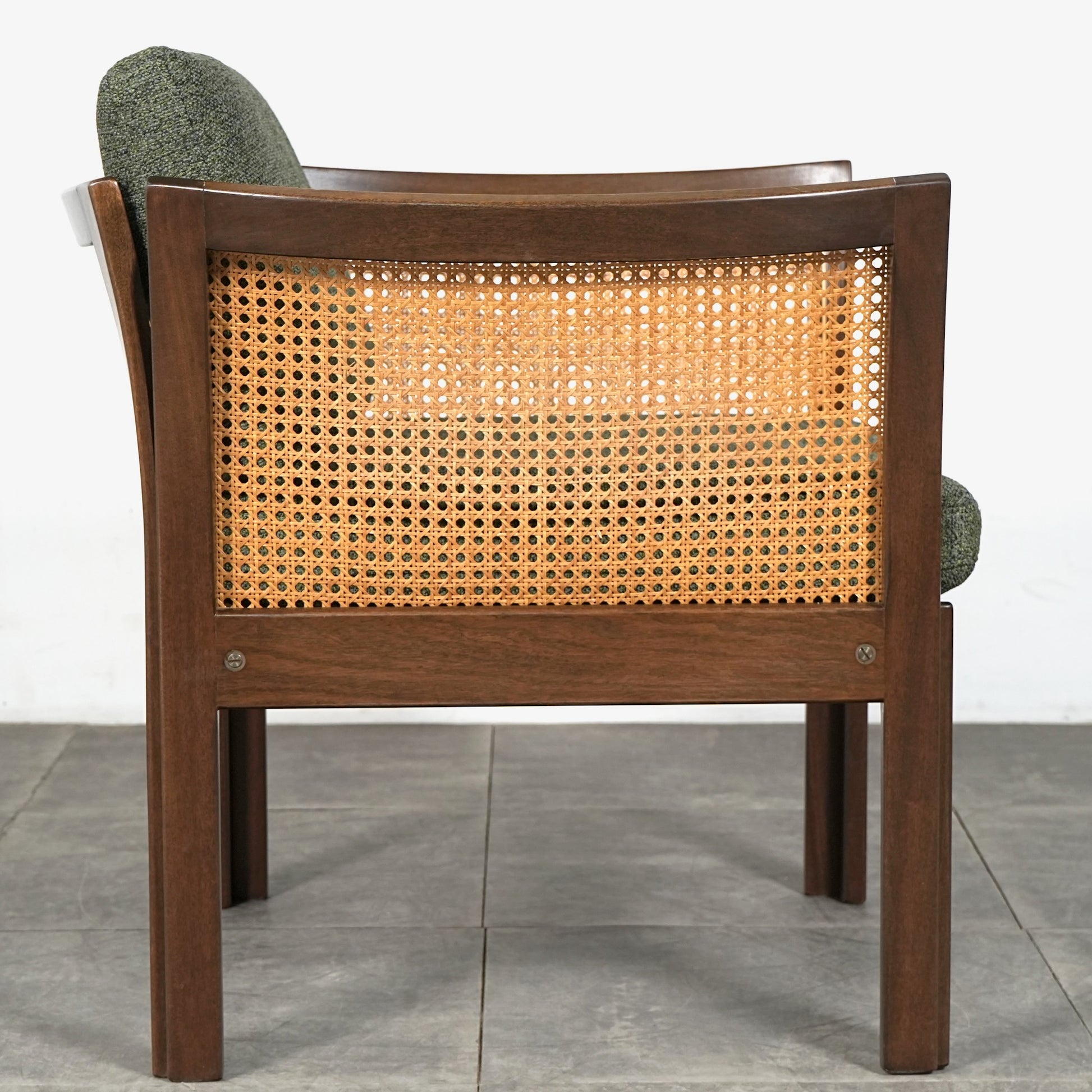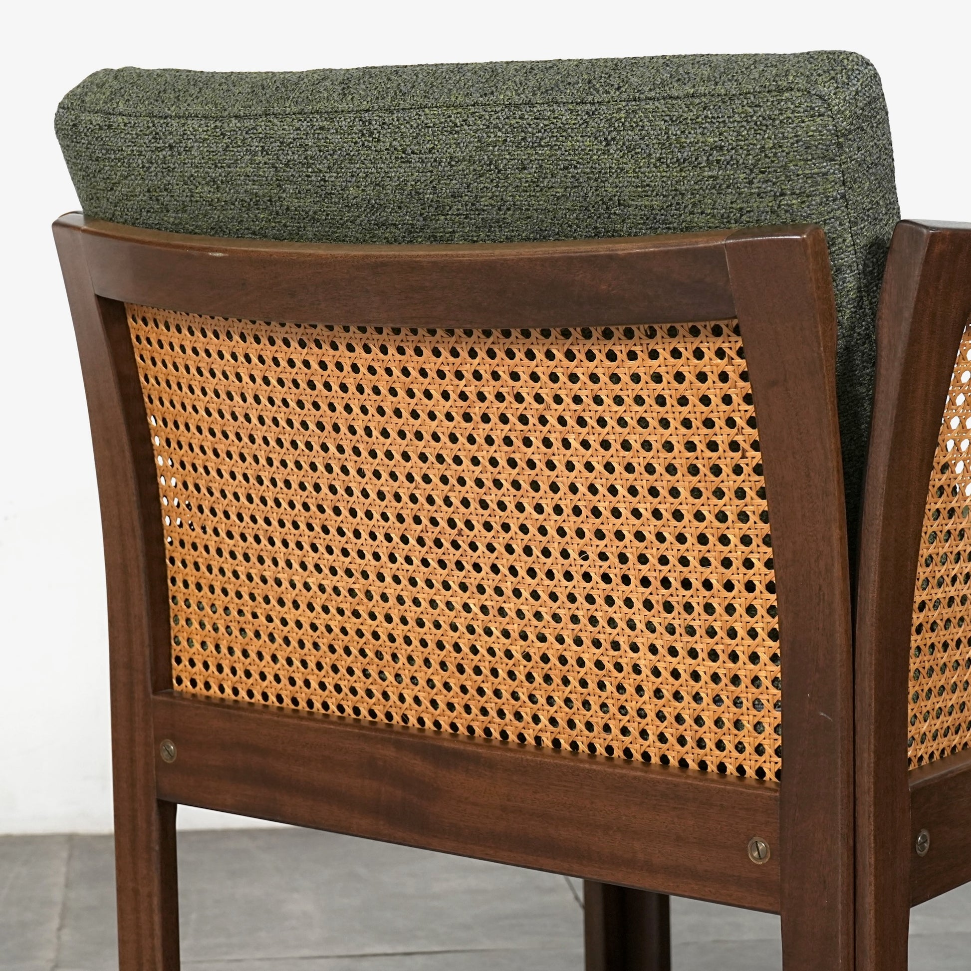 良質なマホガニー無垢材のフレームとラタンという見事な組み合わせで、Wikkelsoらしい合理的かつミニマルなフォルム。