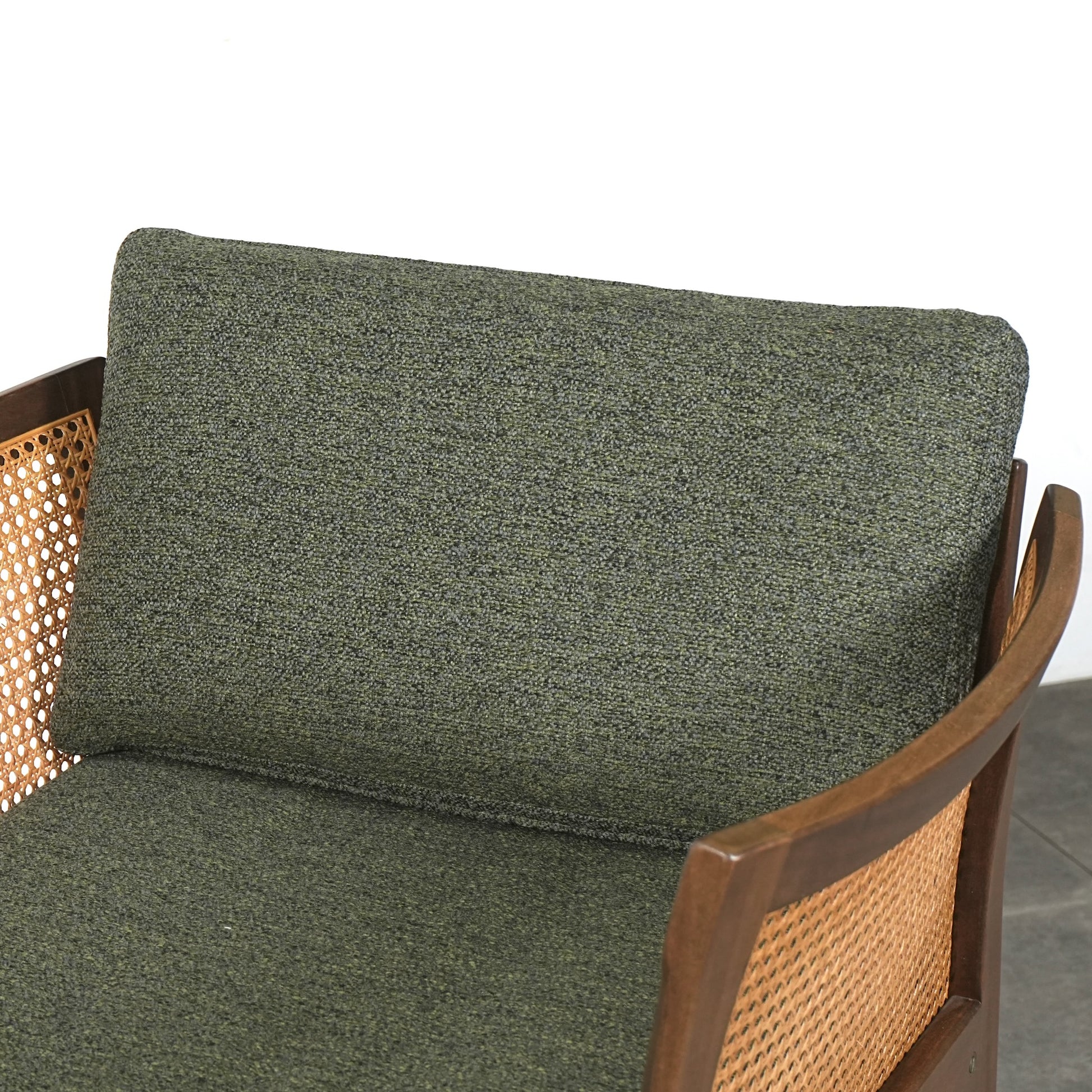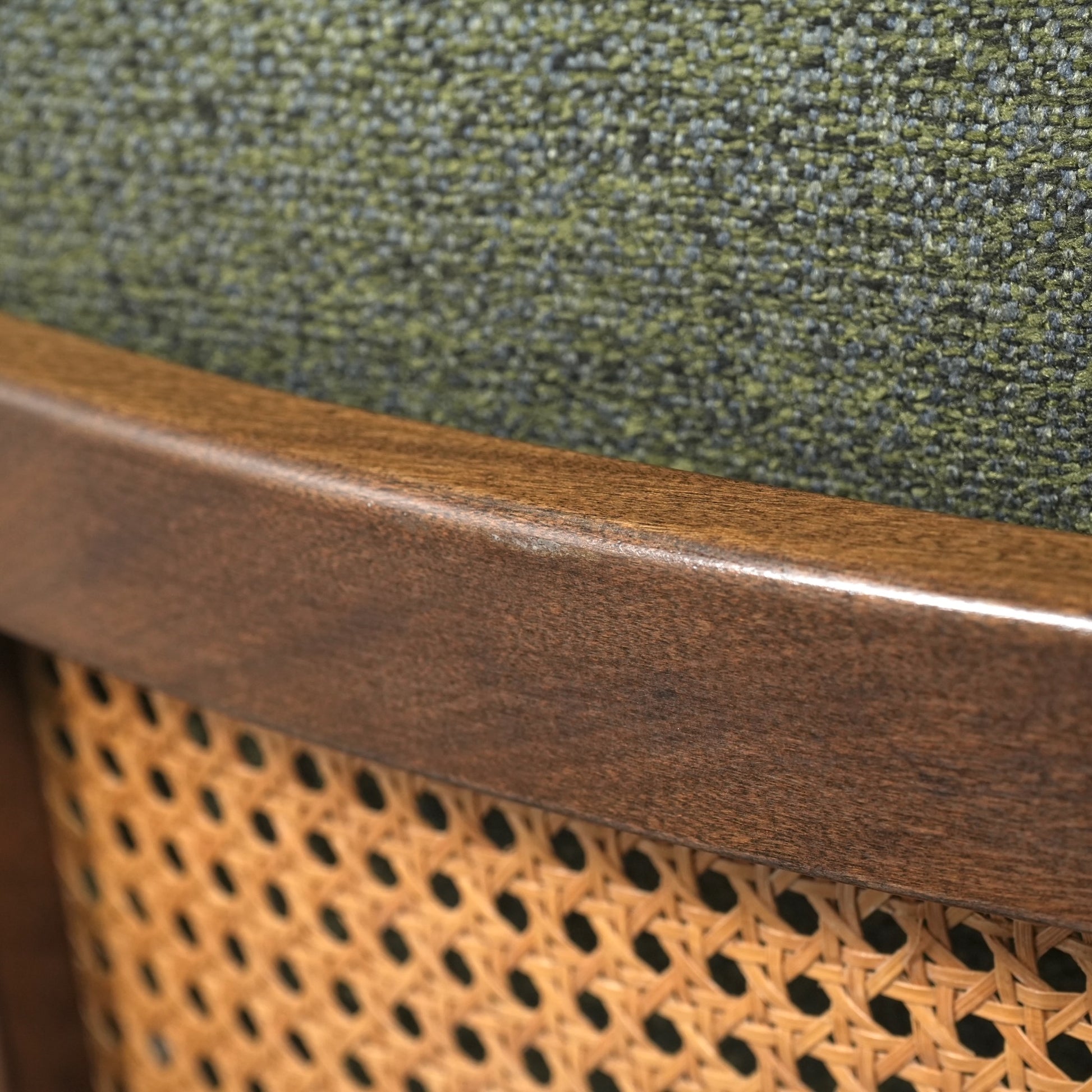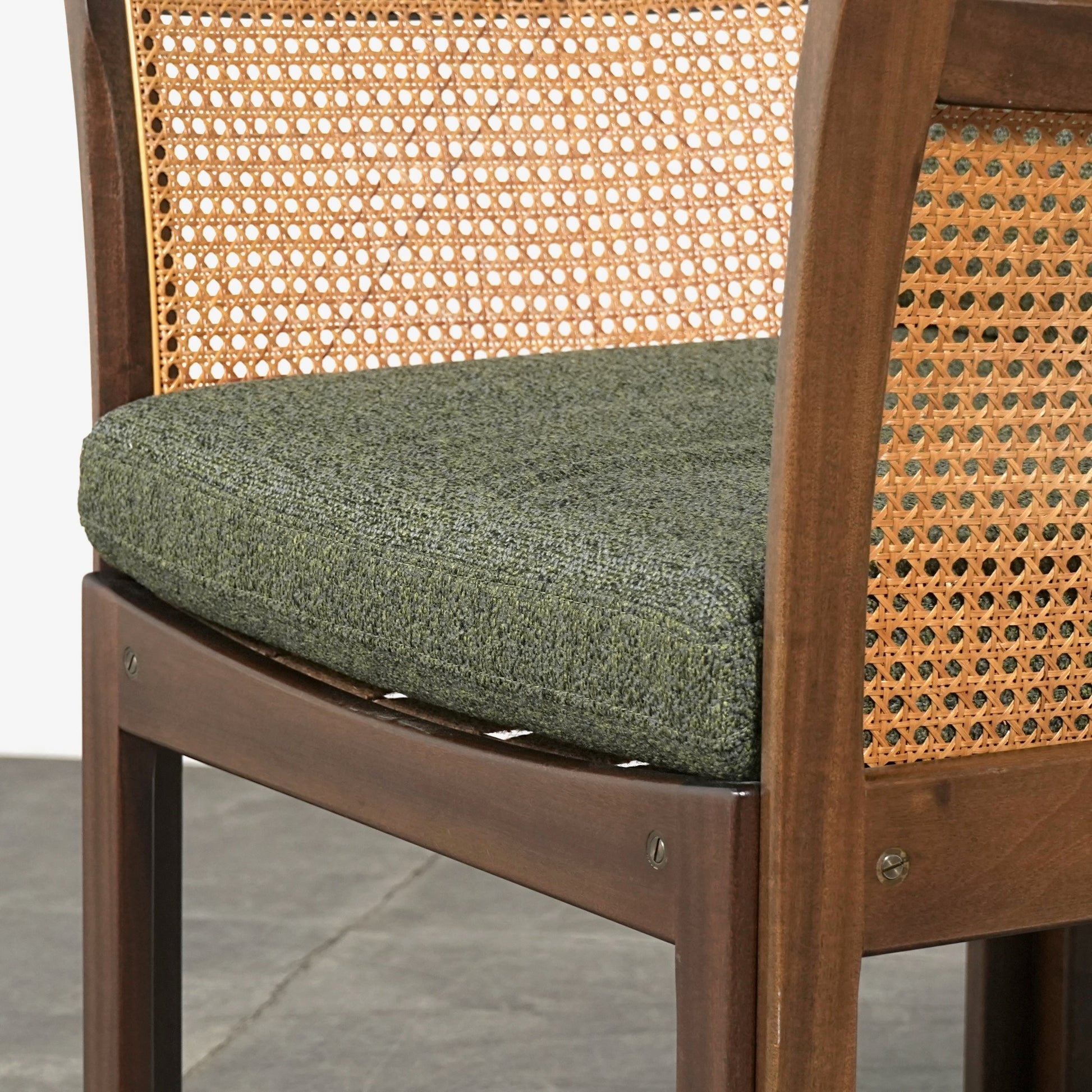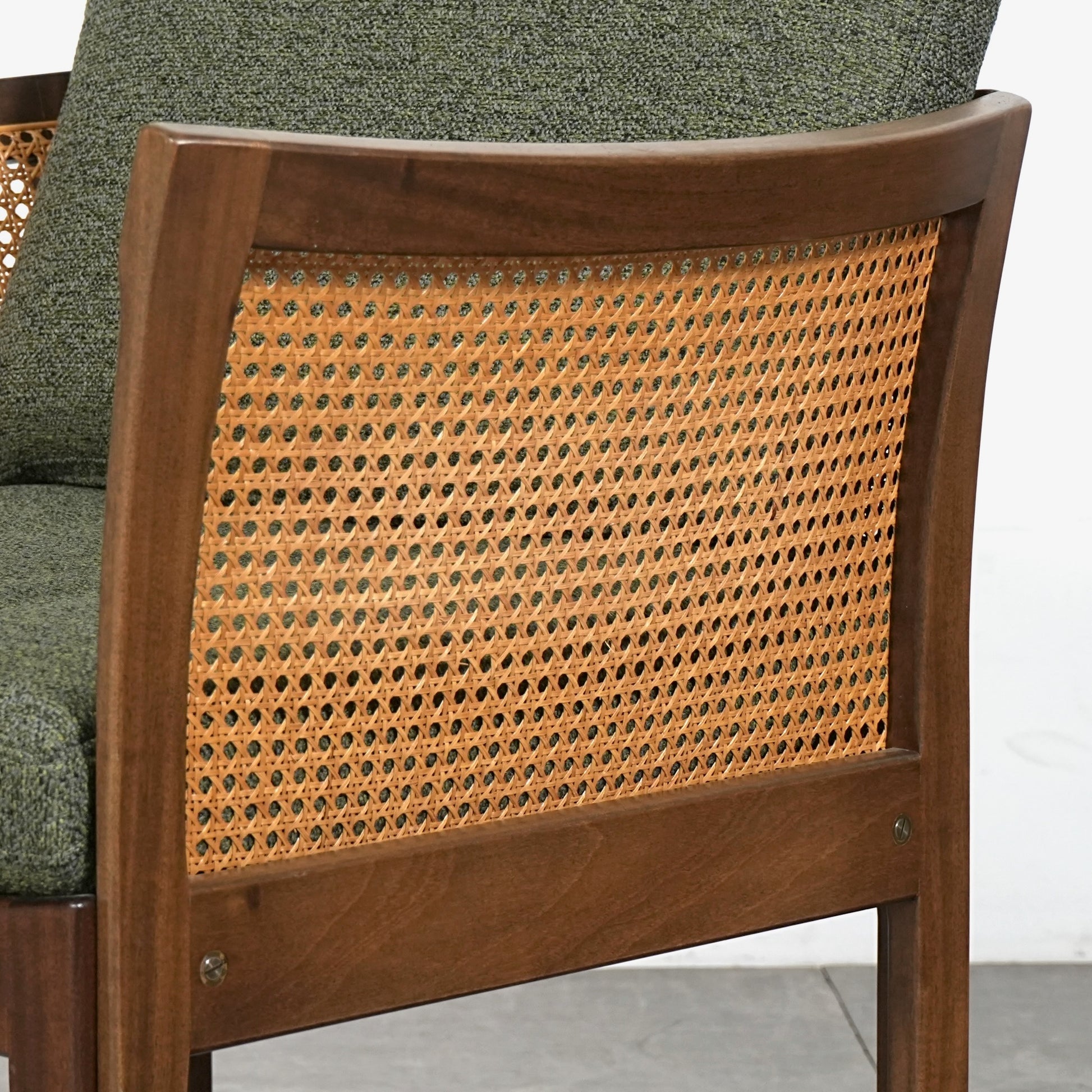 良質なマホガニー無垢材のフレームとラタンという見事な組み合わせで、Wikkelsoらしい合理的かつミニマルなフォルム。