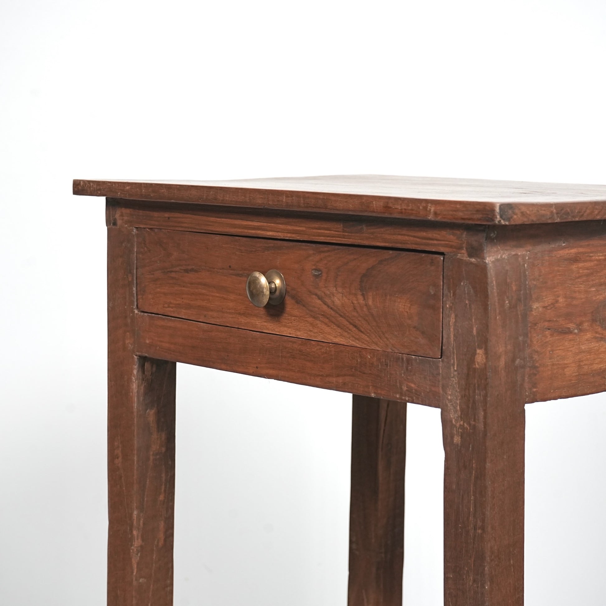 このサイドテーブルはチーク無垢材の美しい質感が最大の魅力で、玄関やリビングのちょっとしたスペースに収まってくれるコンパクトサイズ。