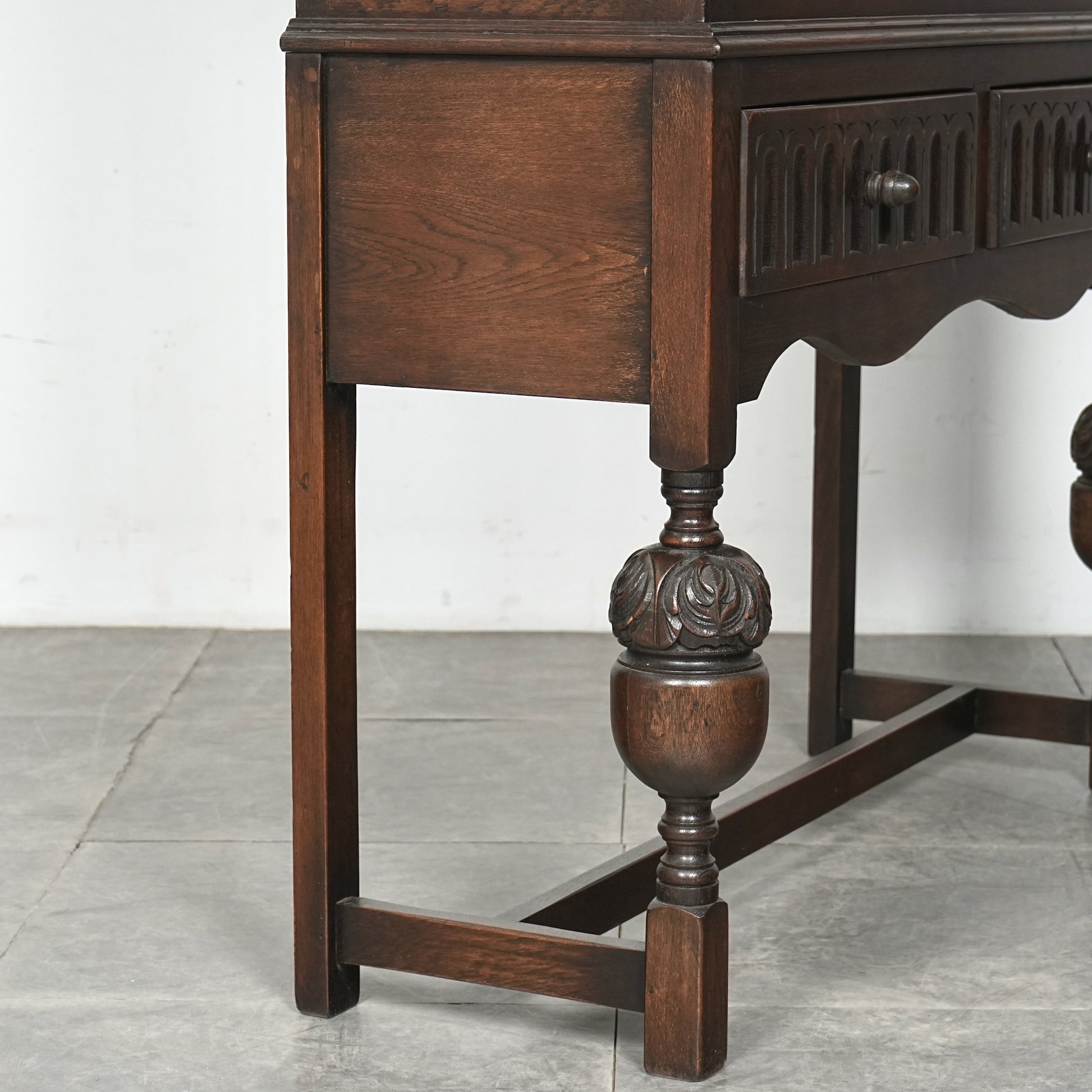 高品質なオーク材の力強い木目や質感に加えて、イギリスらしいガラス面のデザインや、程よい存在感を放つバルボスレッグが印象的です。