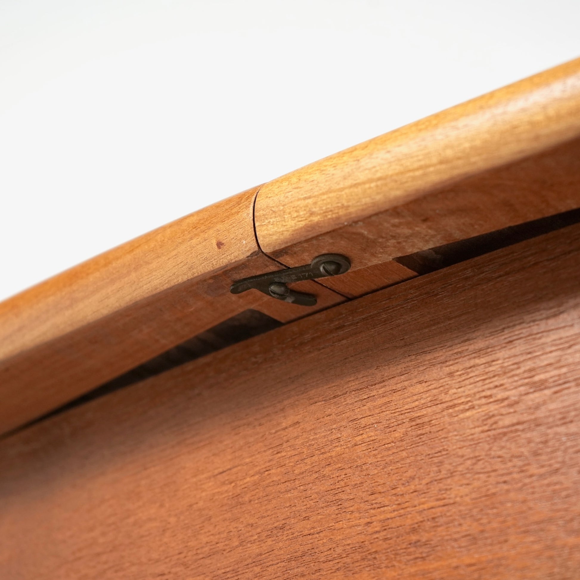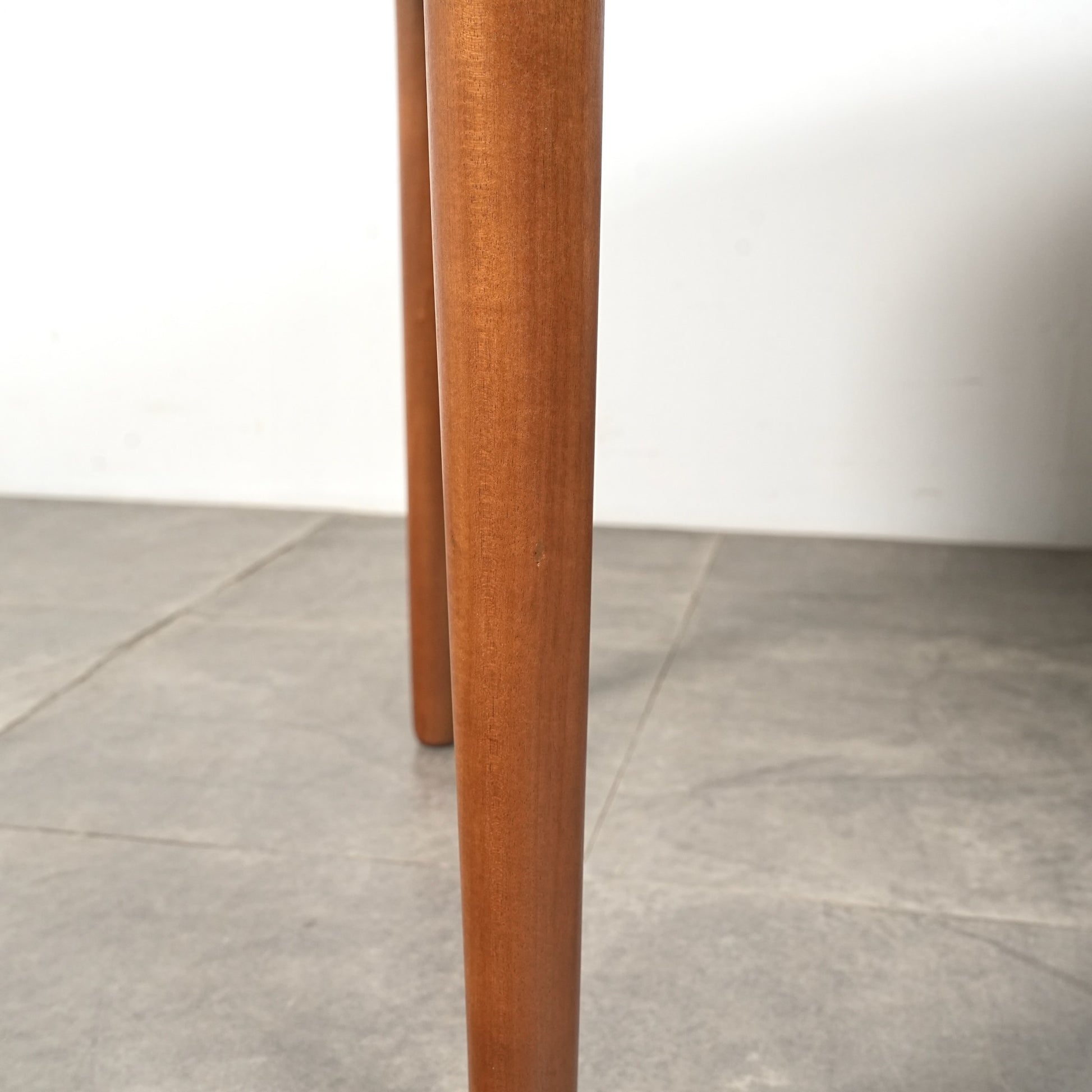 現代の空間との相性が良いチーク材の美しい木目はもちろんのこと、脚部のスタイリッシュなデザインが印象的です。