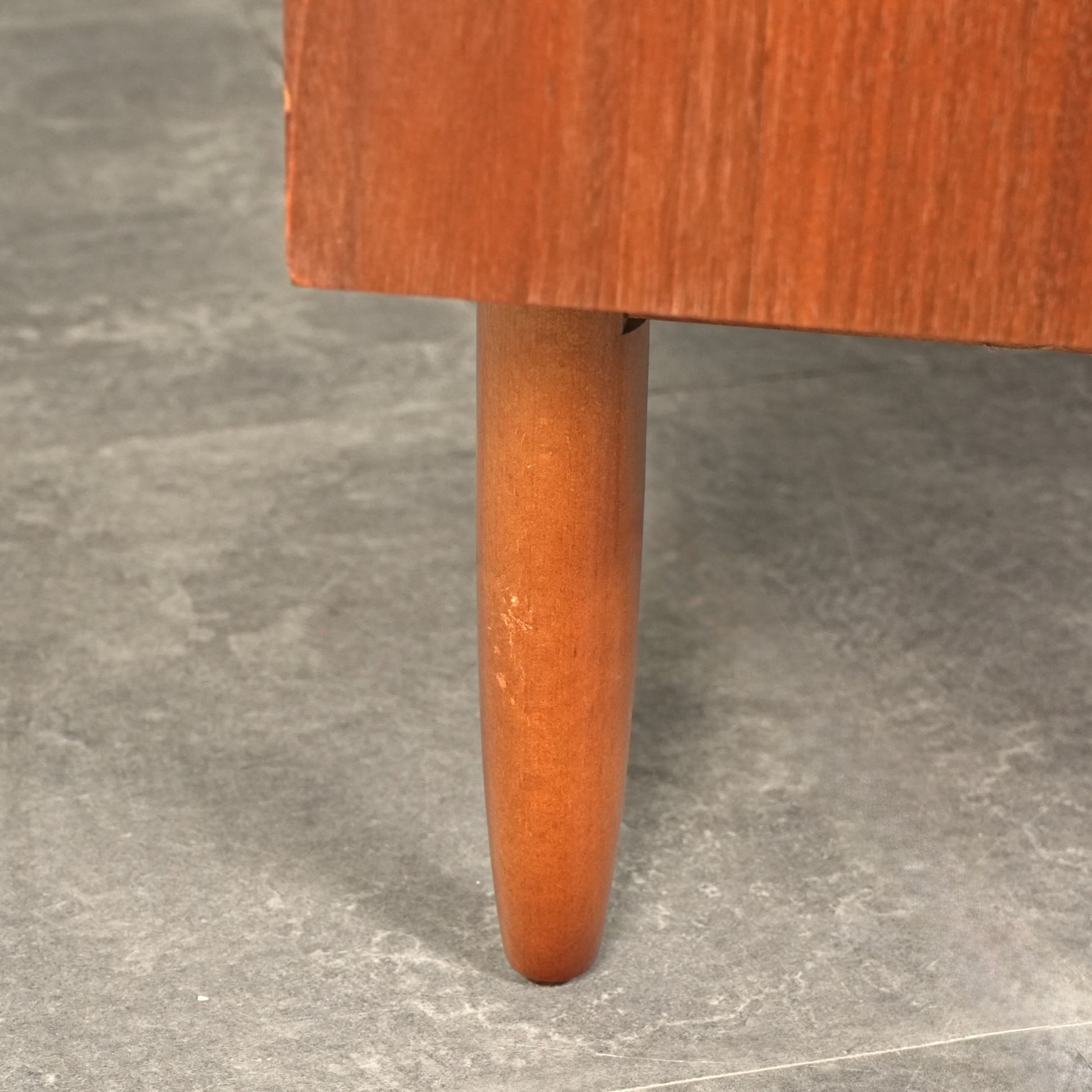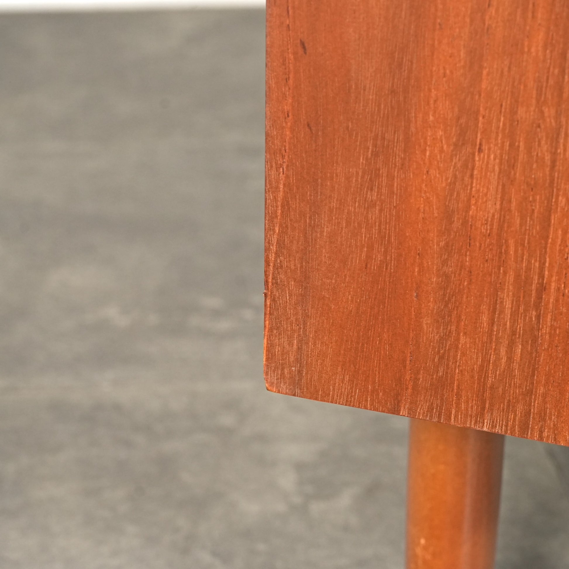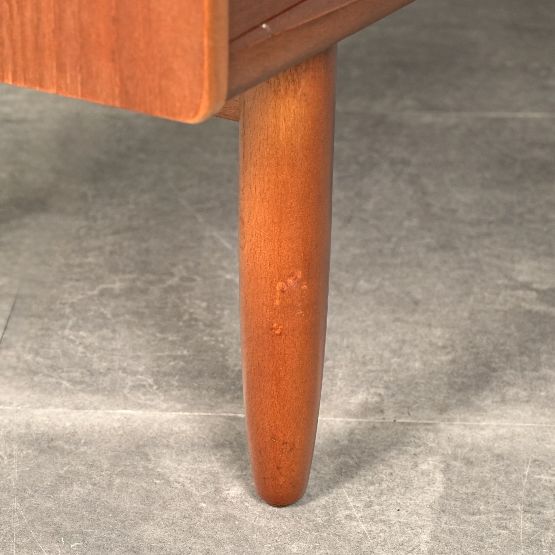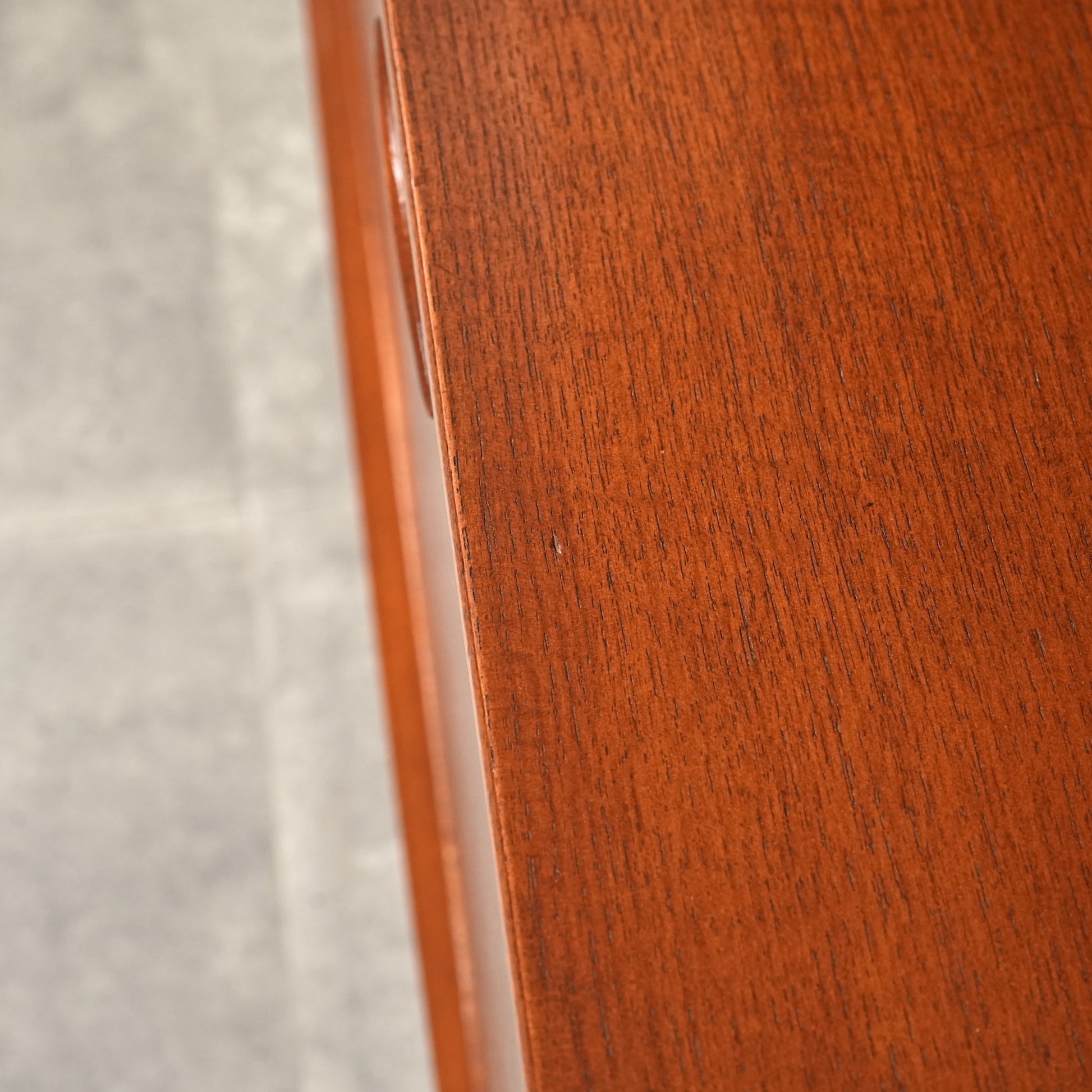 デンマークをはじめとするスカンジナビアスタイル(北欧デザイン)の影響を感じさせる見事なデザインで、良質なチーク材の質感や削り出しで作られた可愛らしい取手も魅力的です。