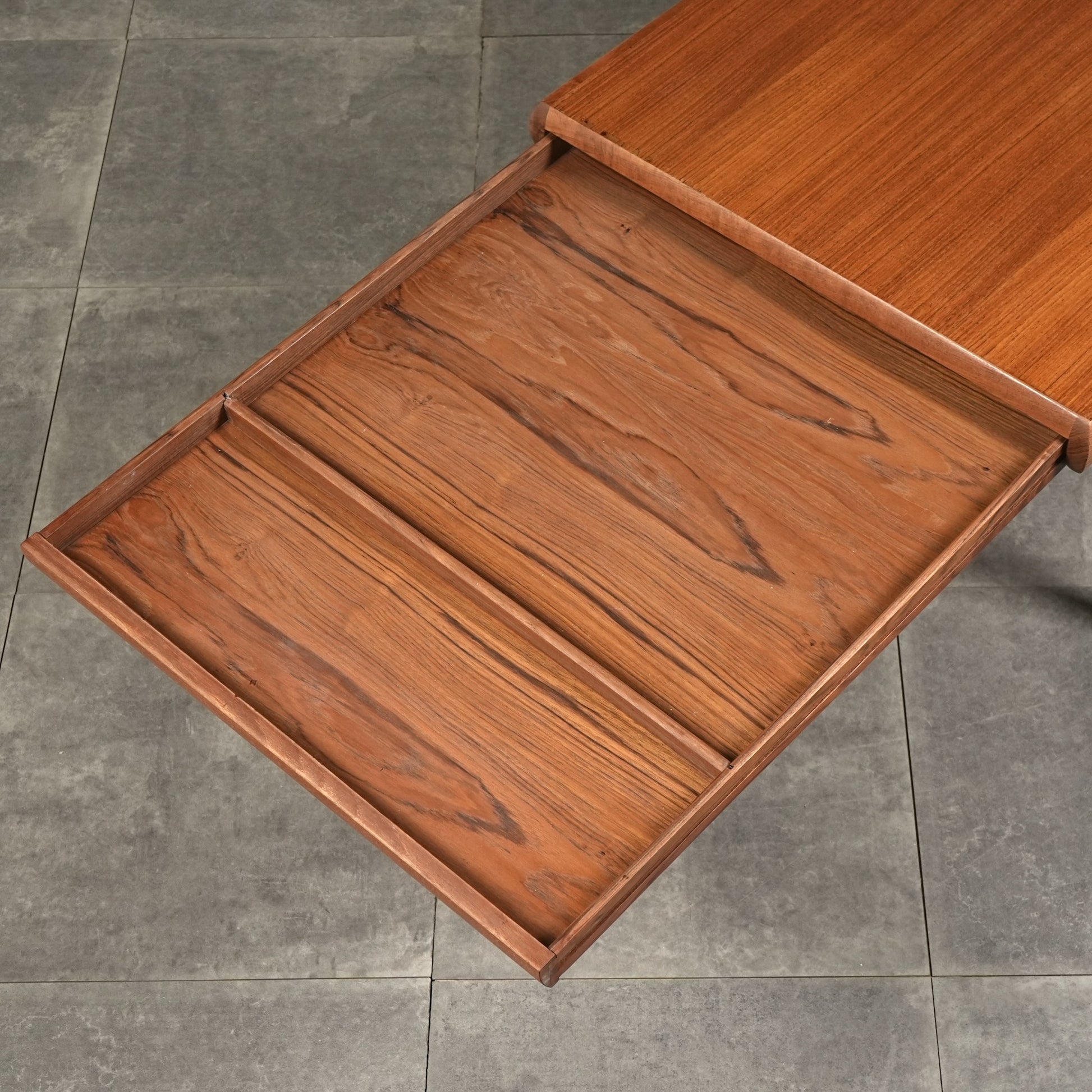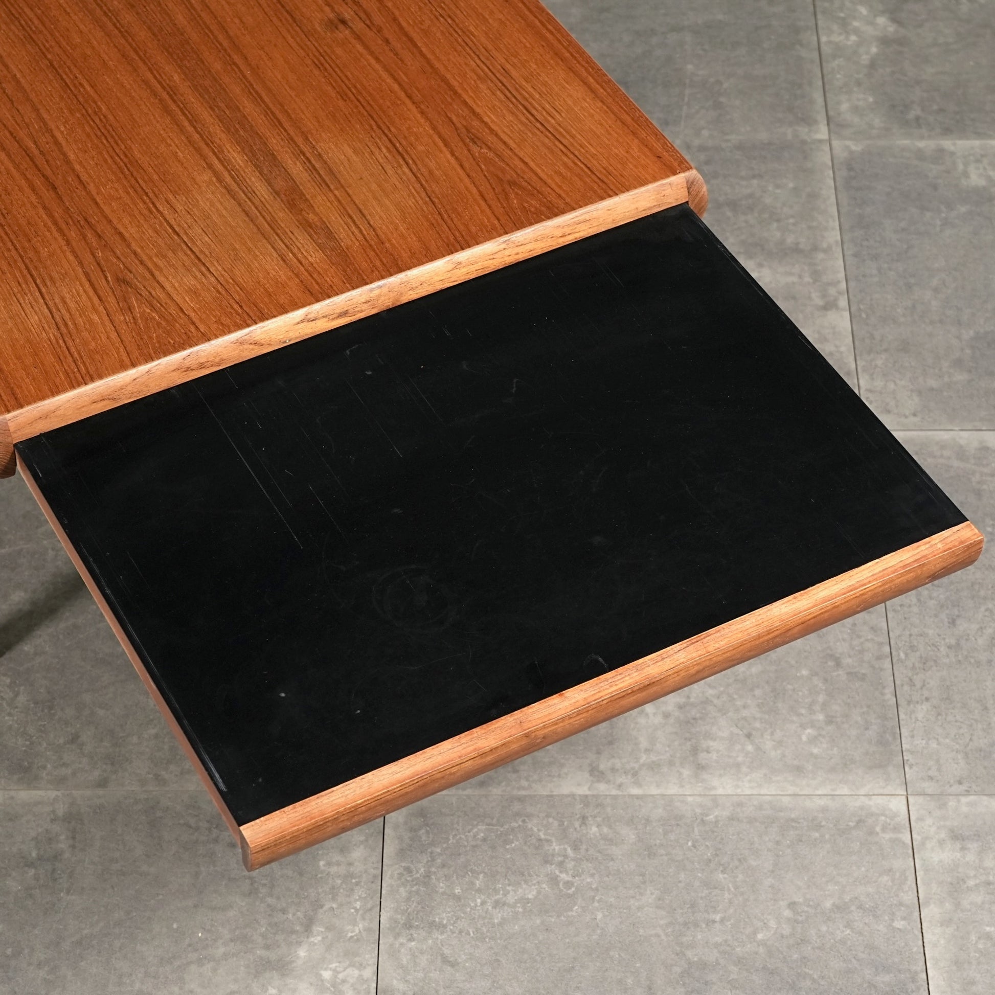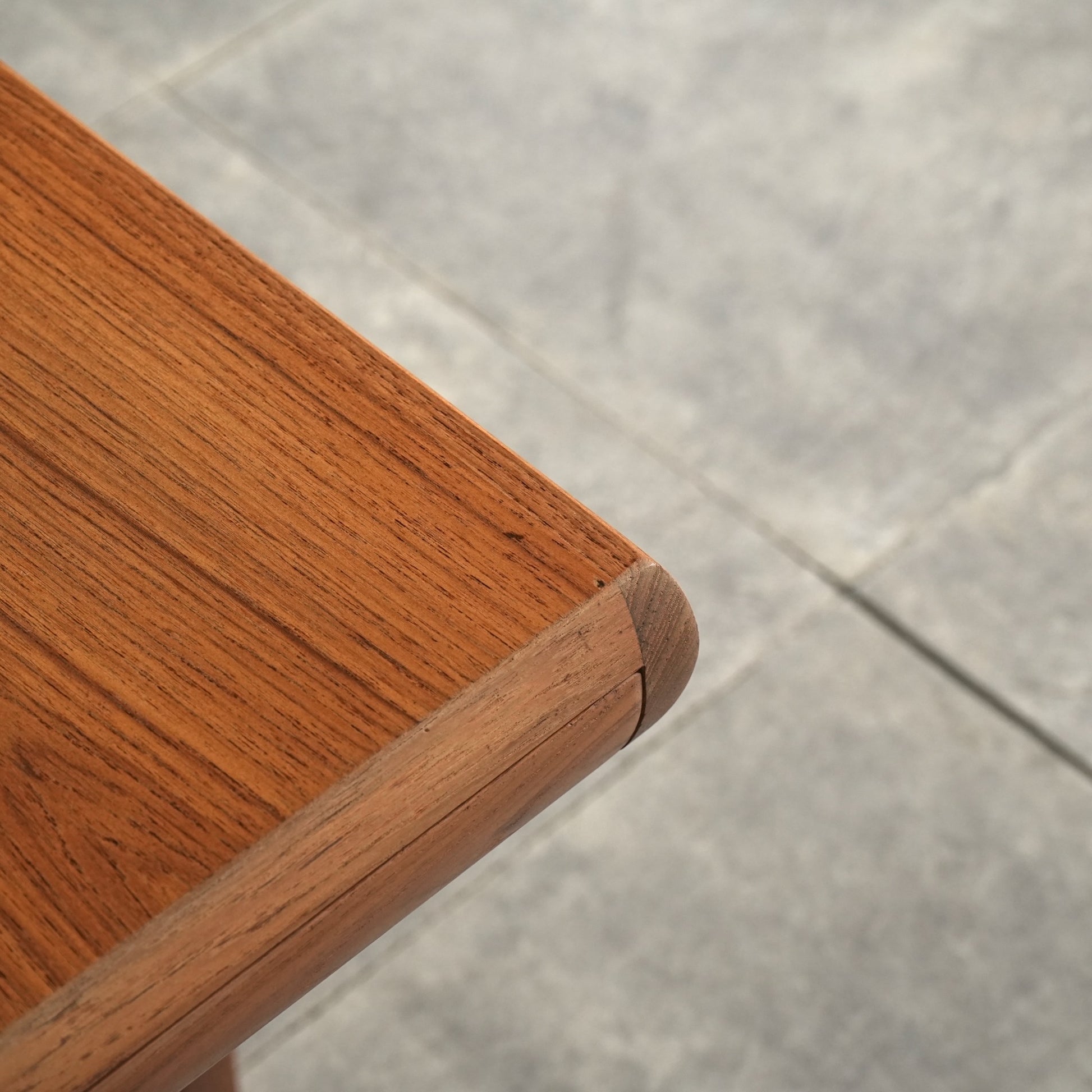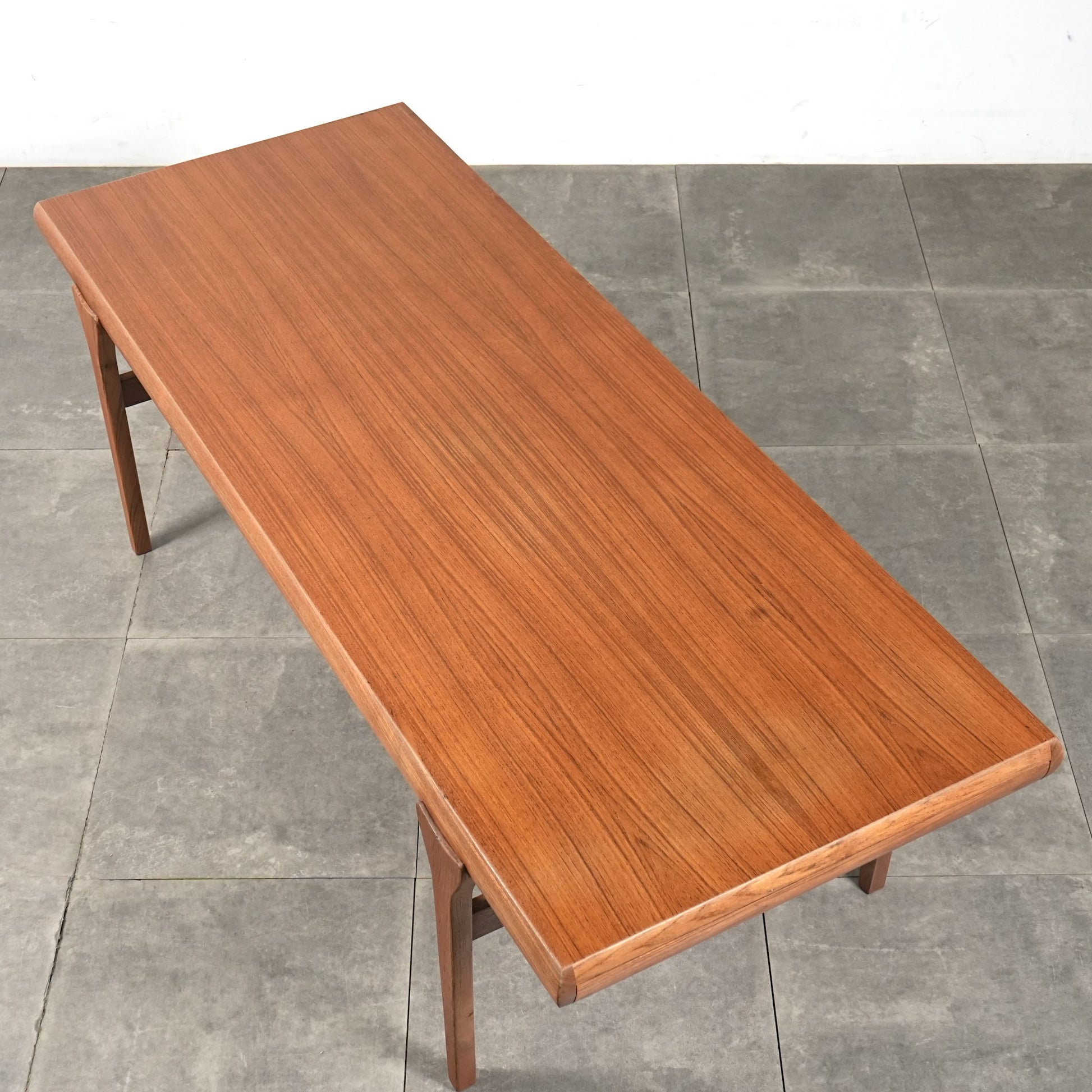 素材には上質なチーク材が使用され、天板の柔らかな丸みや細身の脚部、そしてユニークかつ美しい接合など、北欧デザインらしい洗練された佇まいが魅力の一台です。