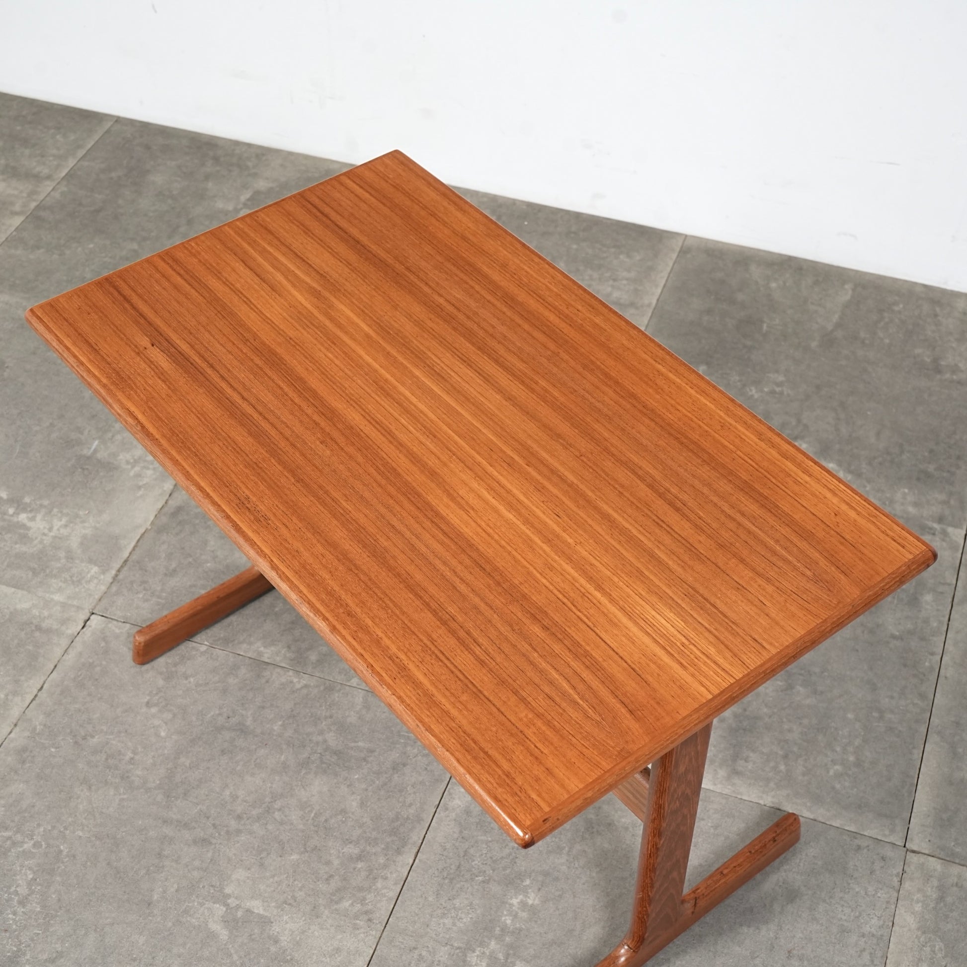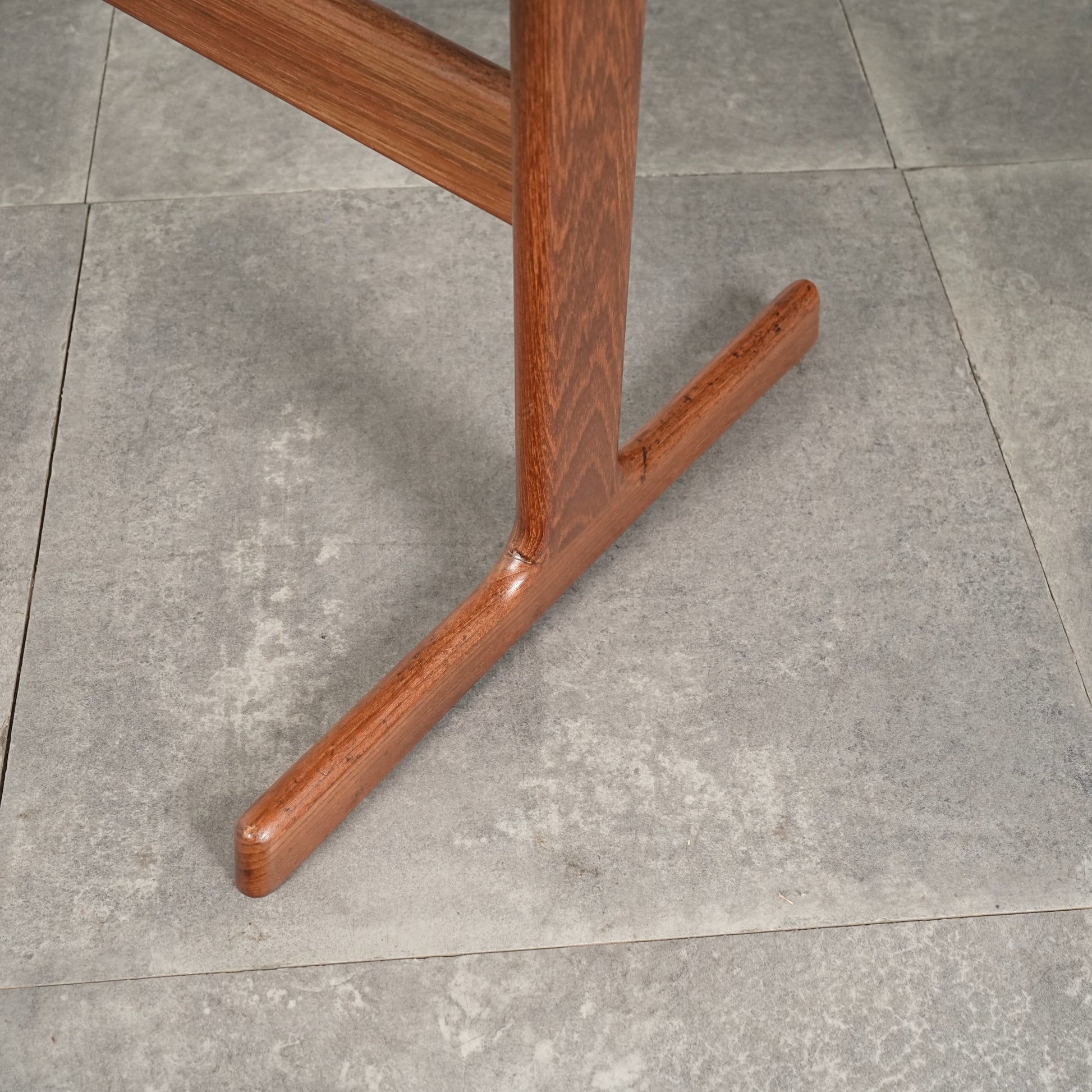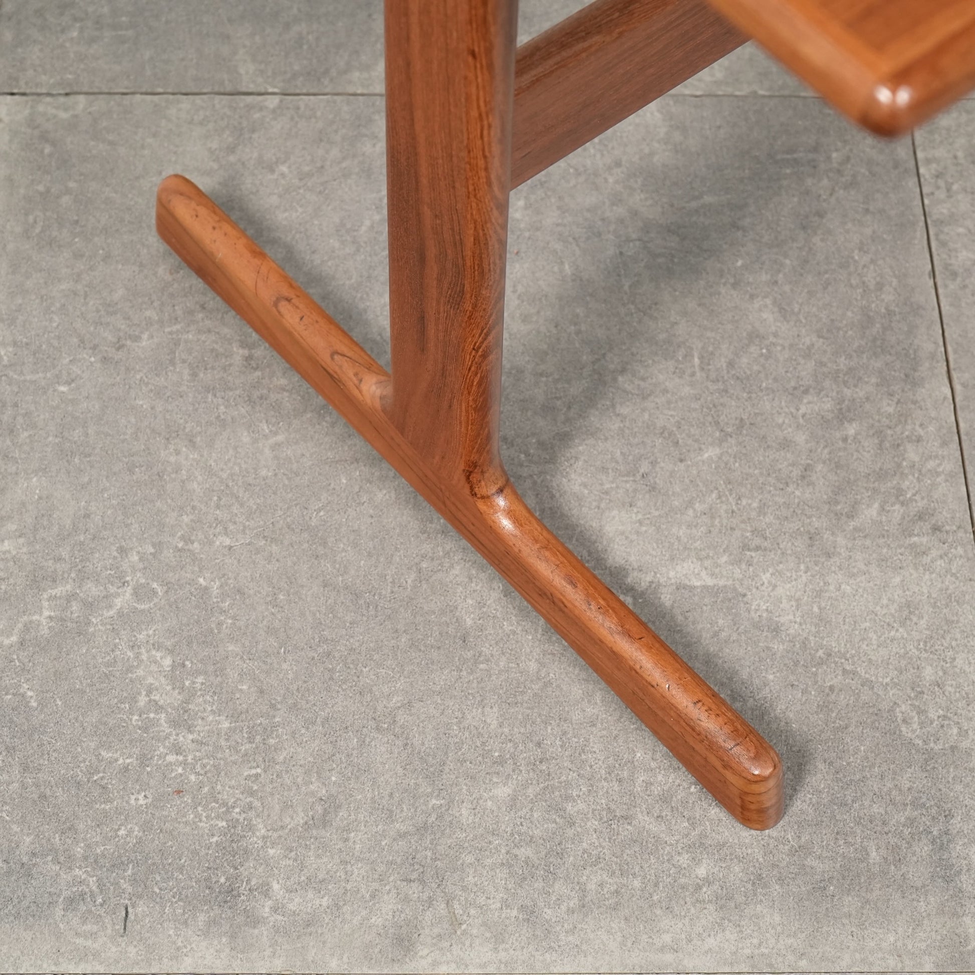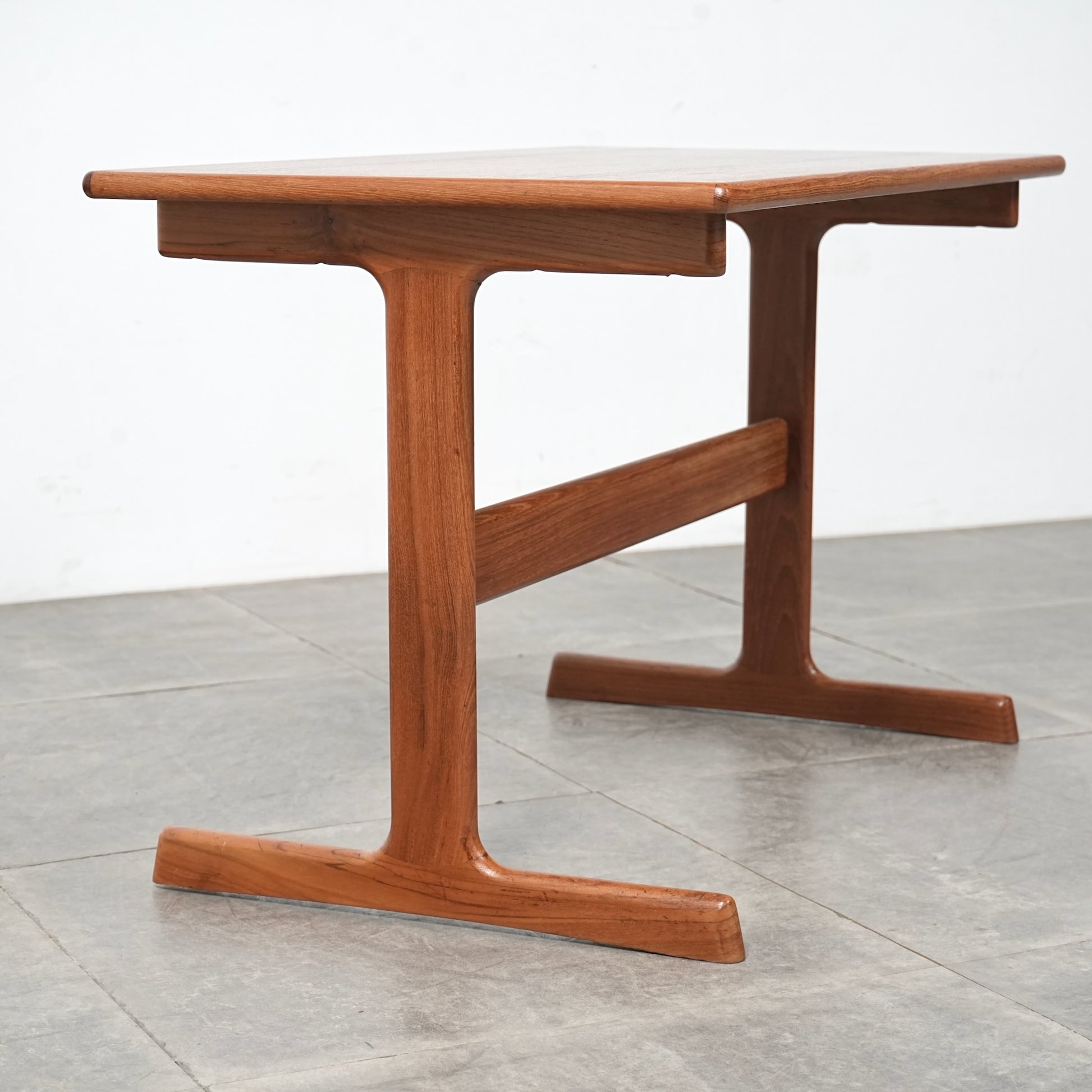 チーク材を贅沢に使用した天板と、スリムに伸びるT字型の脚部が美しいバランスを生み出しており、Kristiansenらしい無駄を削ぎ落とした洗練された造形美を存分に堪能できる一台。