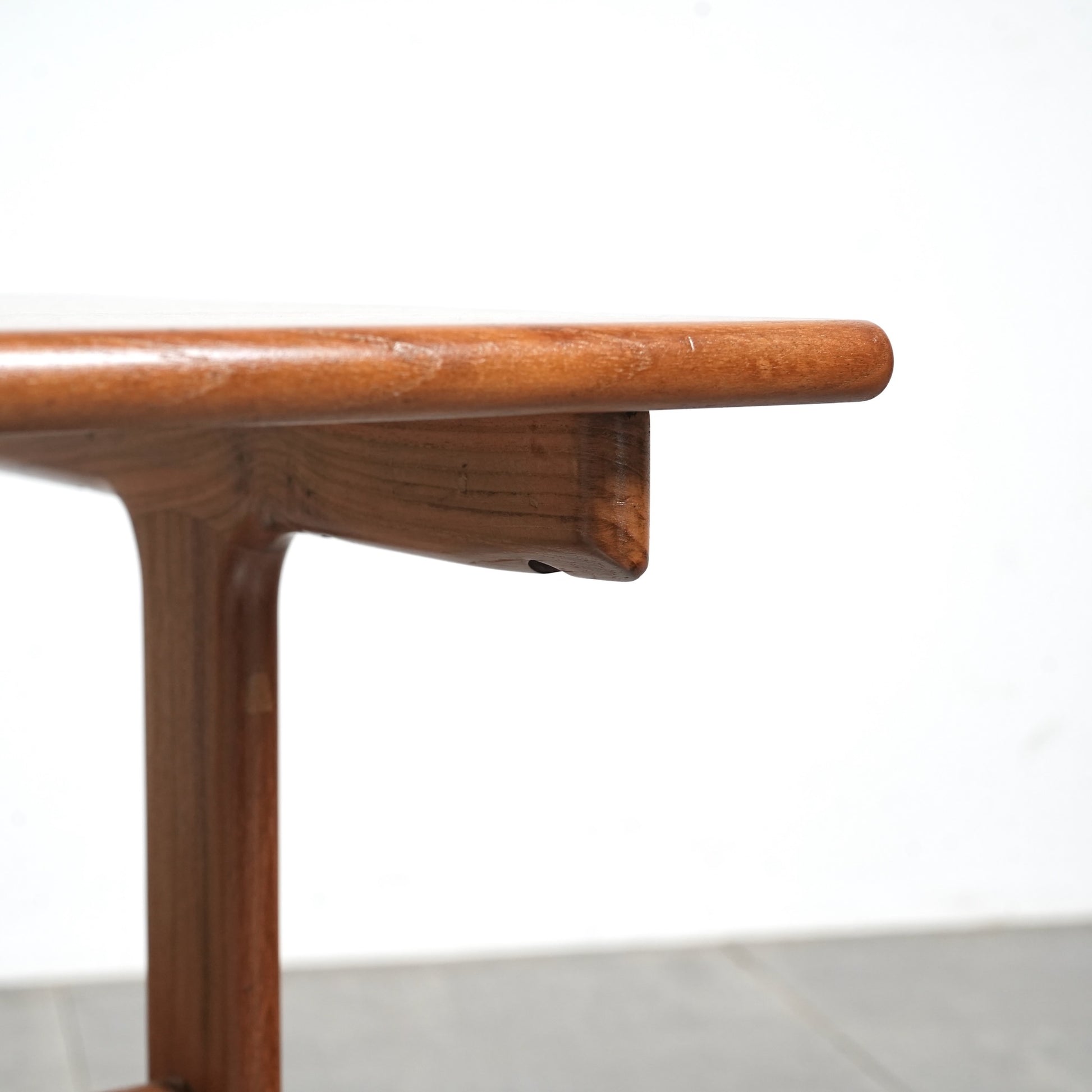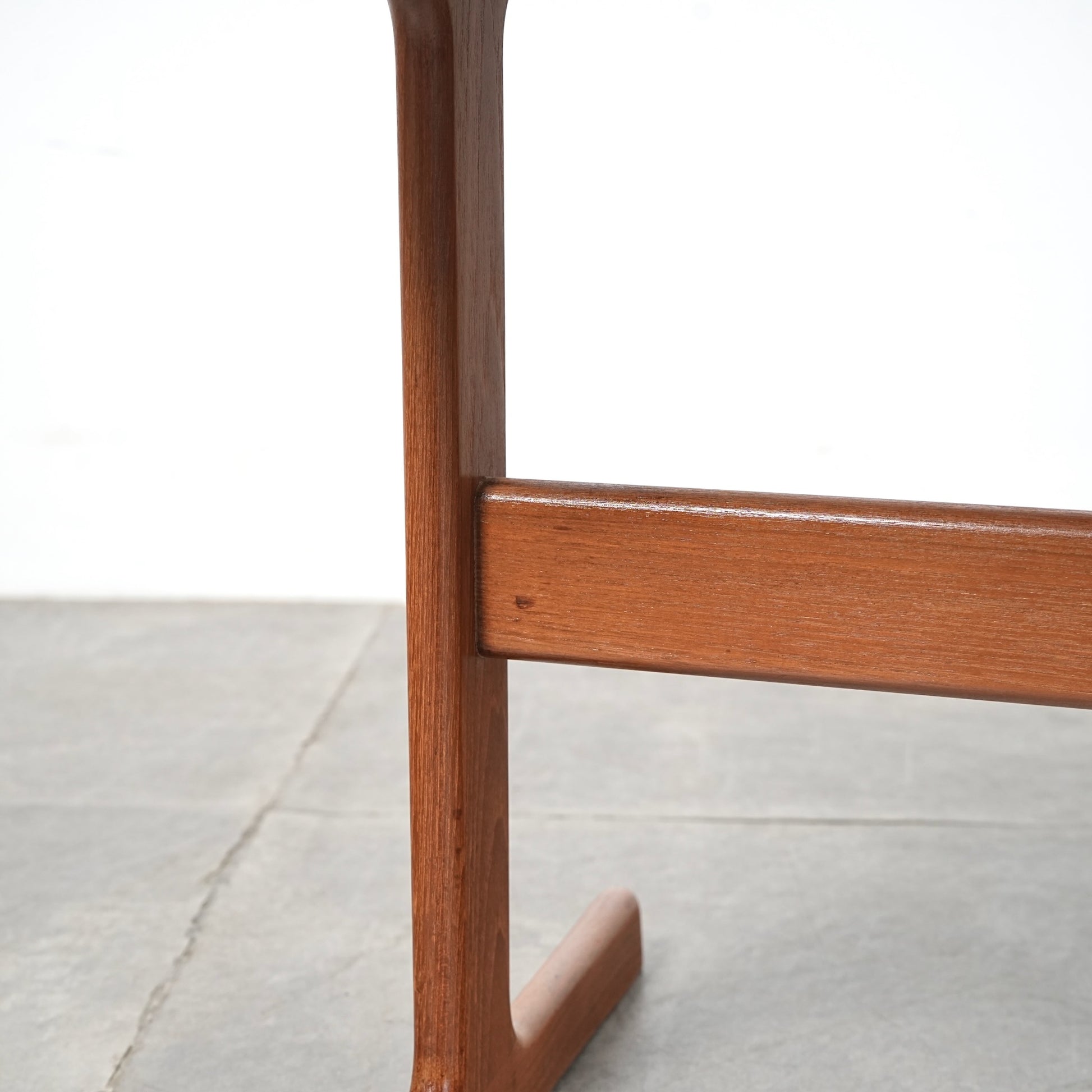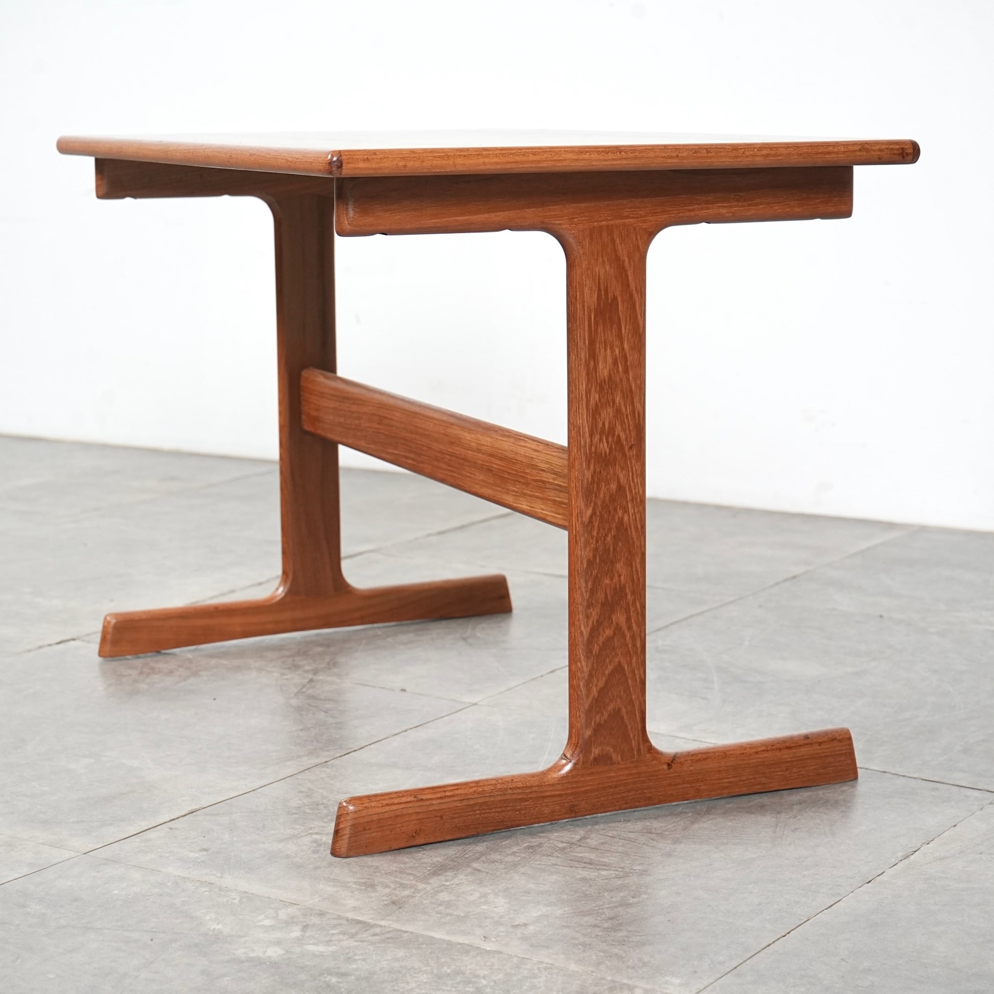チーク材を贅沢に使用した天板と、スリムに伸びるT字型の脚部が美しいバランスを生み出しており、Kristiansenらしい無駄を削ぎ落とした洗練された造形美を存分に堪能できる一台。
