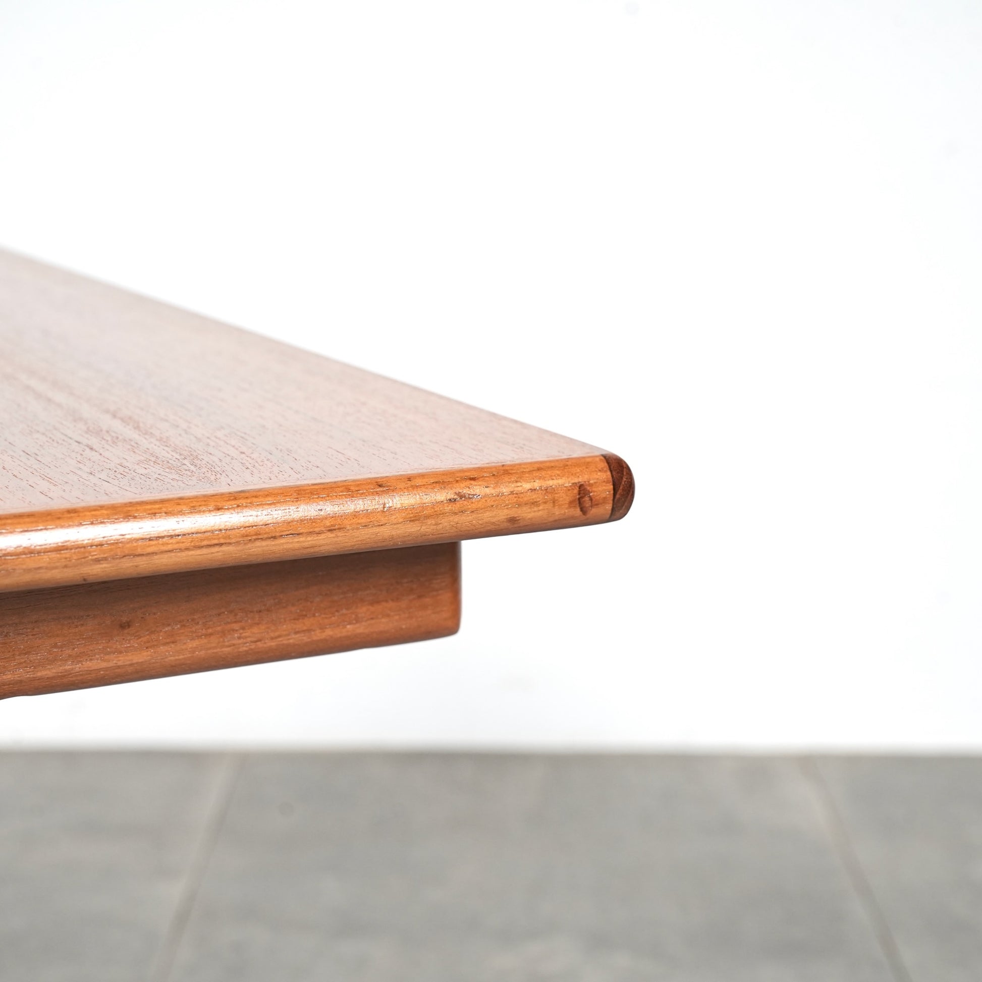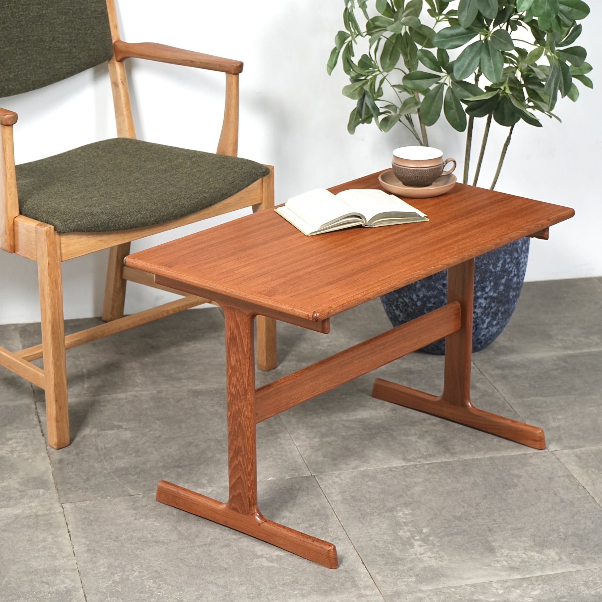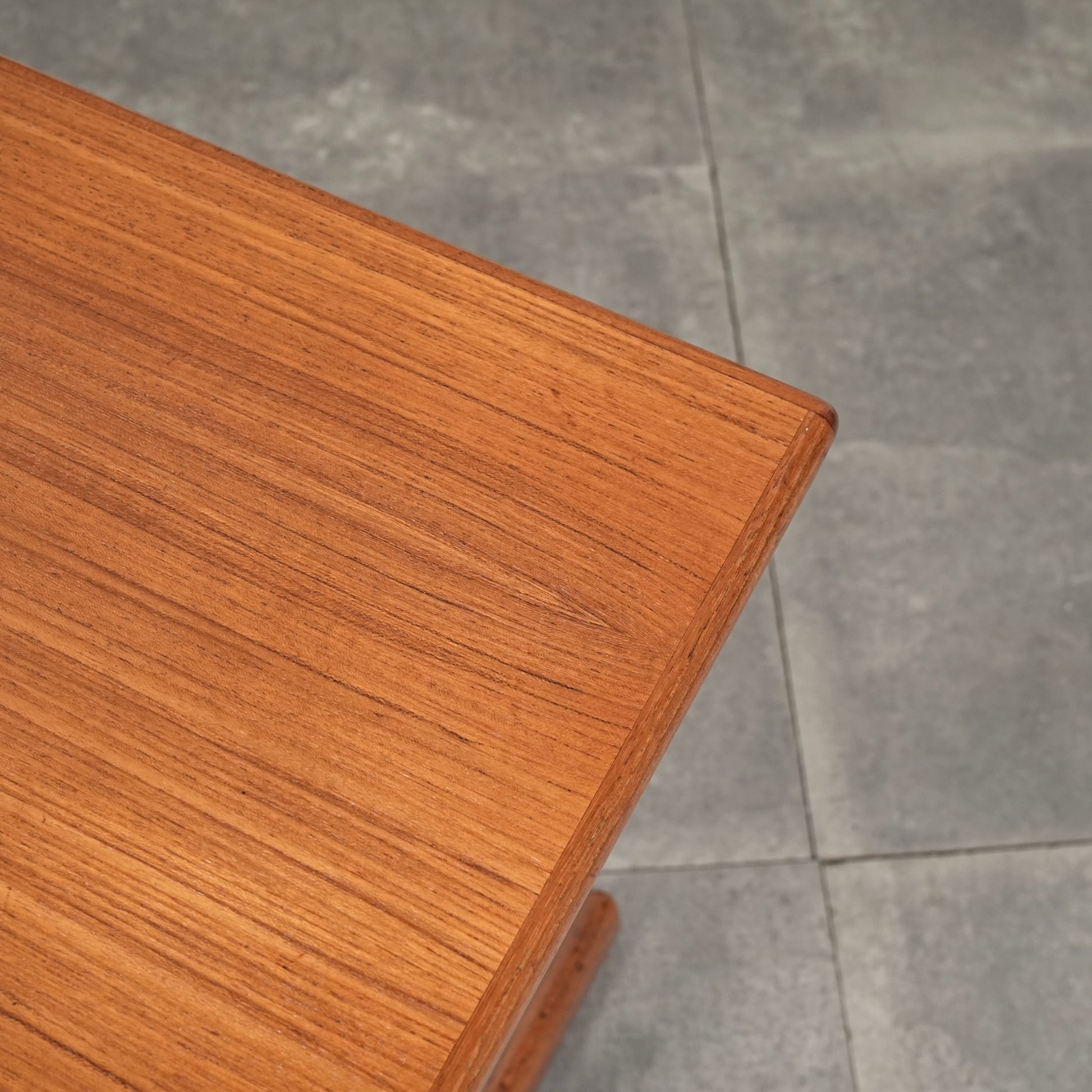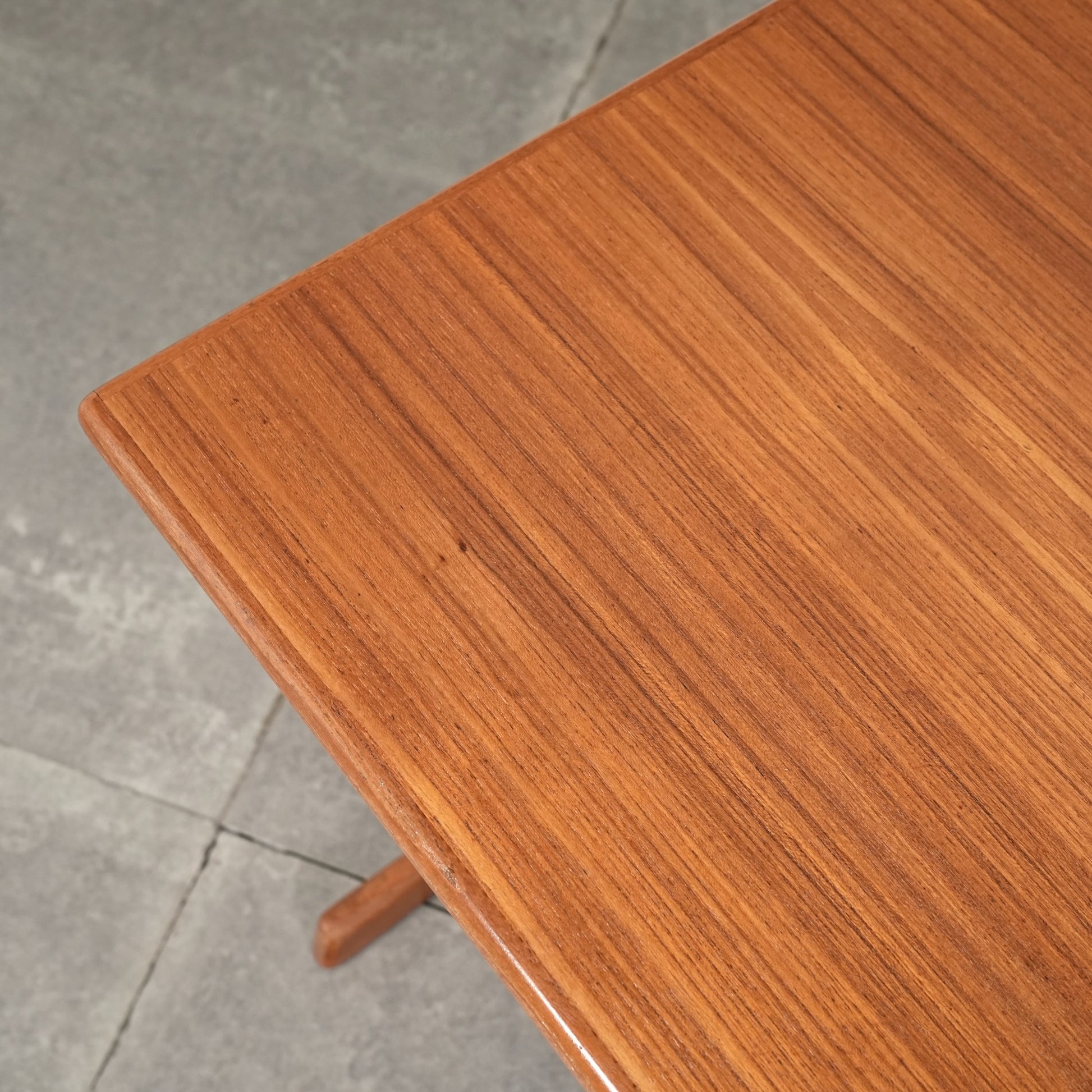 チーク材を贅沢に使用した天板と、スリムに伸びるT字型の脚部が美しいバランスを生み出しており、Kristiansenらしい無駄を削ぎ落とした洗練された造形美を存分に堪能できる一台。