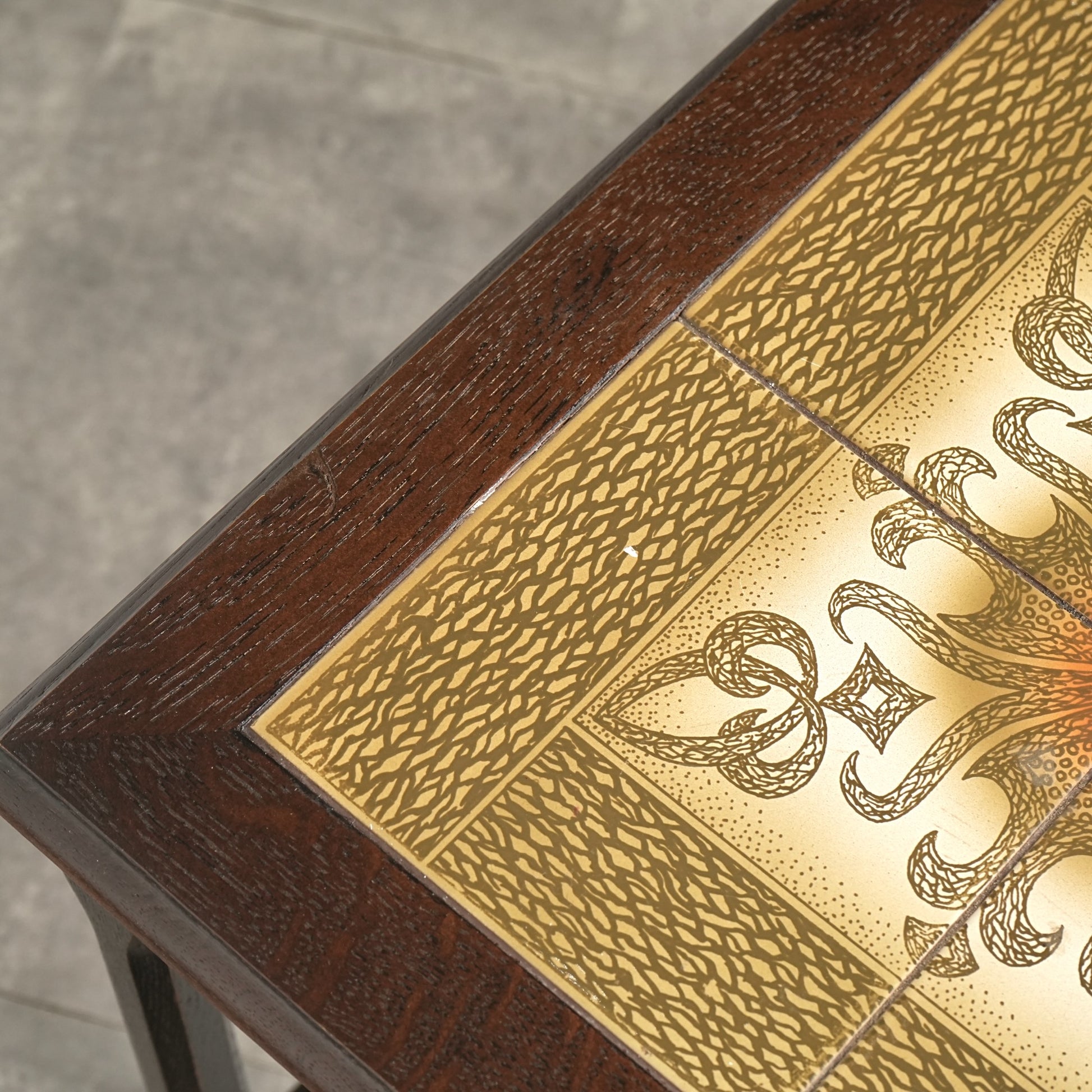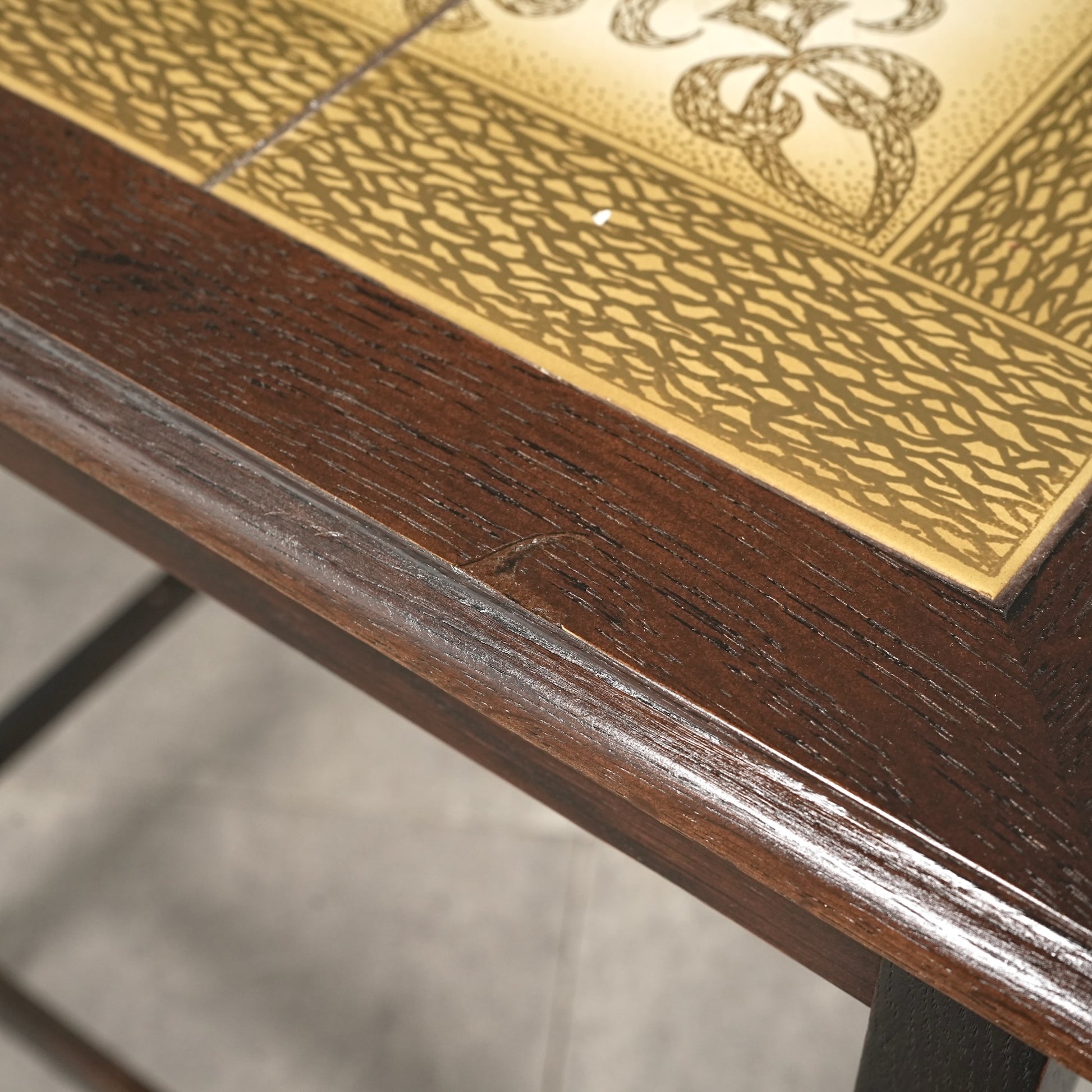 落ち着いたトーンのオーク材のフレームと天板のタイルのバランスが秀逸で、お部屋のアクセントとして活躍してくれそうなアイテム。