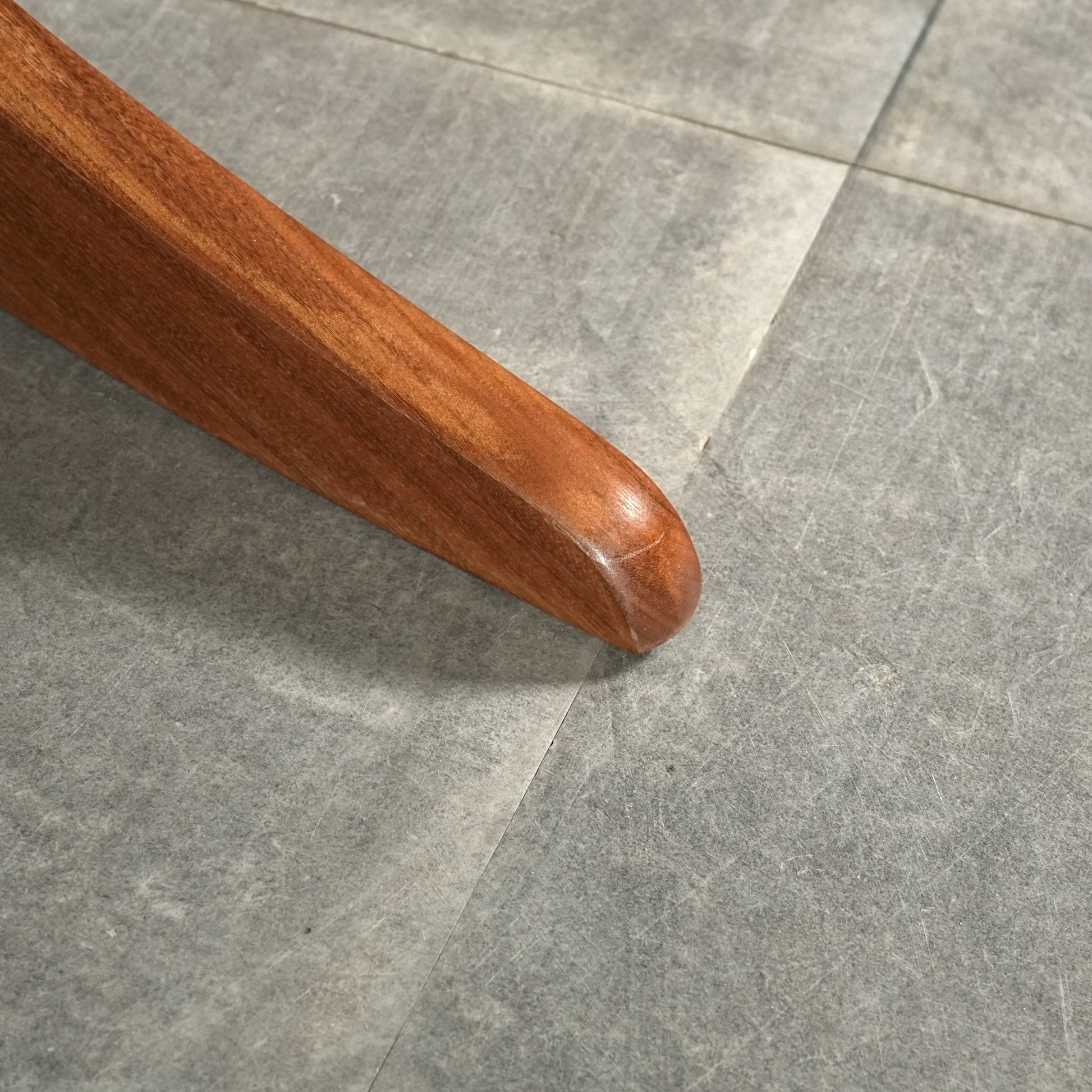 現代の住環境との相性の良い上質なチークの美しい質感だけでなく、文句なしの高いデザイン性は流石の一言で、特に脚部の美しいラインが印象的。