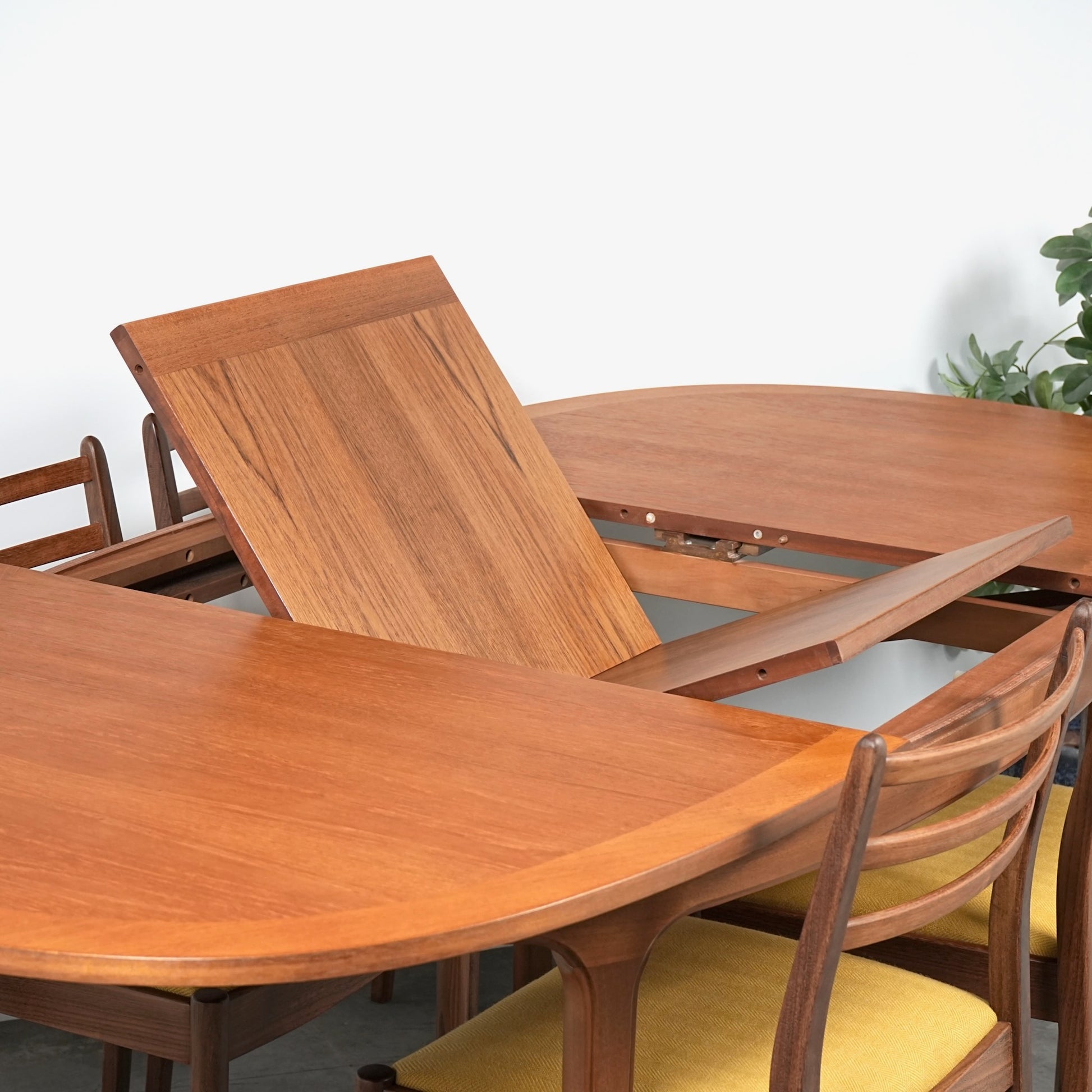 この時代のテーブルには標準装備とも言えるエクステンション機能(拡張機能)を備えており、簡単に6人掛けサイズへと調整が可能な優れもの。