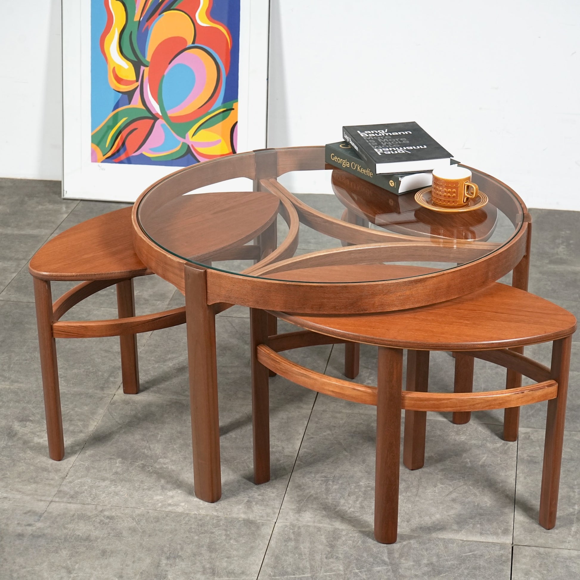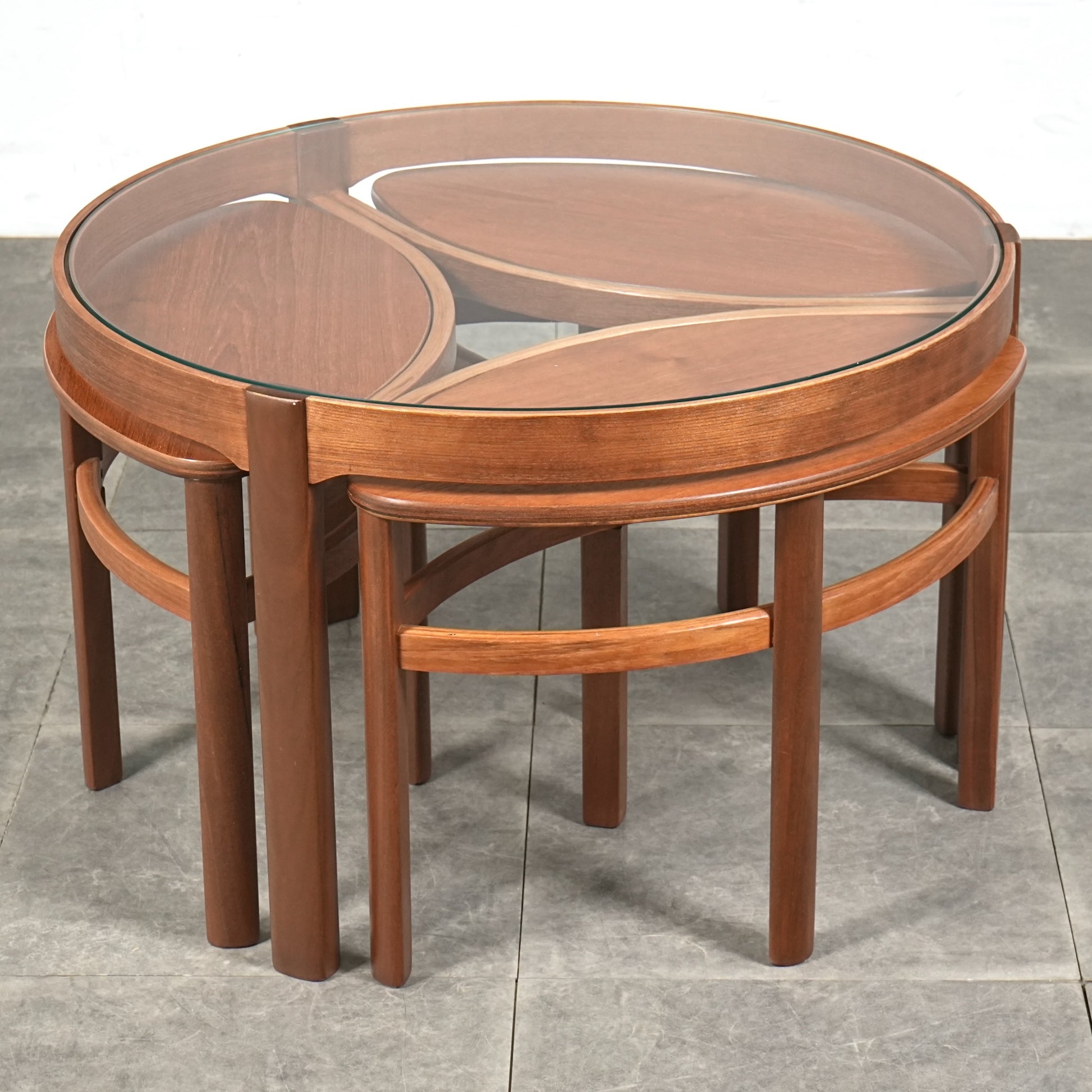 英国ミッドセンチュリーを代表するブランドNATHANが生み出した名作の1つ、ガラストップ ネストテーブル。