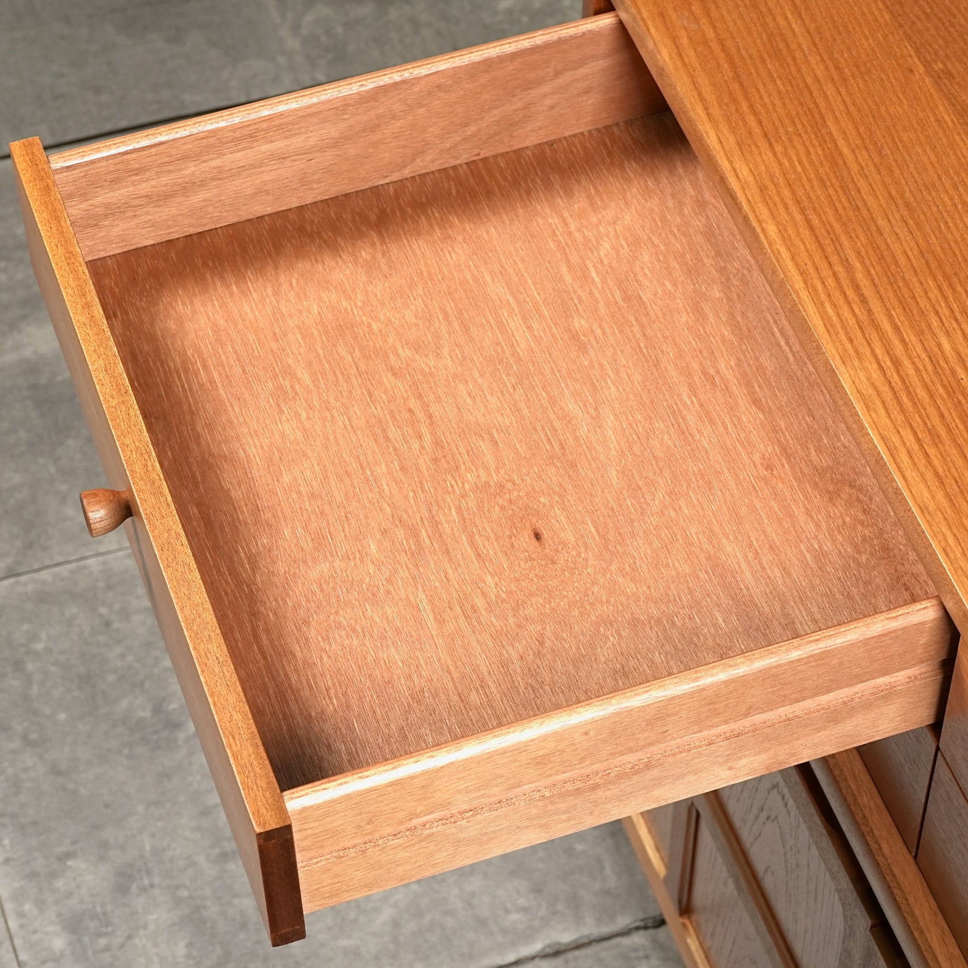 1950年代中頃にはニューヨークの家具展覧会でイギリス代表のデザインとして選出されたことで名声を博し、上質なチーク材を使用した家具の生産にも着手。