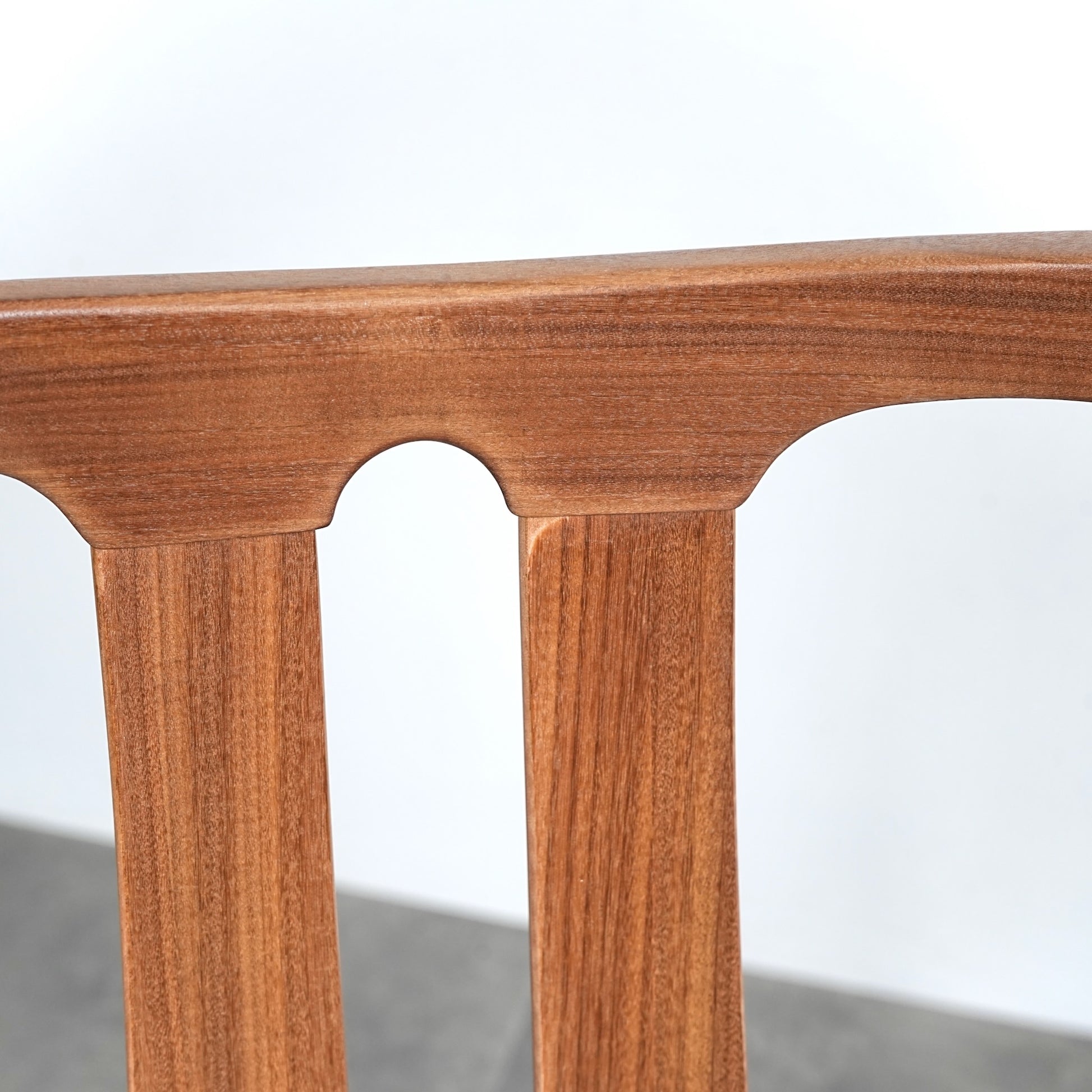 上質なチーク材を使用したフレームは背もたれのさり気ないデザインが良いアクセントになっており、バランスの取れた美しいデザイン性と快適な座り心地を兼ね備えています。
