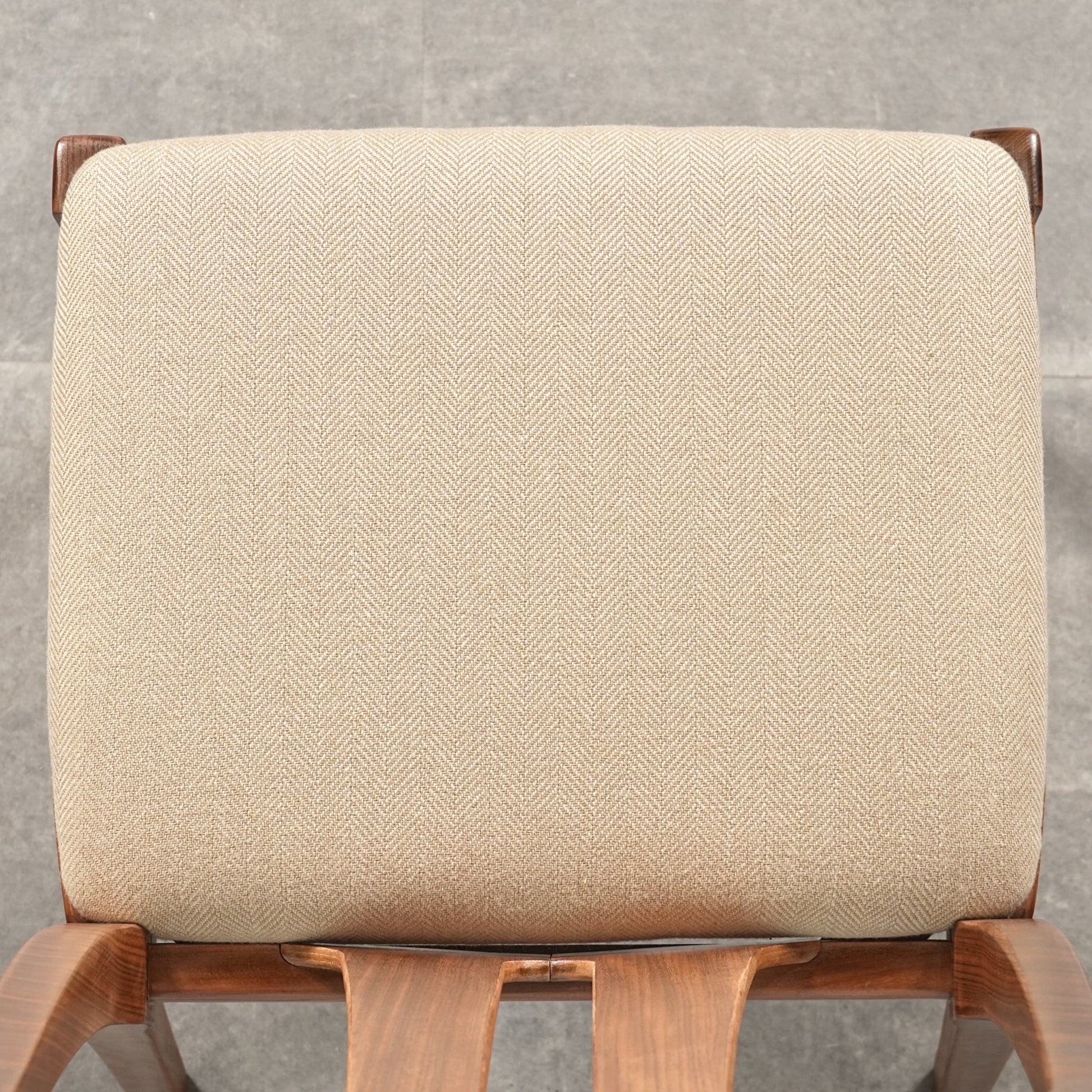 上質なチーク材を使用したフレームは背もたれのさり気ないデザインが良いアクセントになっており、バランスの取れた美しいデザイン性と快適な座り心地を兼ね備えています。