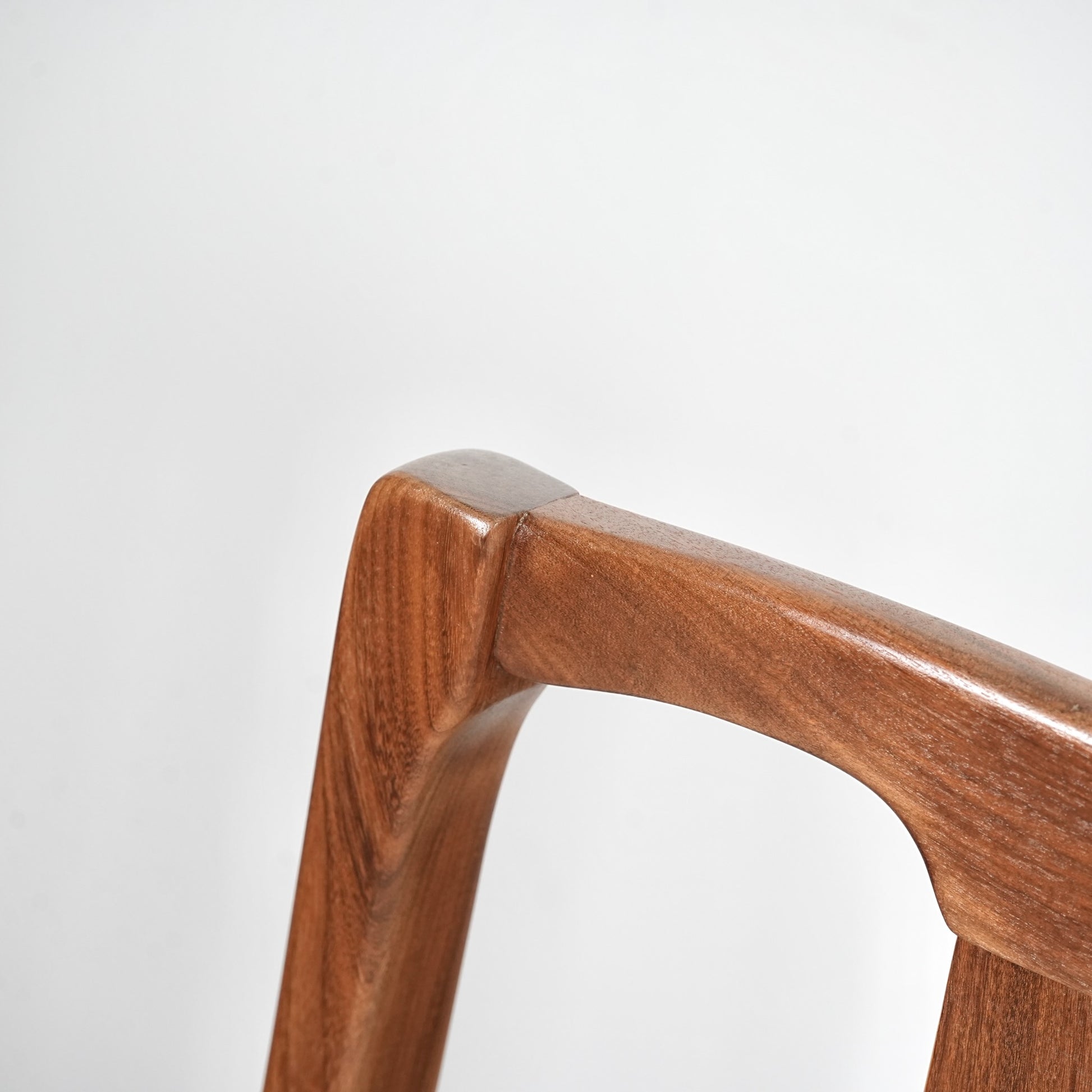 上質なチーク材を使用したフレームは背もたれのさり気ないデザインが良いアクセントになっており、バランスの取れた美しいデザイン性と快適な座り心地を兼ね備えています。