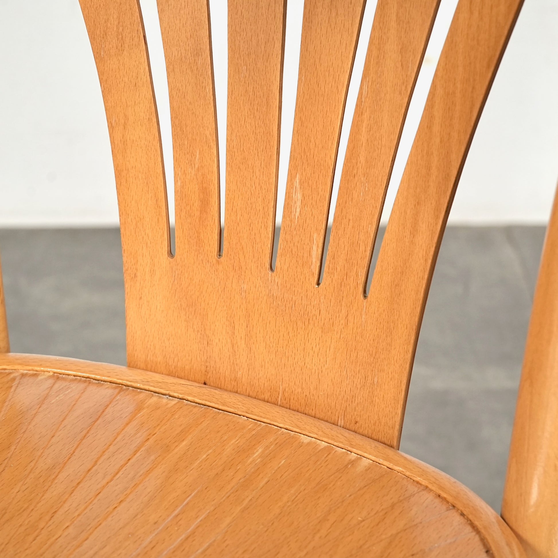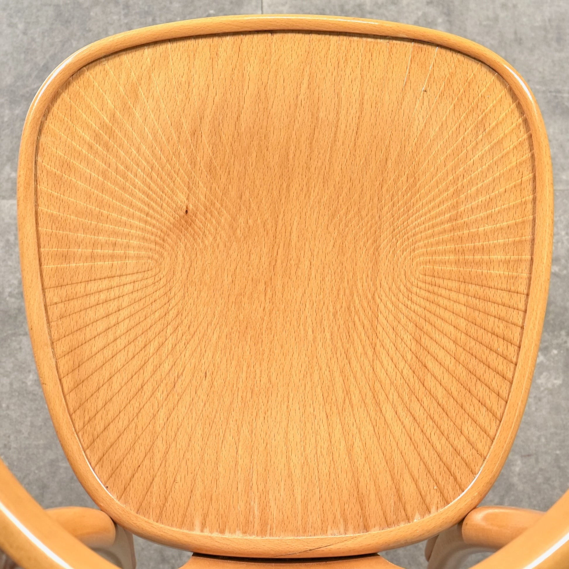 背もたれから座面、脚部に至るまで美しく湾曲したデザインやビーチ材の明るいトーンが相まって、どんなインテリアにも違和感なくマッチしてくれそうな佇まいです。