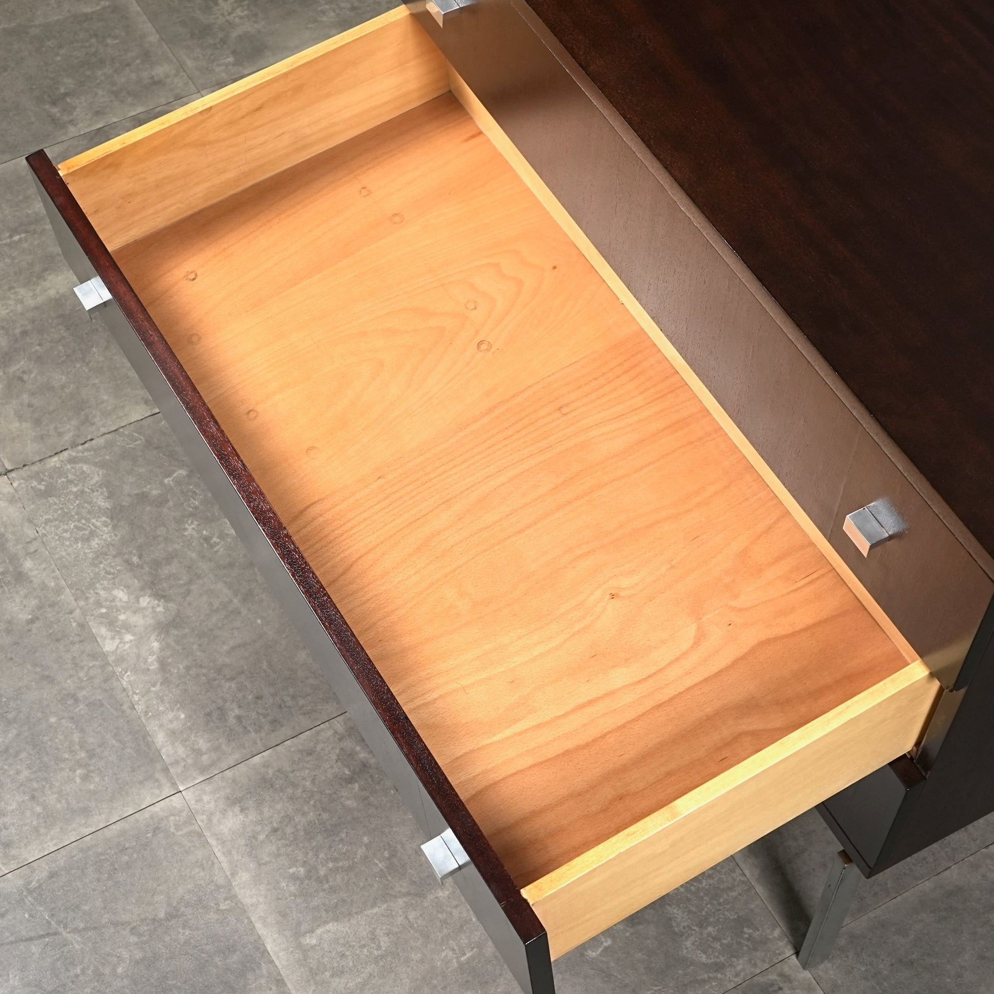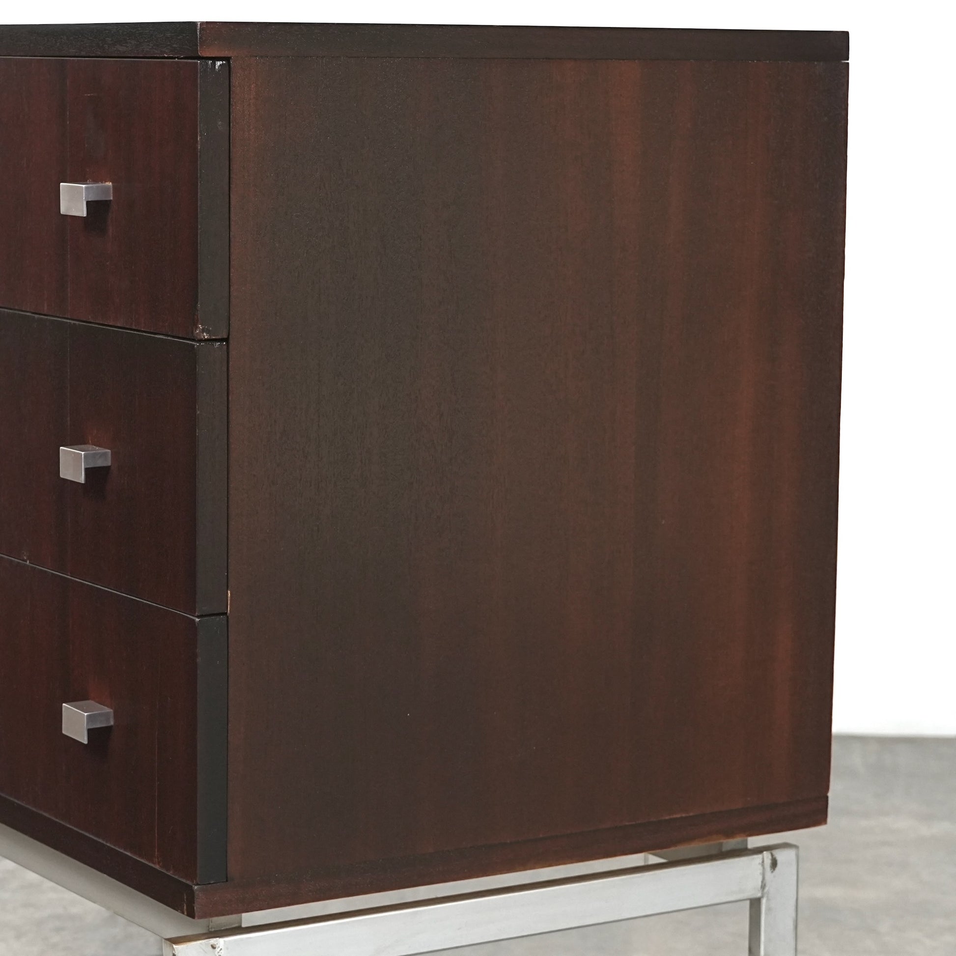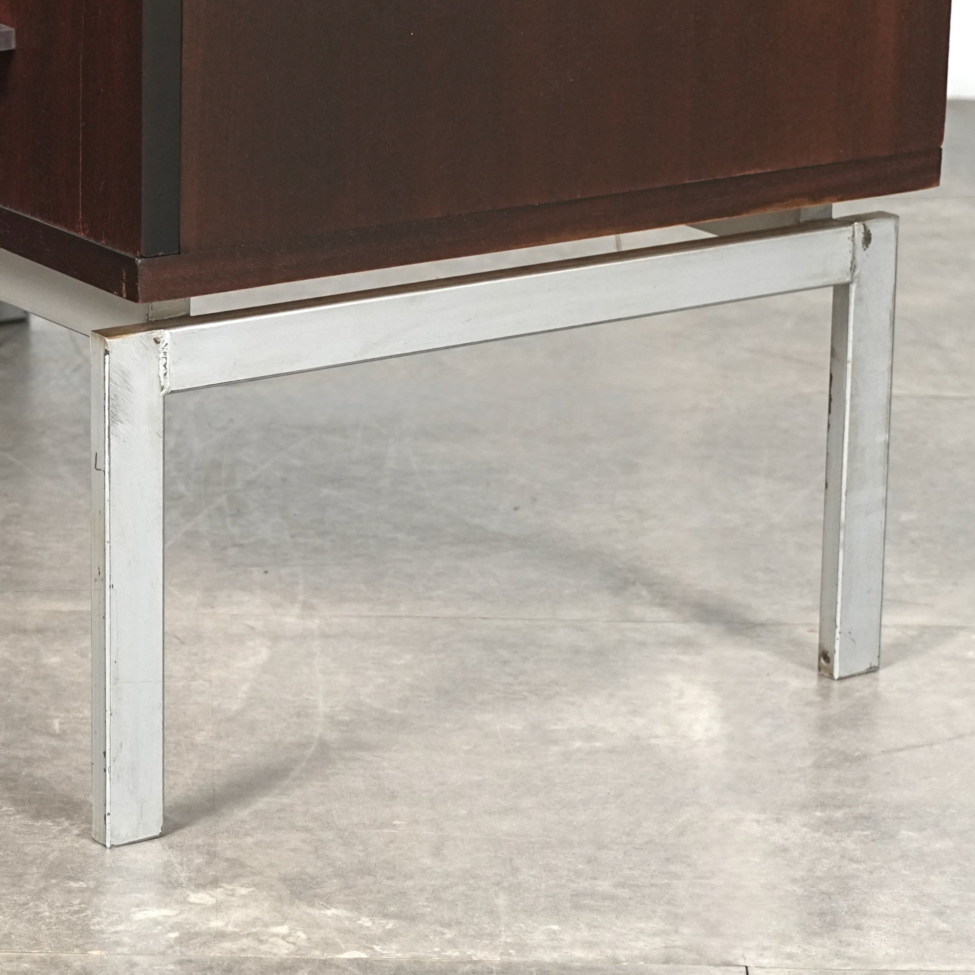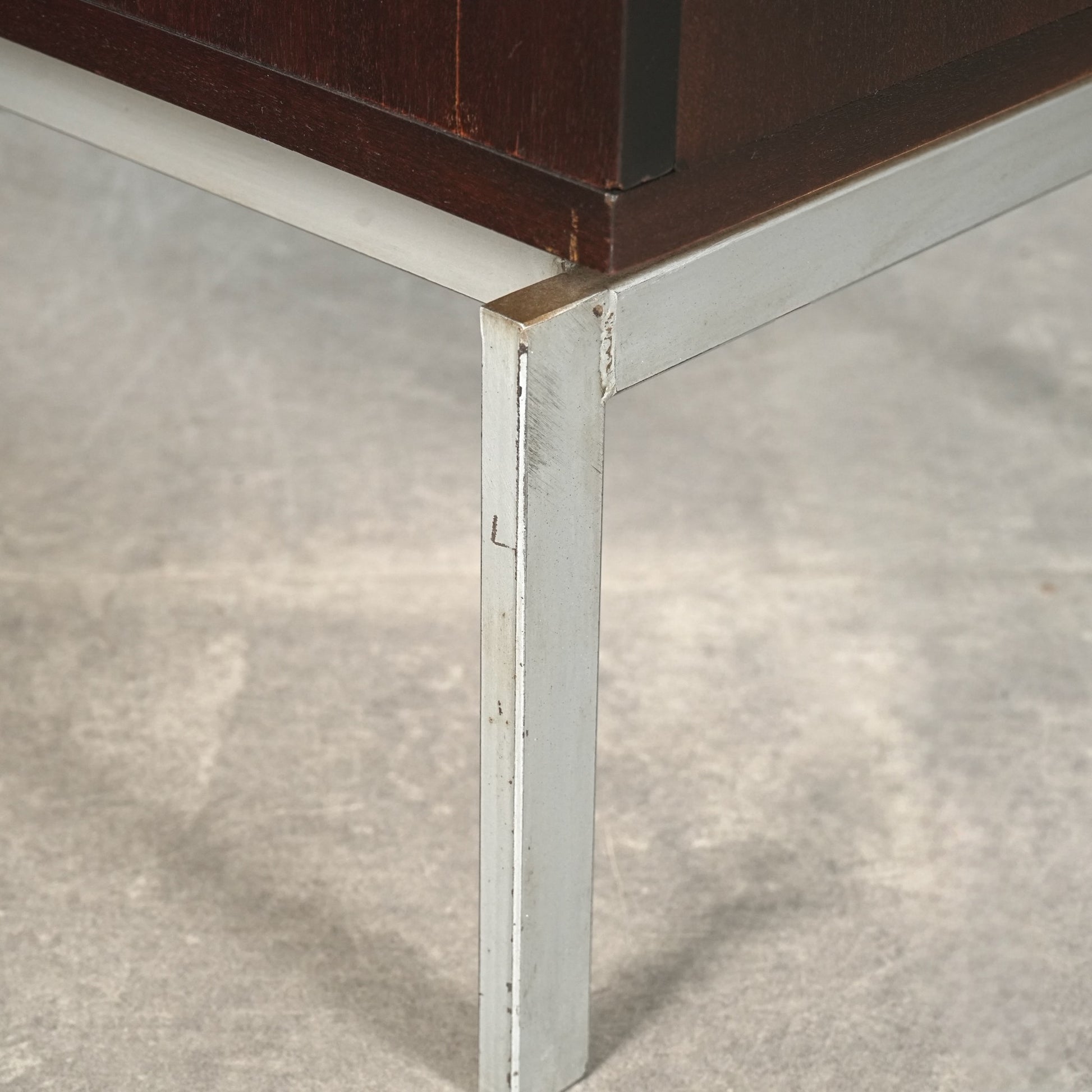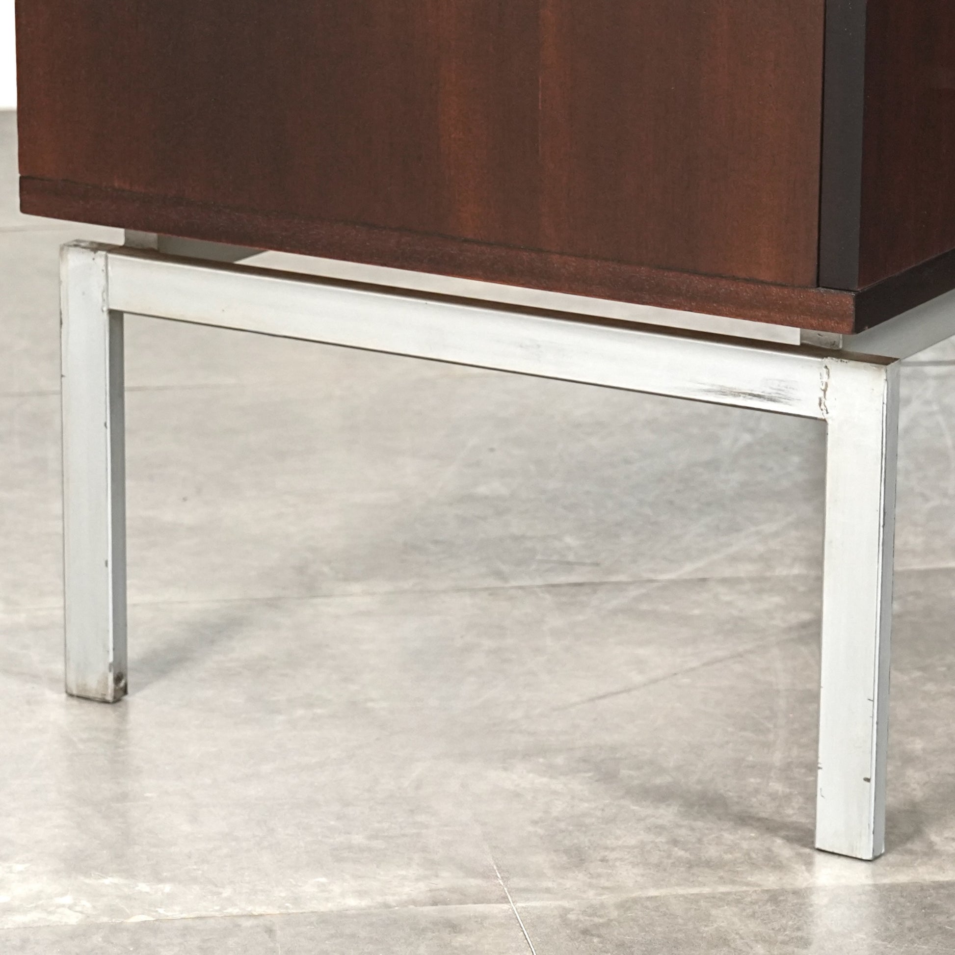 良質なマホガニーの深みのあるトーンが空間に落ち着きをもたらし、メタルレッグとの組み合わせによって非常に軽やかでモダンな佇まい。