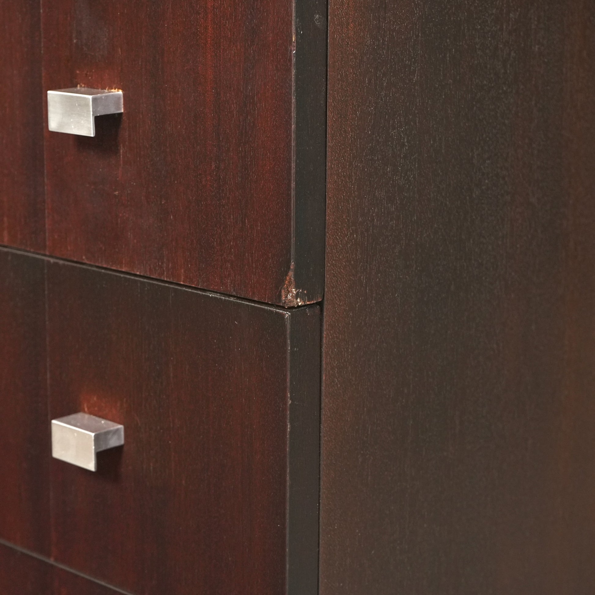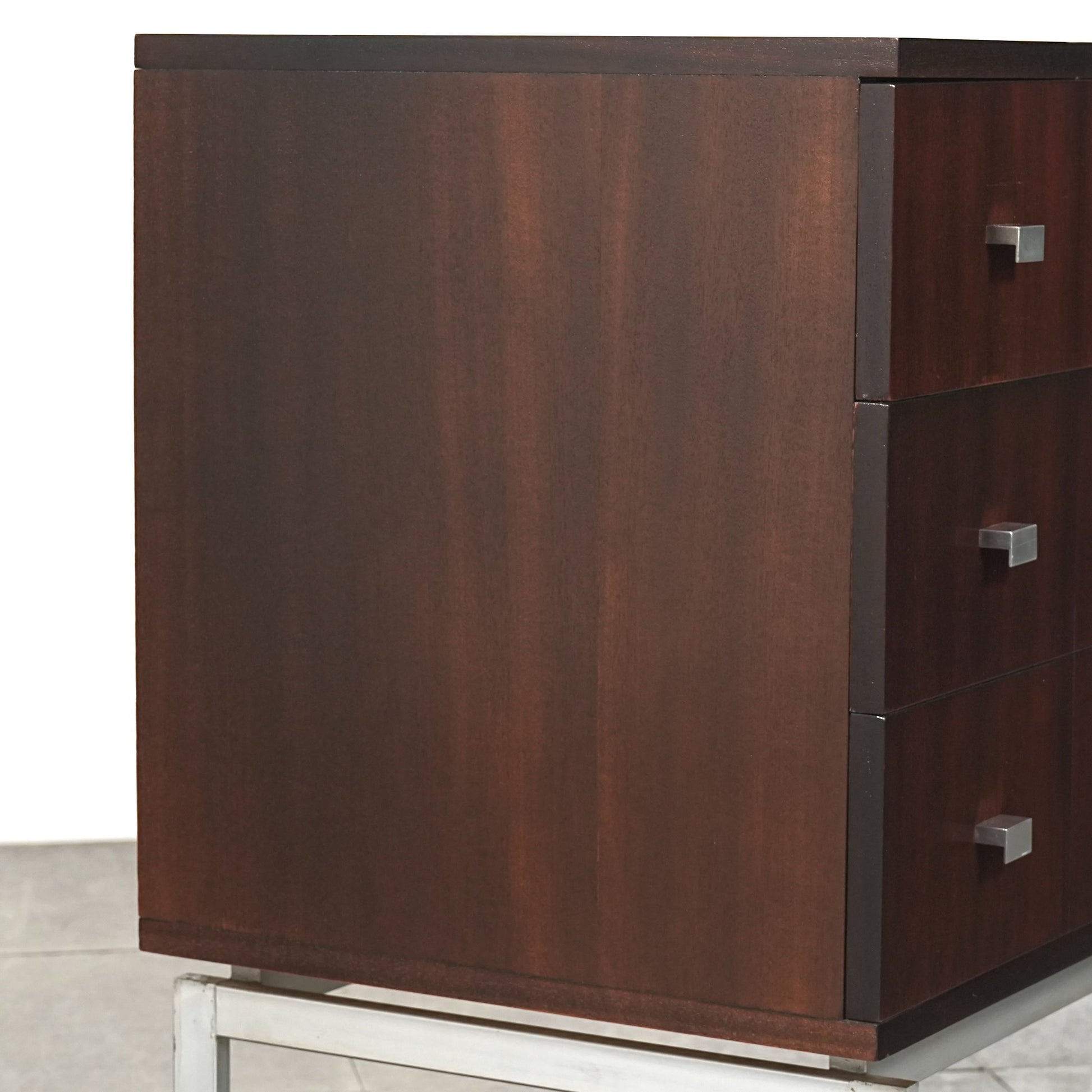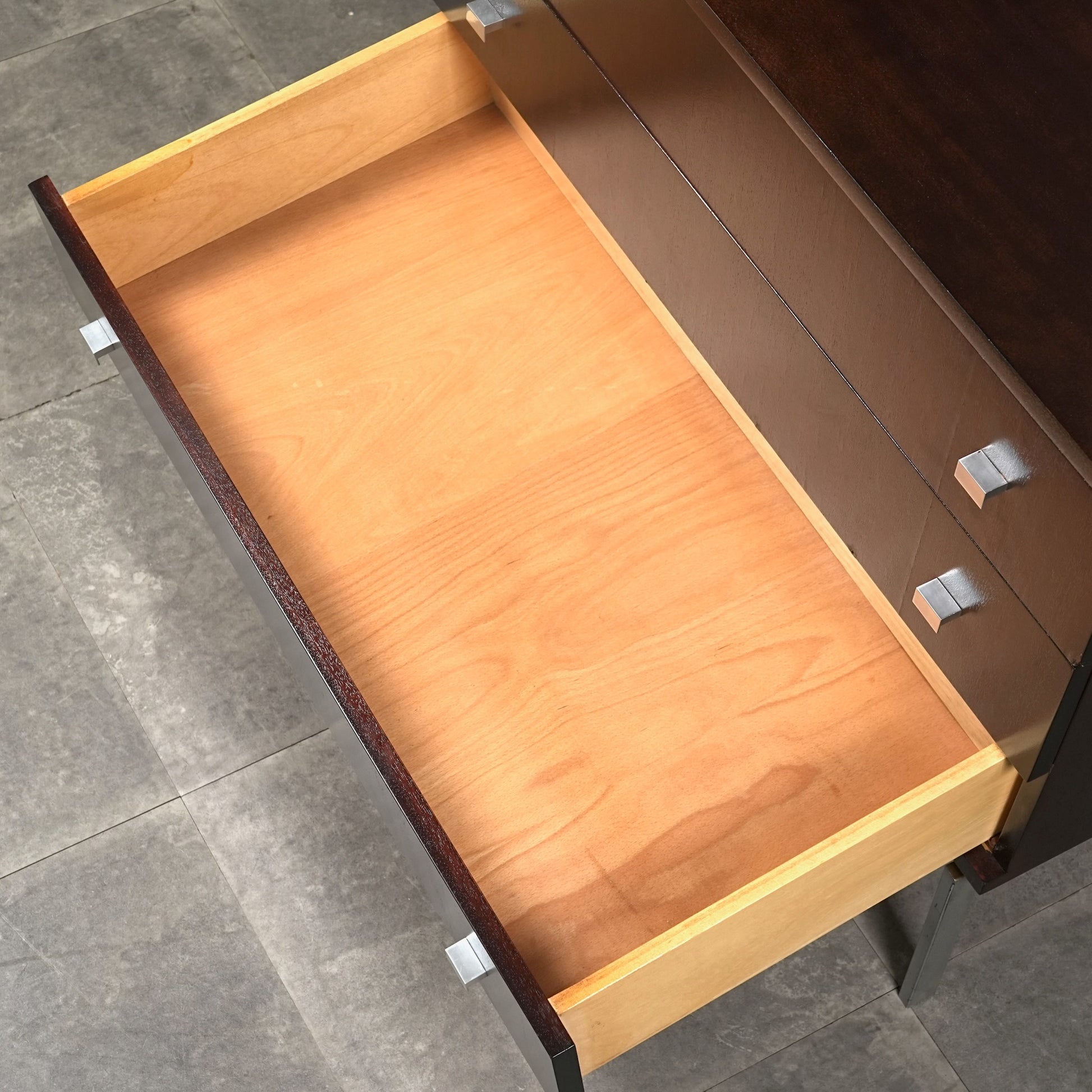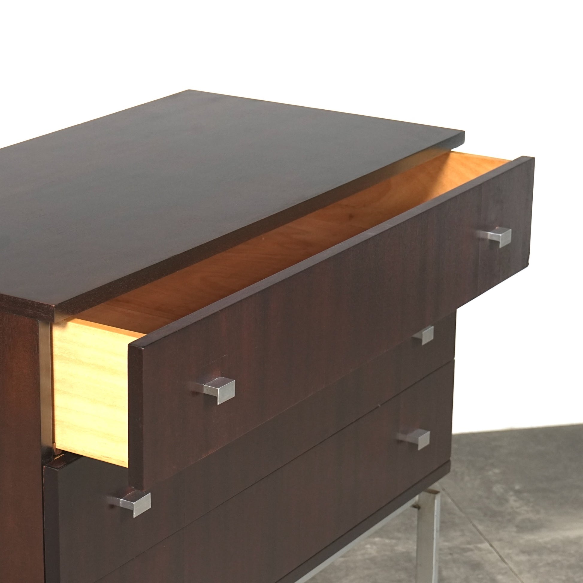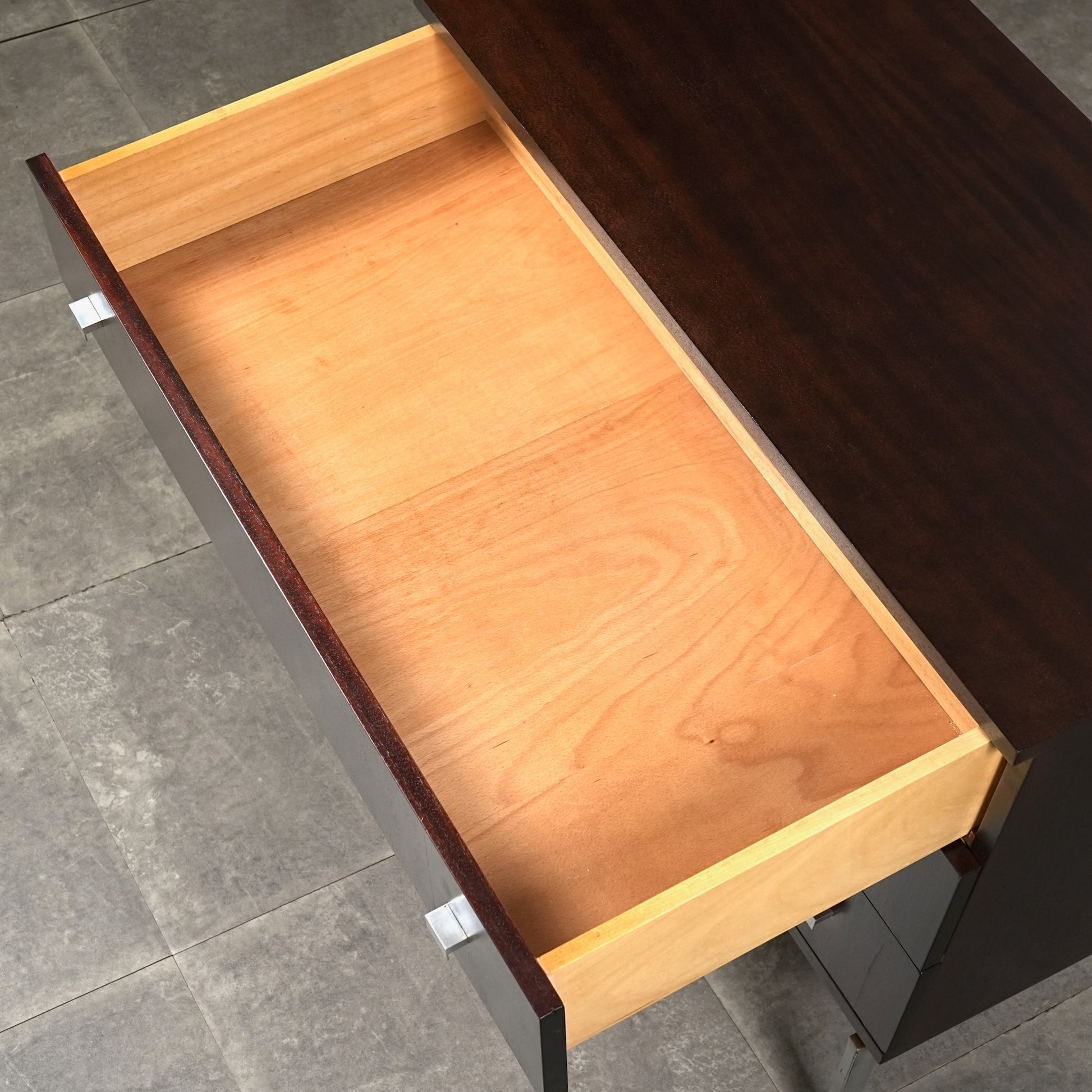 良質なマホガニーの深みのあるトーンが空間に落ち着きをもたらし、メタルレッグとの組み合わせによって非常に軽やかでモダンな佇まい。
