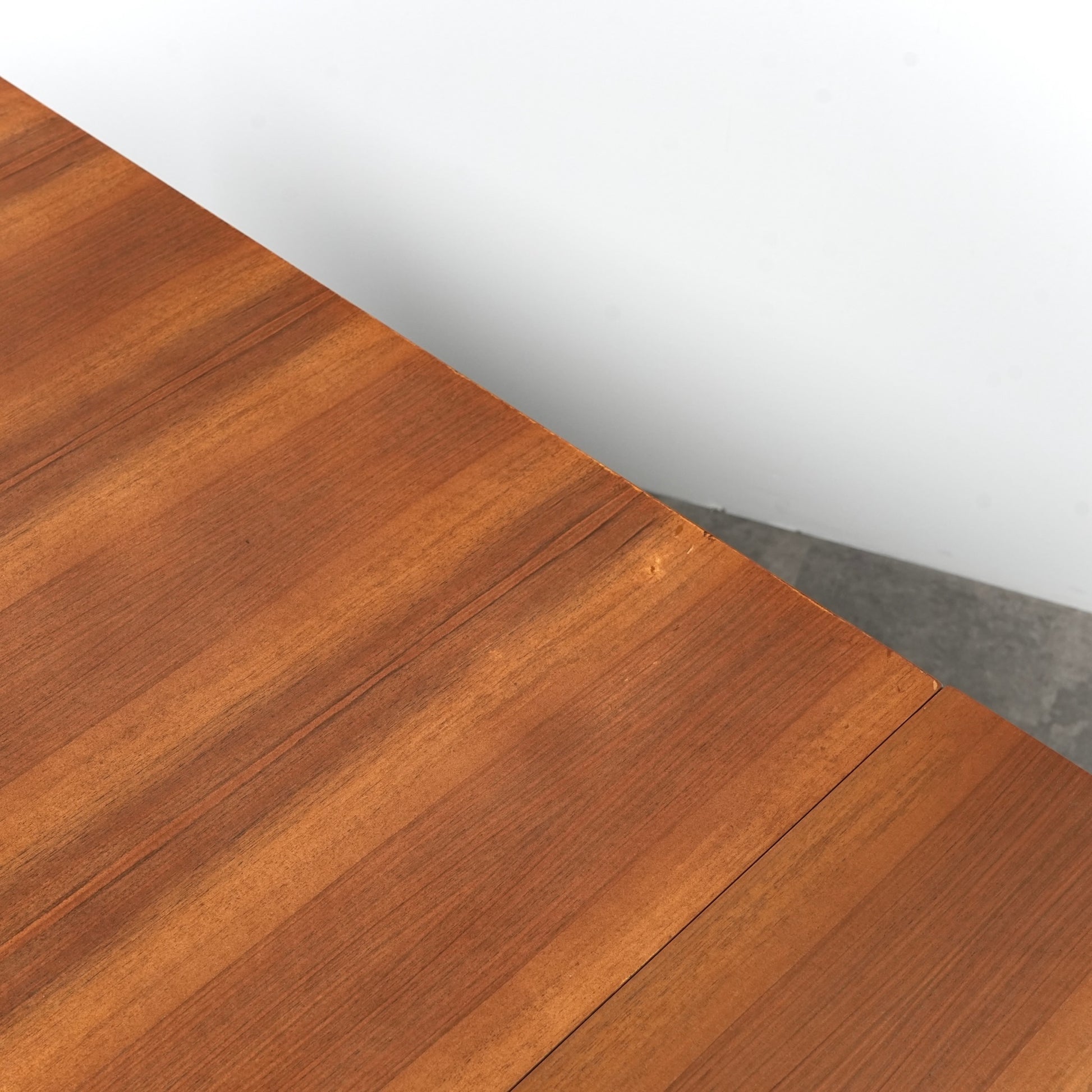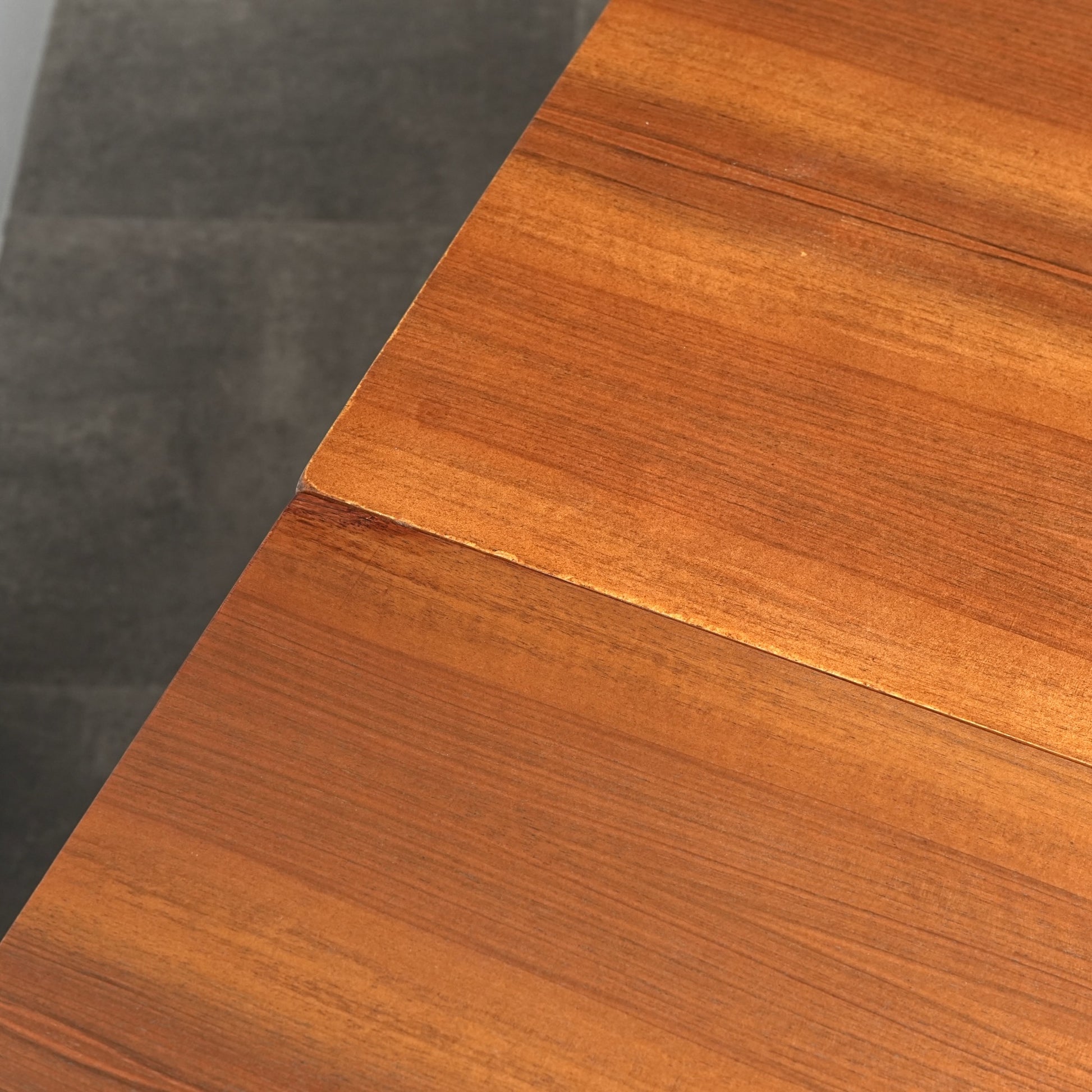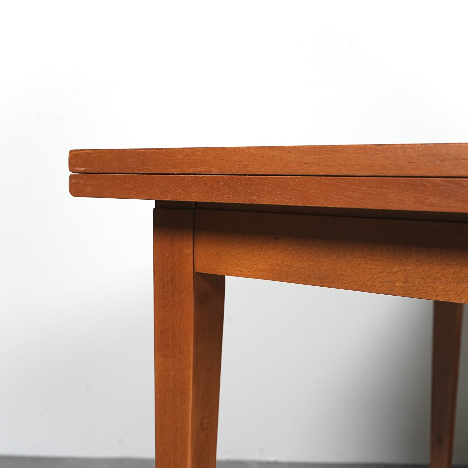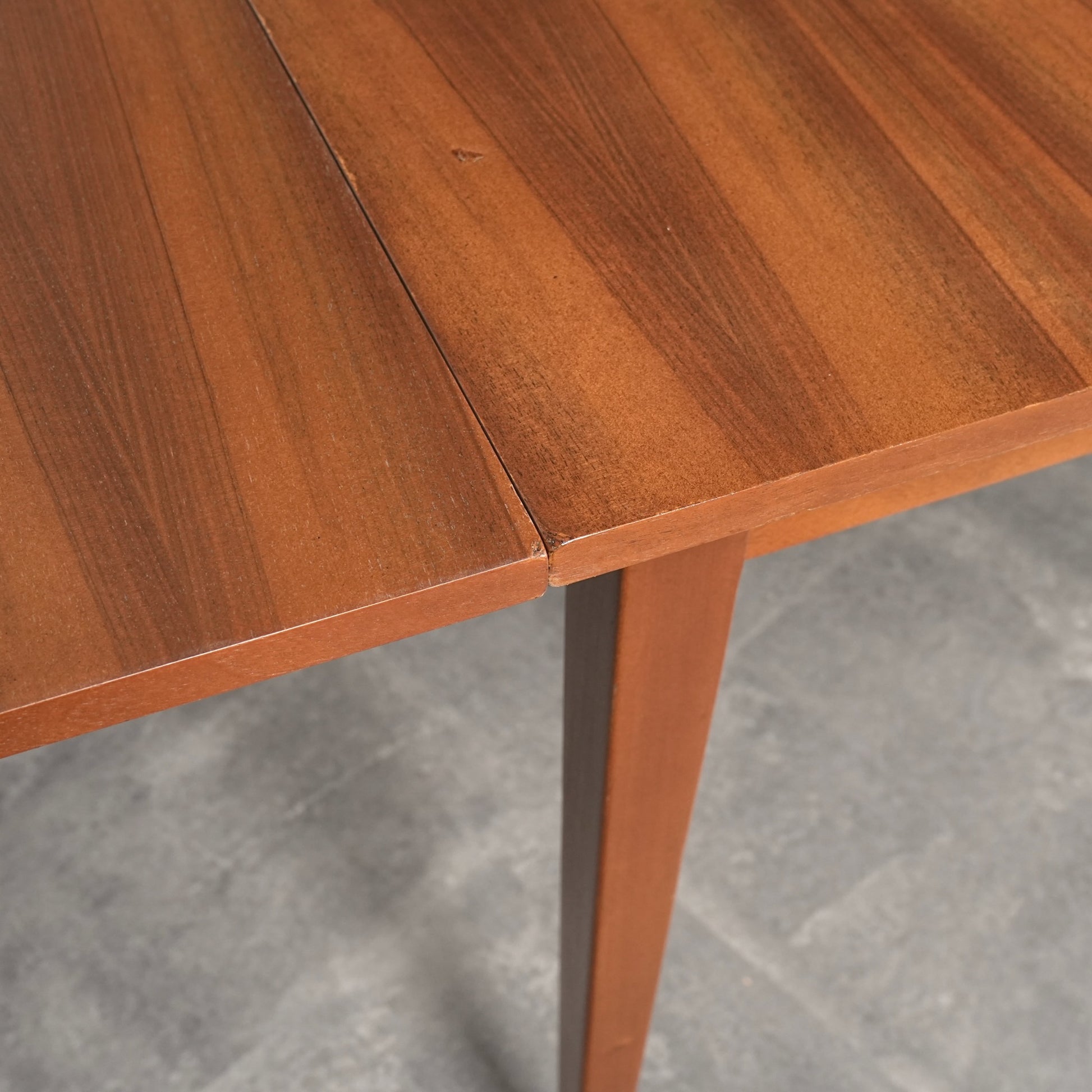 ヴィンテージの定番アイテムとして世界中で愛されるアイテムの1つで、ドローリーフとは天板を拡張する際に軽く持ち上げて下の拡張板を引き出すと上の天板が沈みフラットになる仕組みのこと。