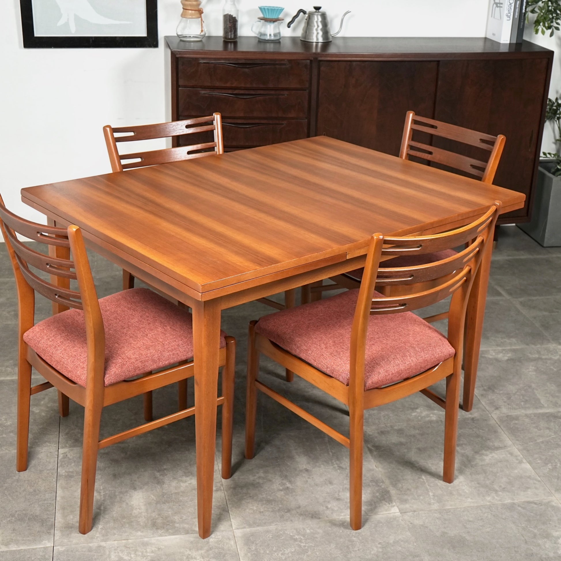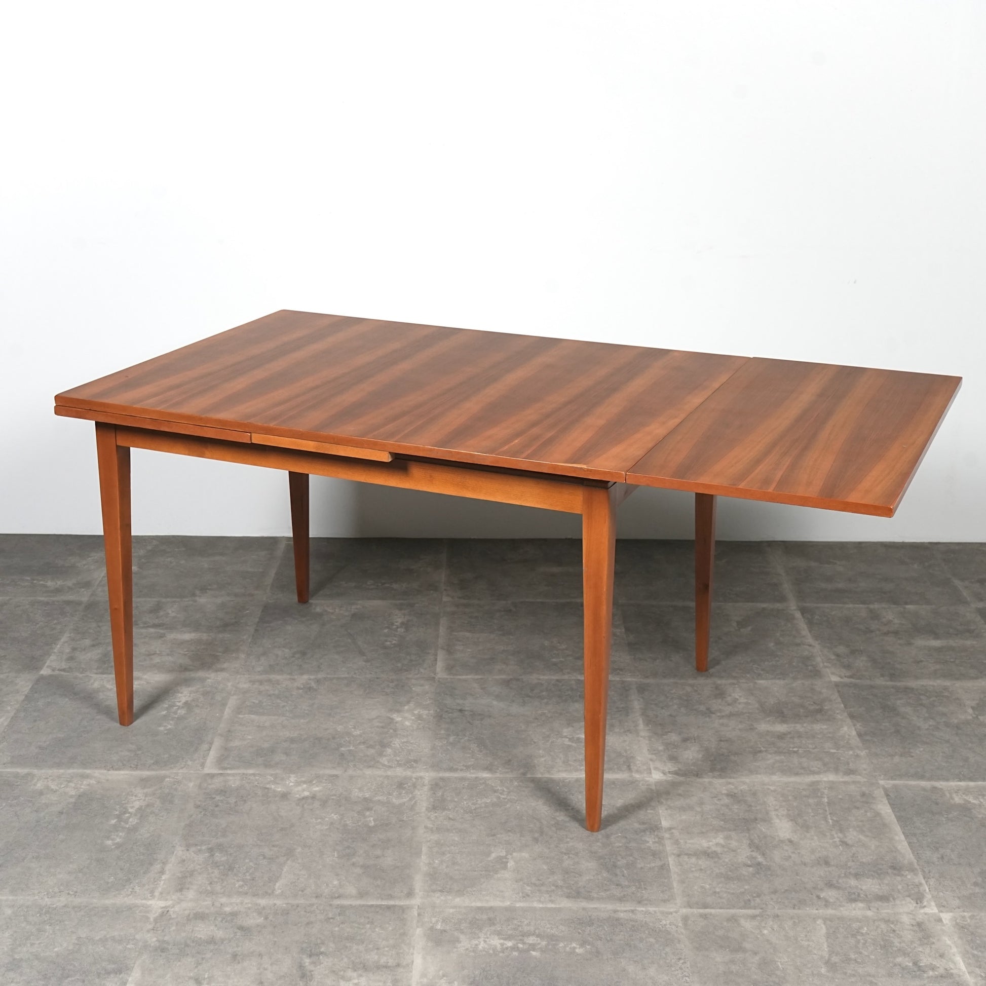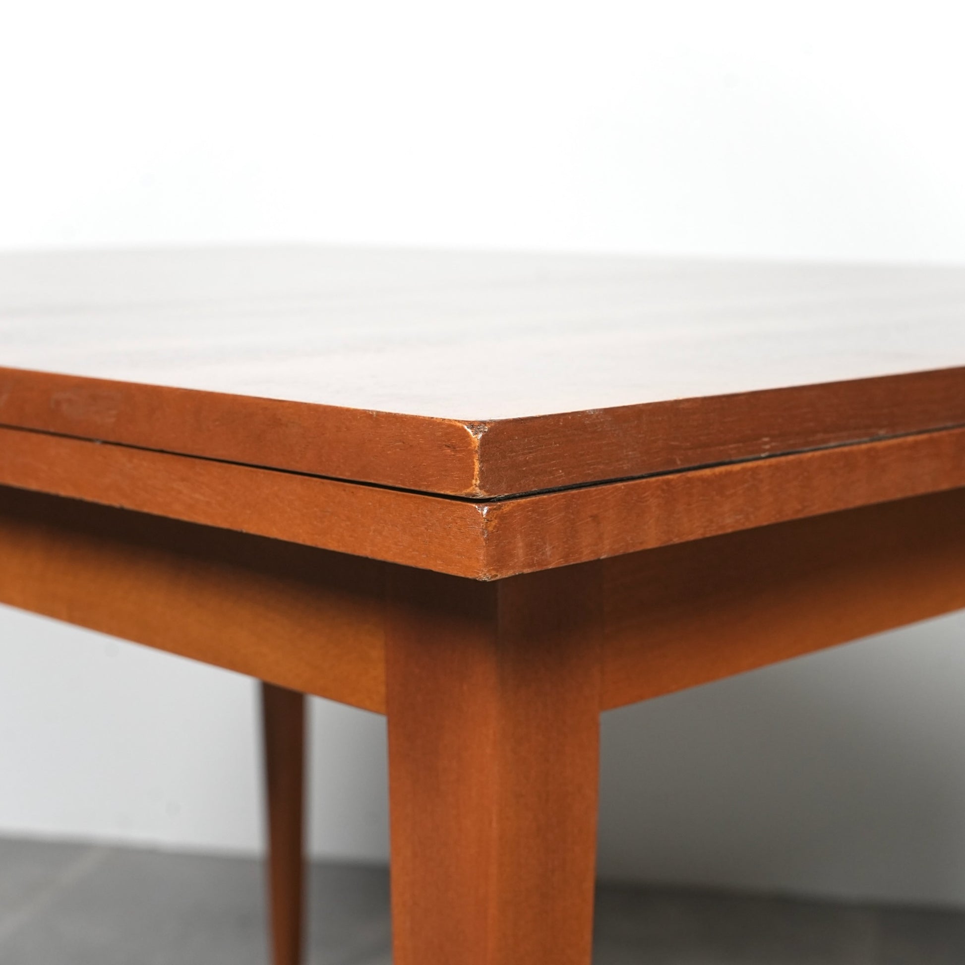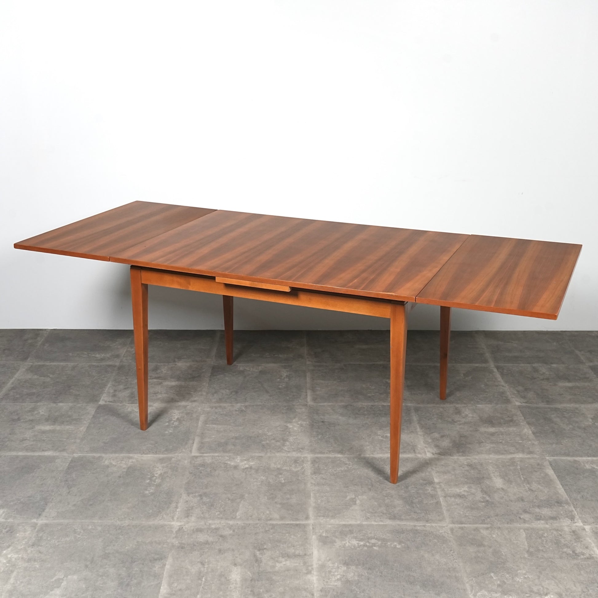 ヴィンテージの定番アイテムとして世界中で愛されるアイテムの1つで、ドローリーフとは天板を拡張する際に軽く持ち上げて下の拡張板を引き出すと上の天板が沈みフラットになる仕組みのこと。