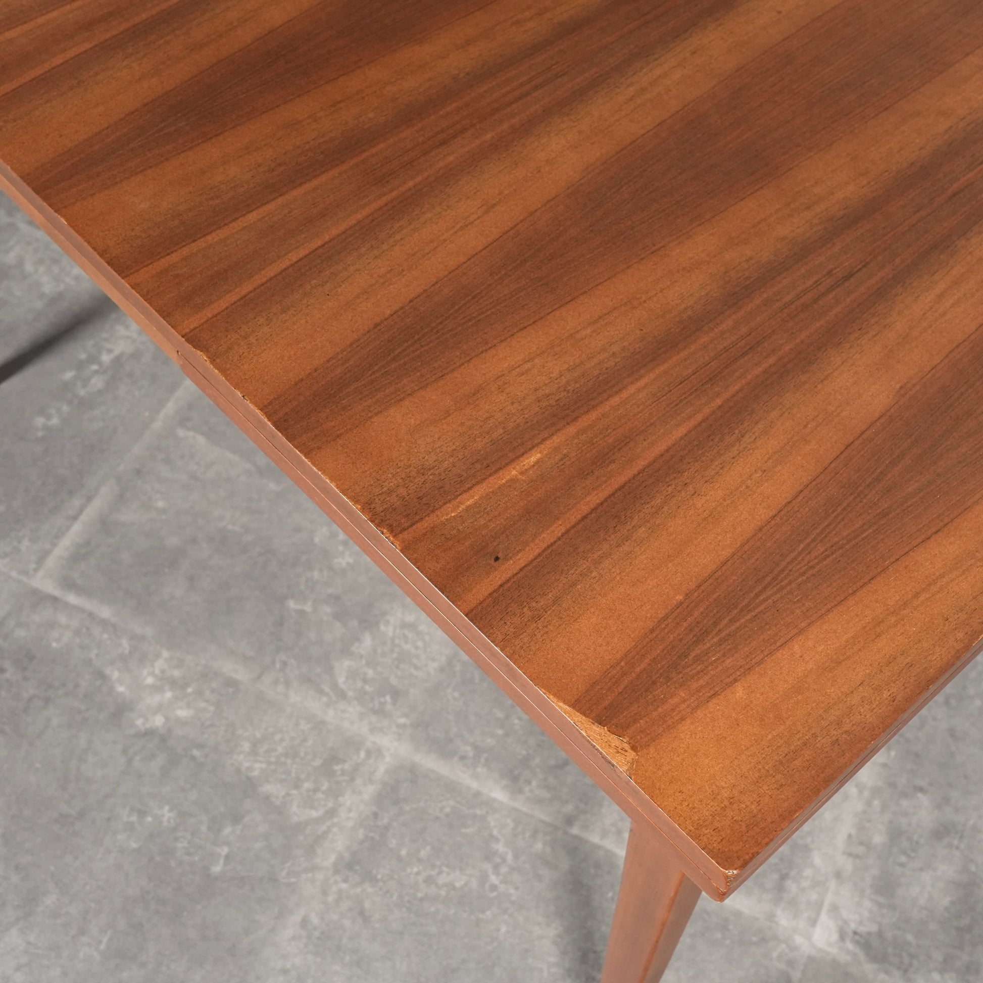 構造面のレストアに加えて、TIME HYPEでは天板だけでなく脚部までしっかりと再塗装を実施しておりますが、こちらは天板にヴィンテージ特有の劣化と補修跡があるため、通常価格よりも大幅にお買い求めやすくなっています。