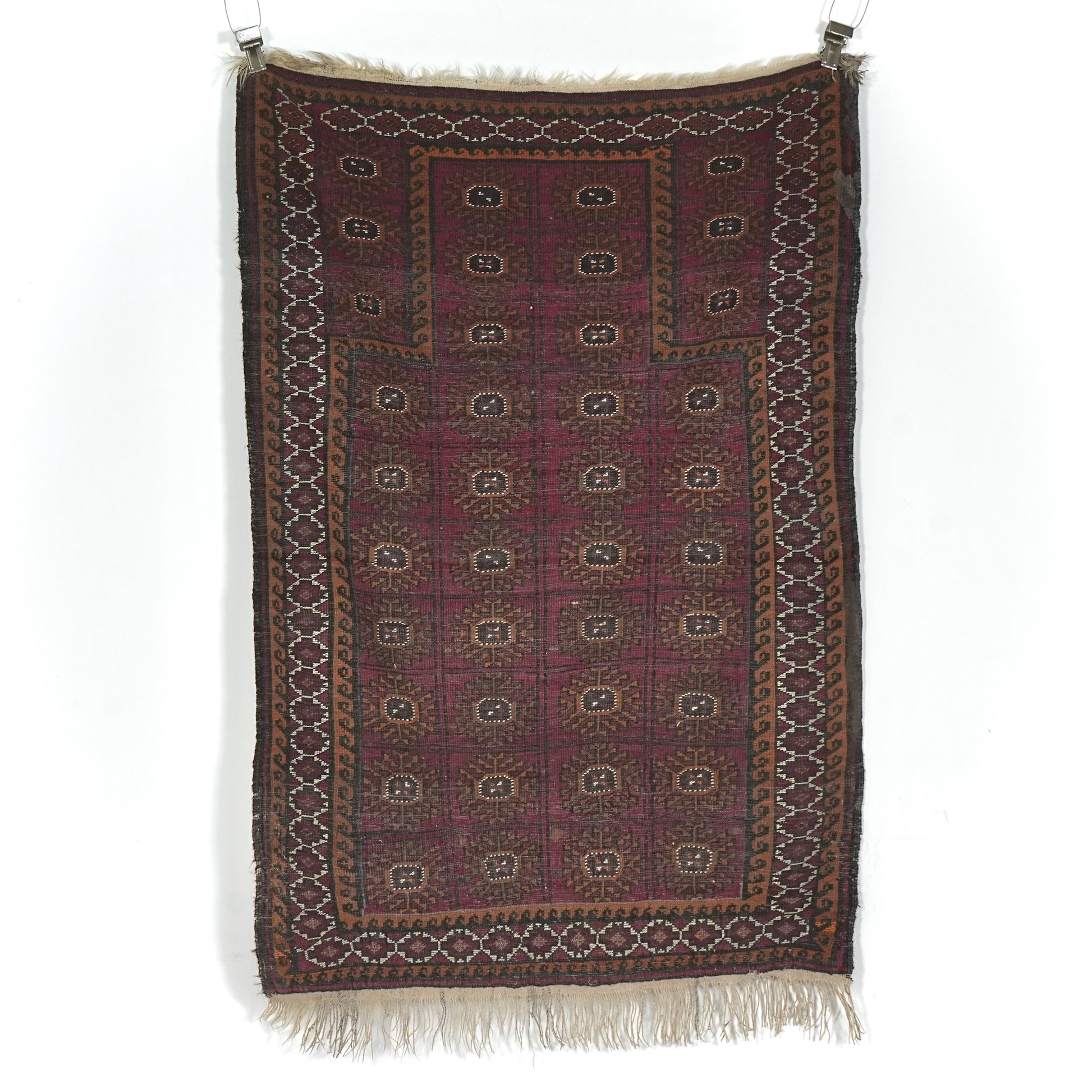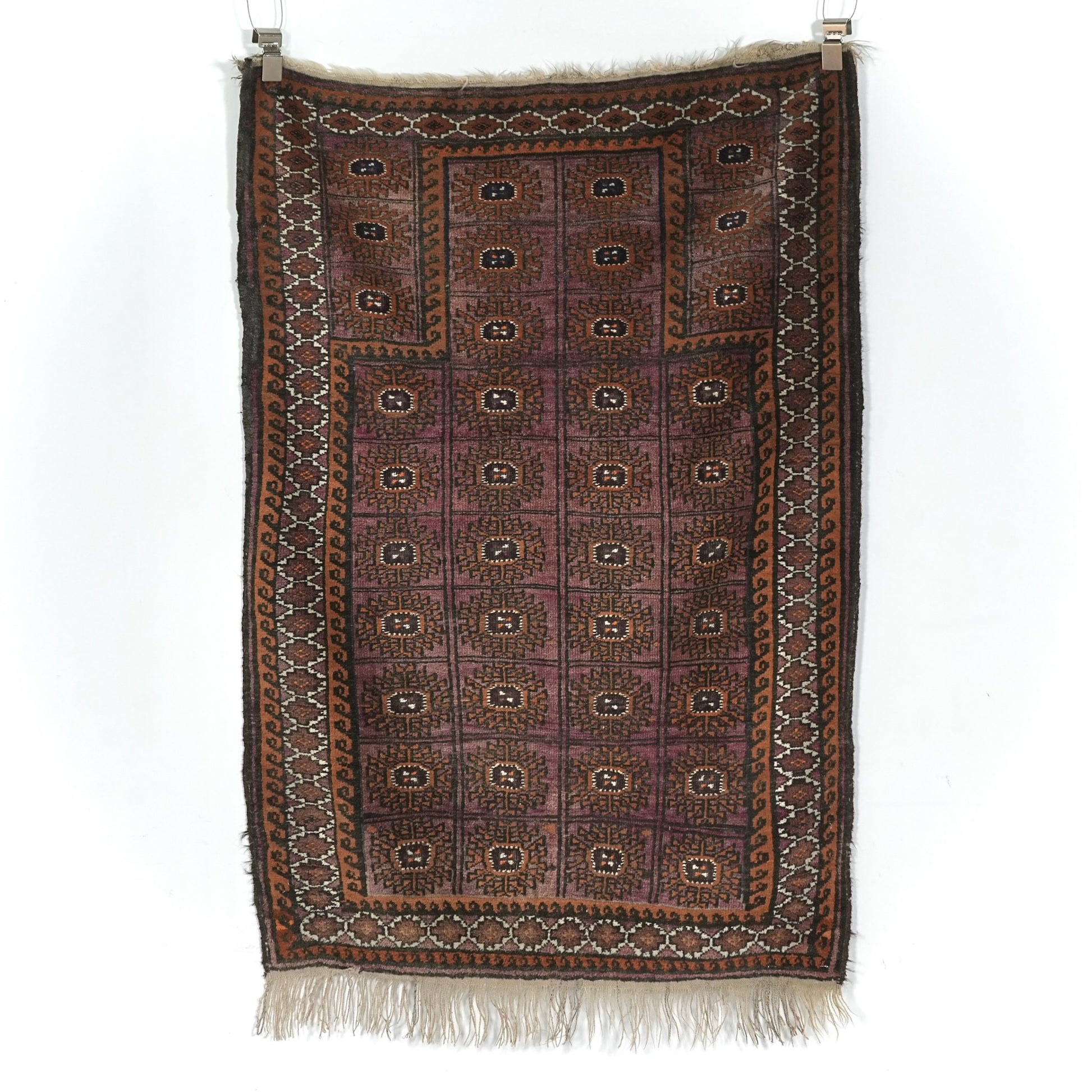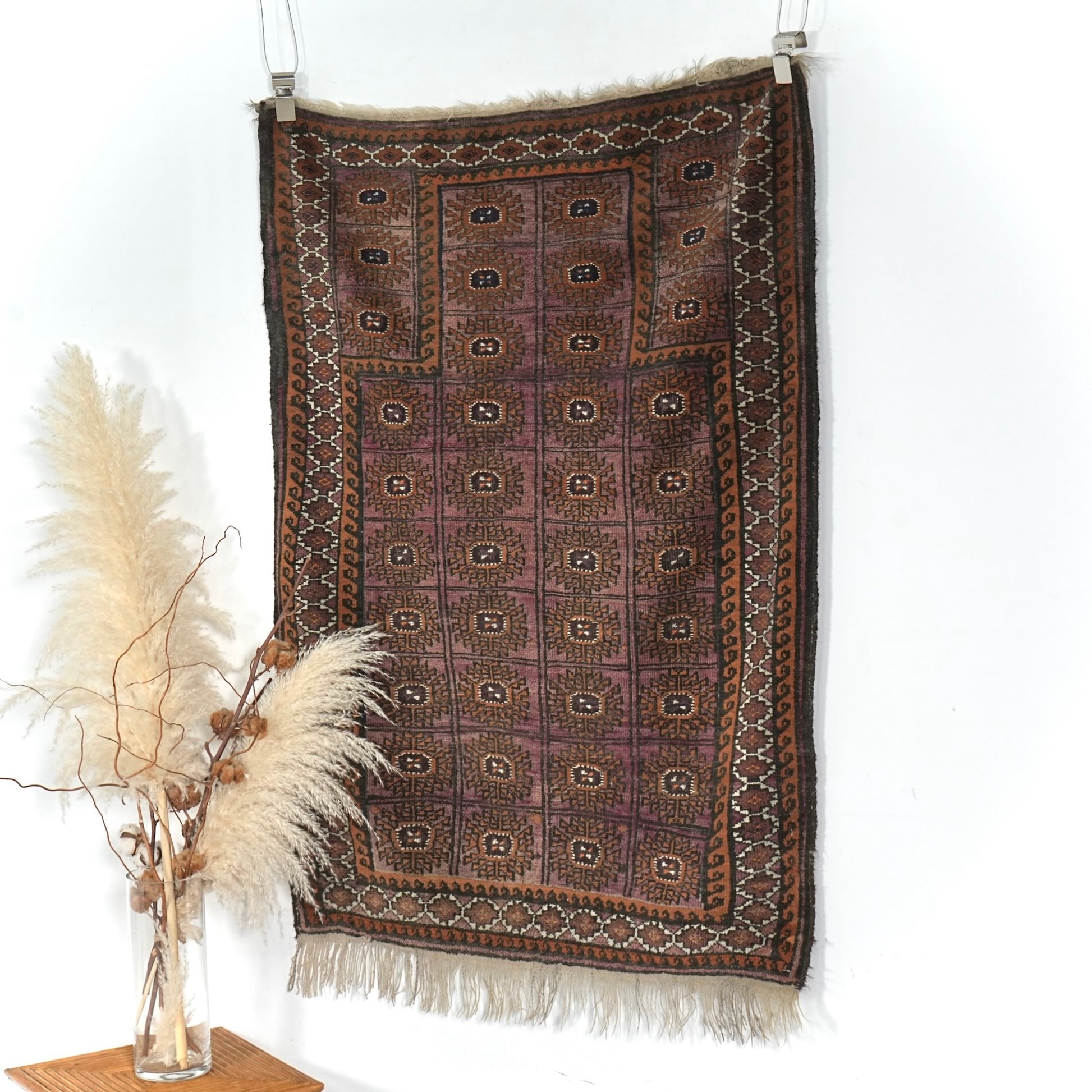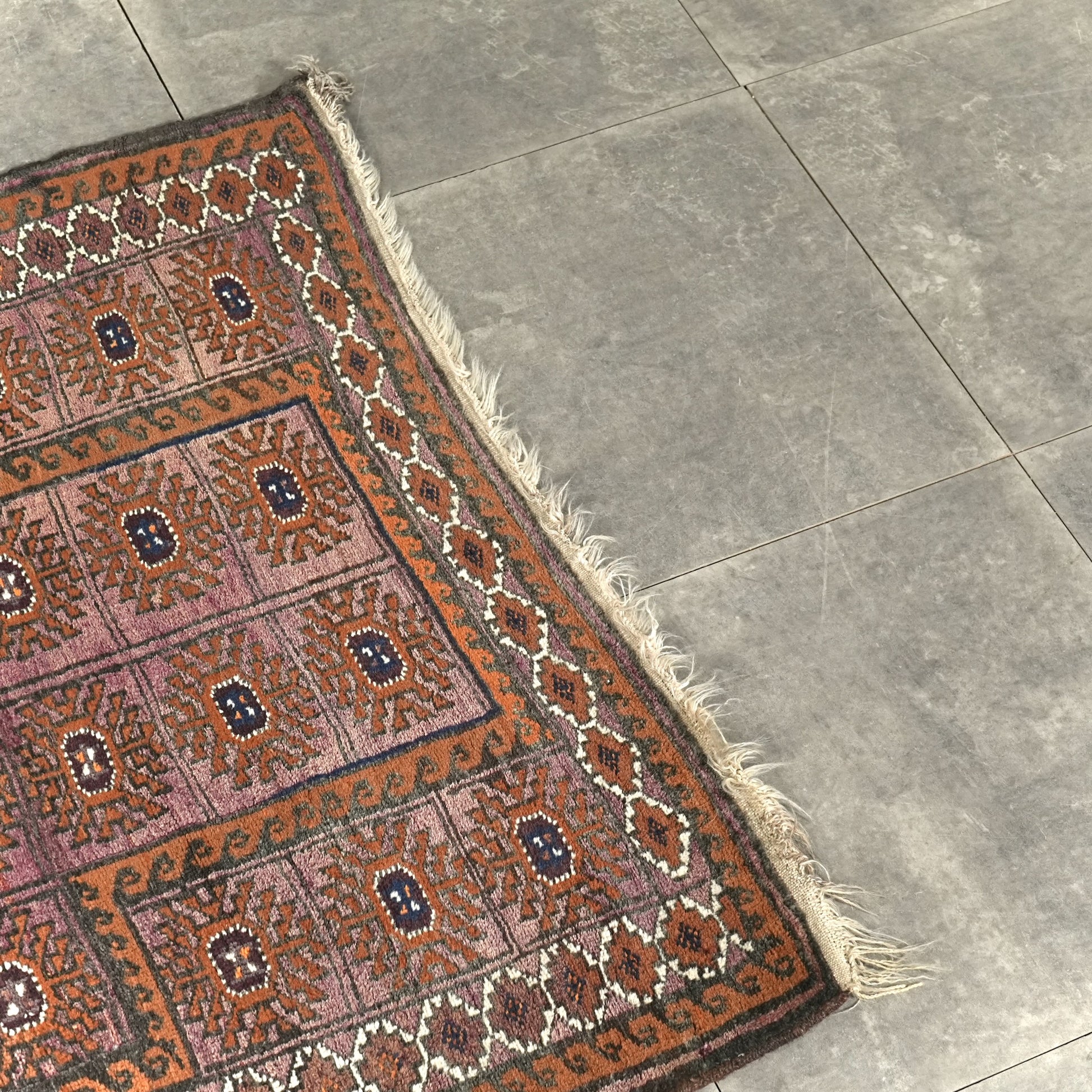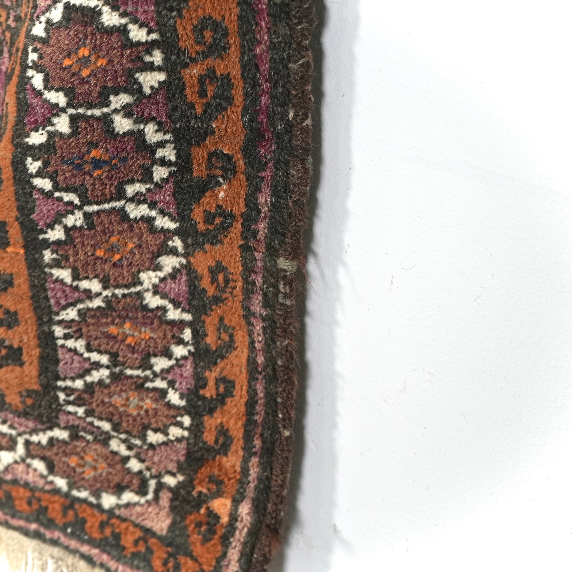 長年に渡って実用されてきたラグとなりますため、経年による色むらやほつれ、擦れや歪みなどの風合いがございますが、それもヴィンテージラグの魅力としてお楽しみください。