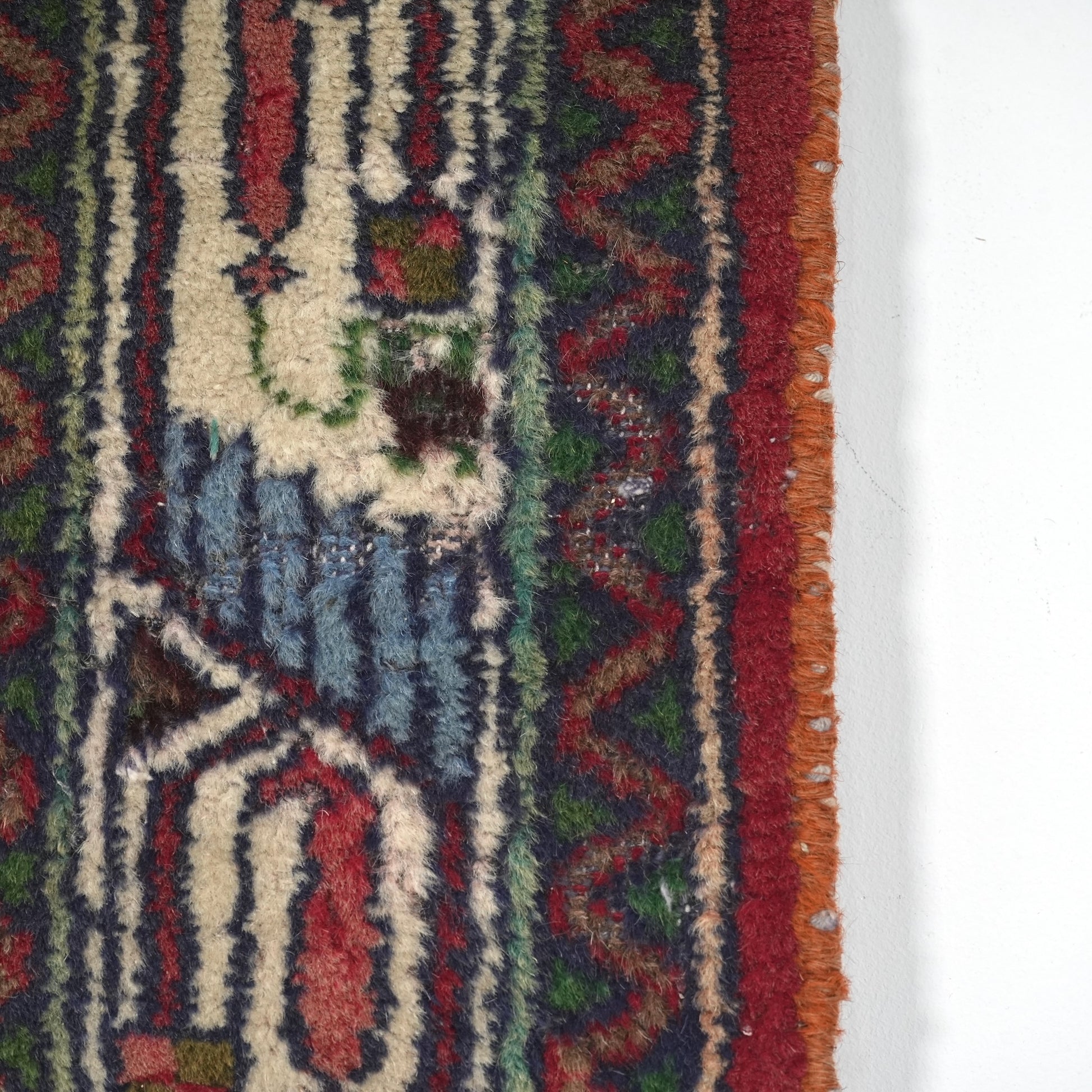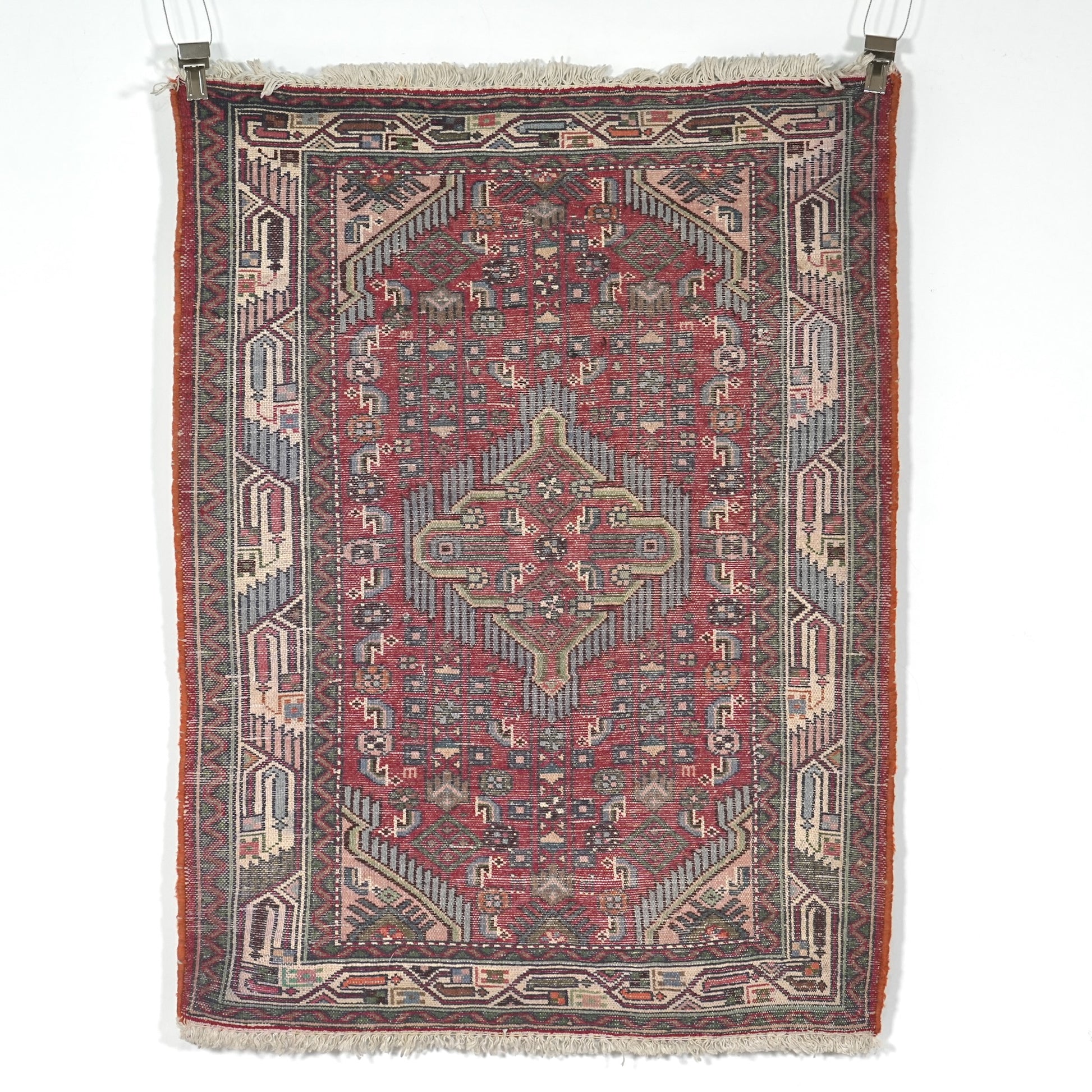 長年に渡って実用されてきたラグとなりますため、経年による色むらやほつれ、擦れや歪みなどの風合いがございますが、それもヴィンテージラグの魅力としてお楽しみください。