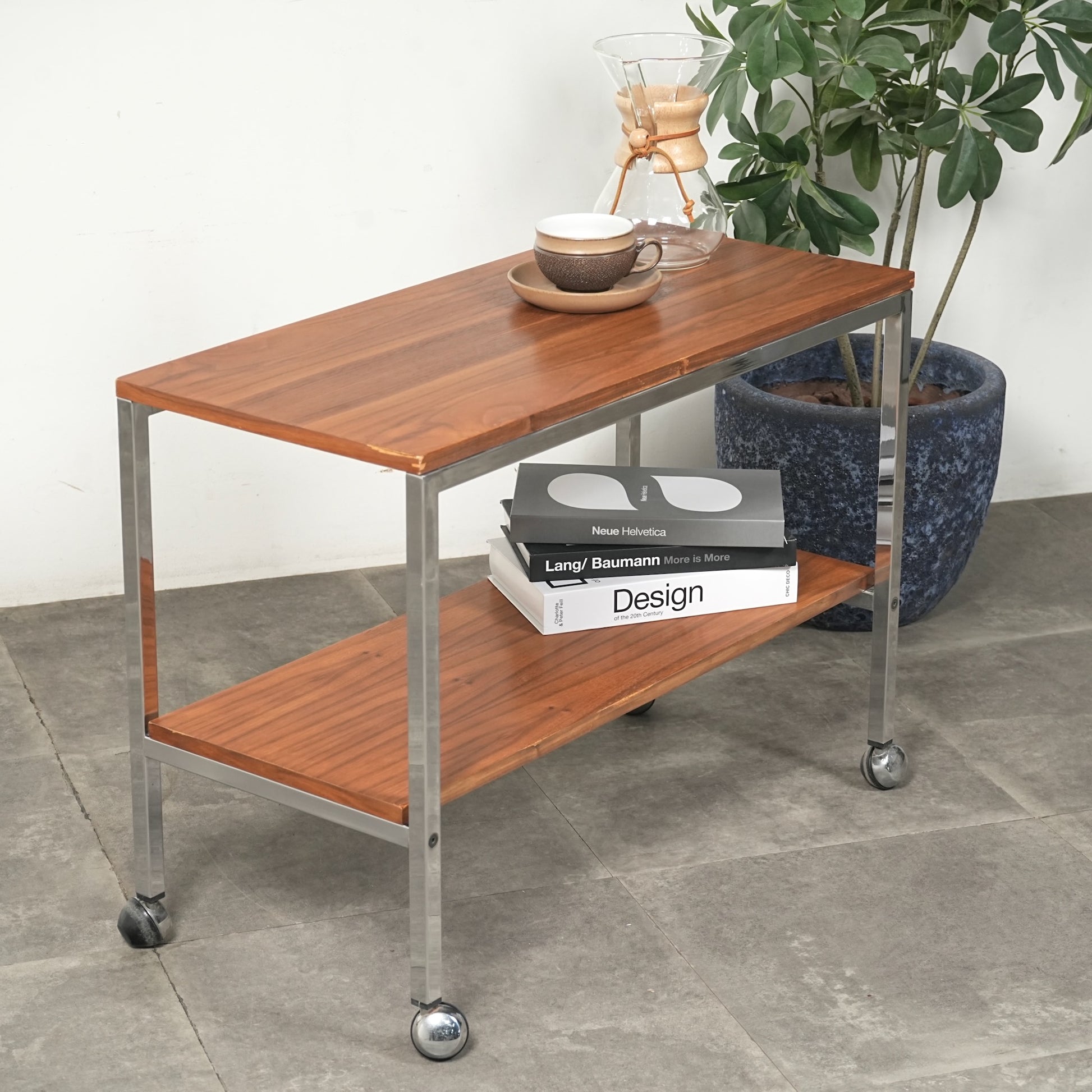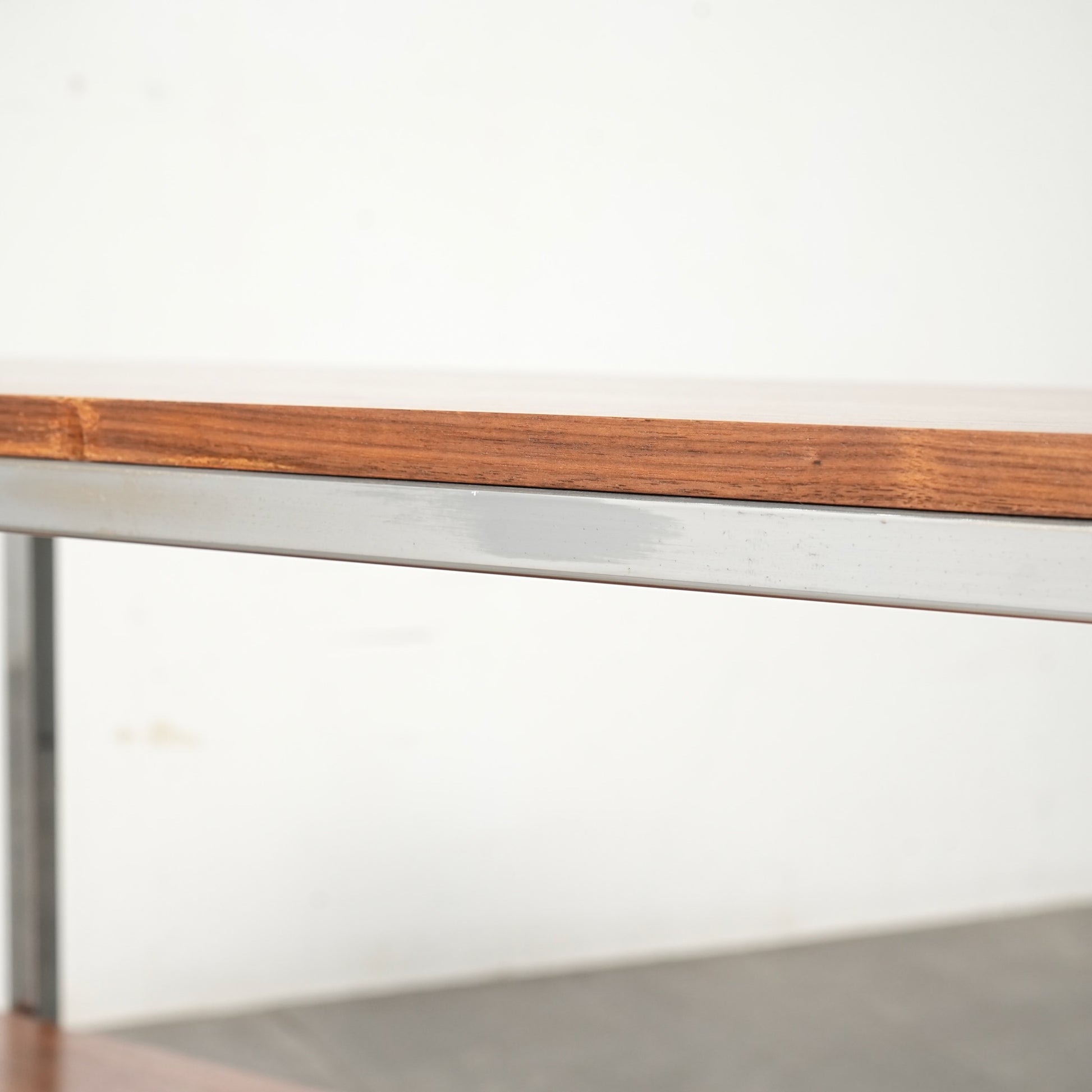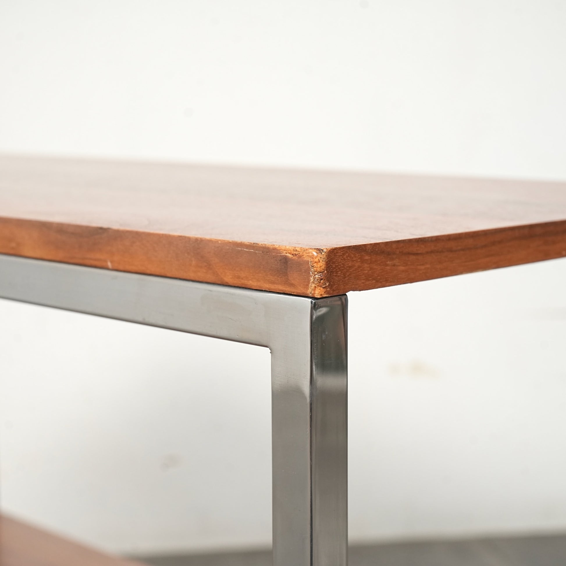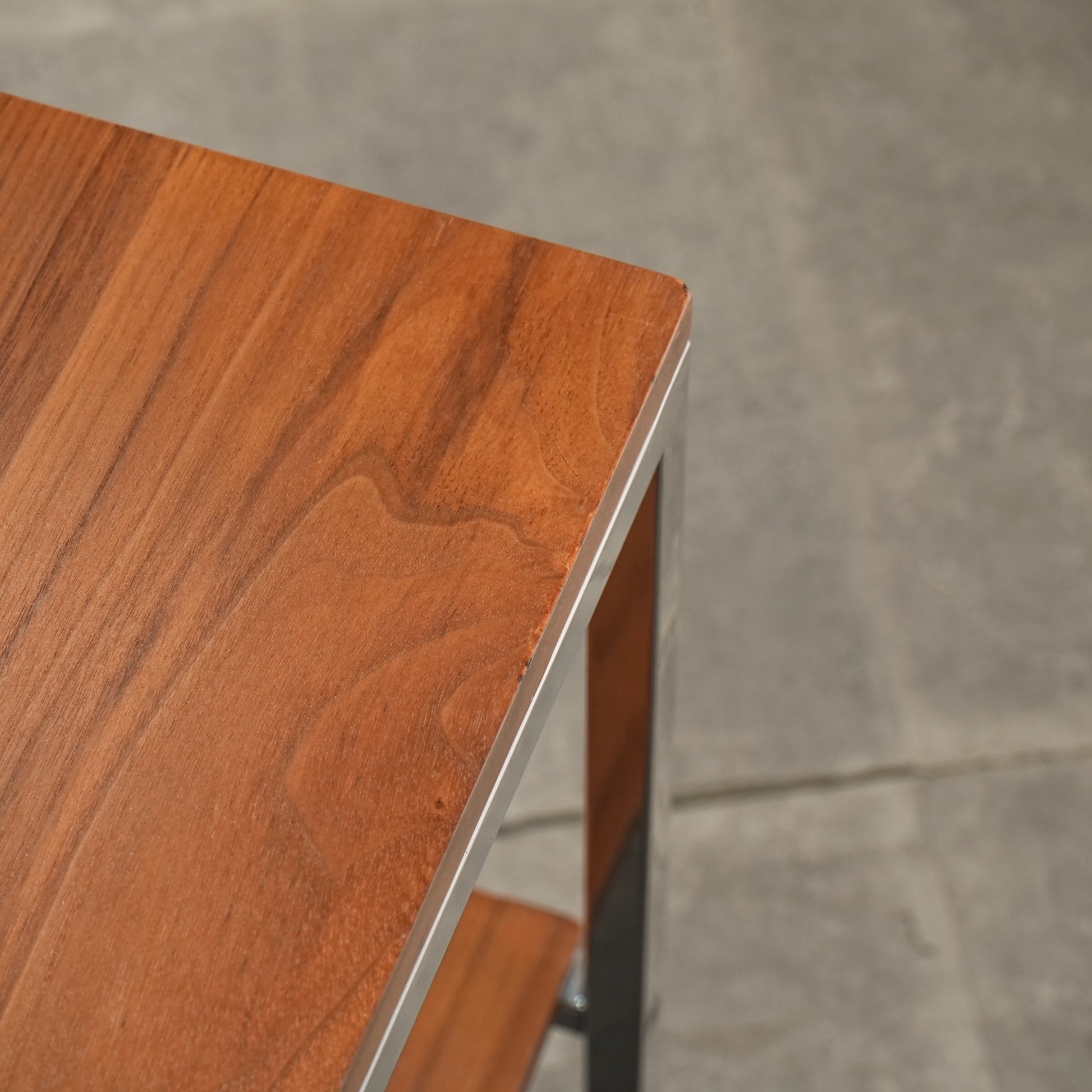 ウォルナットの美しい木目と質感が印象的で、メタルレッグとのコントラストが効いたスタイリッシュなアイテム。