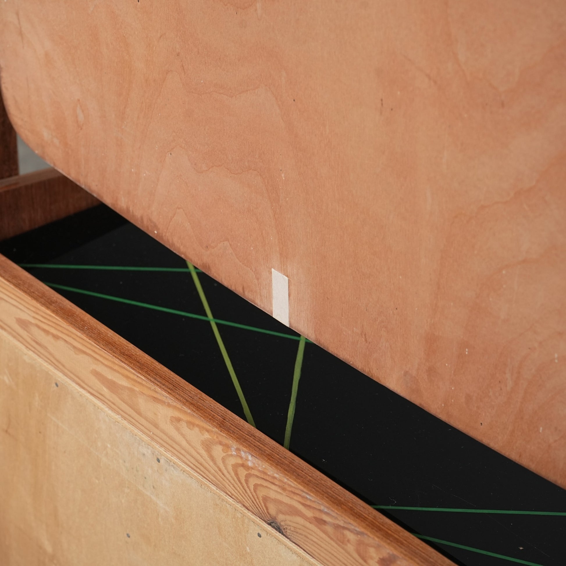 構造面のレストアに加えて、しっかりと再塗装まで実施して磨き上げていますが、こちらはミラーとガラス天板に劣化(傷や酸化など)があるため通常価格よりもお買い求めやすくなっています。
