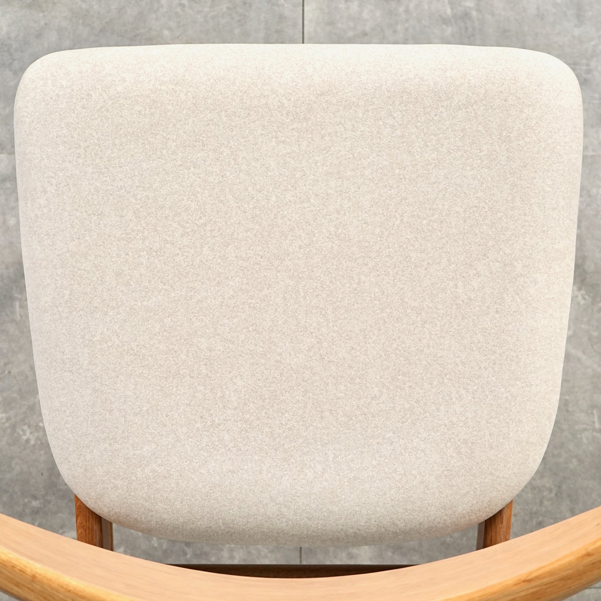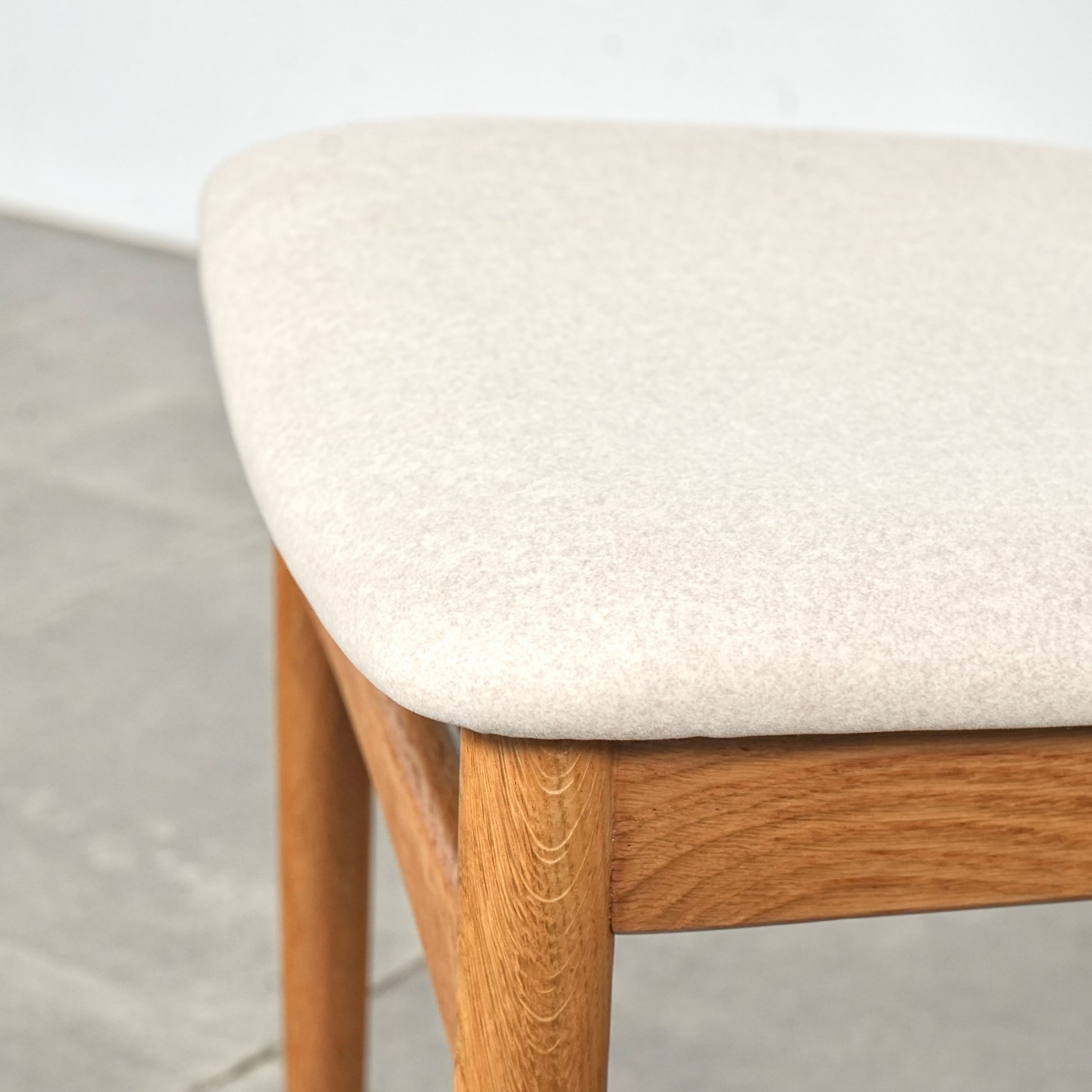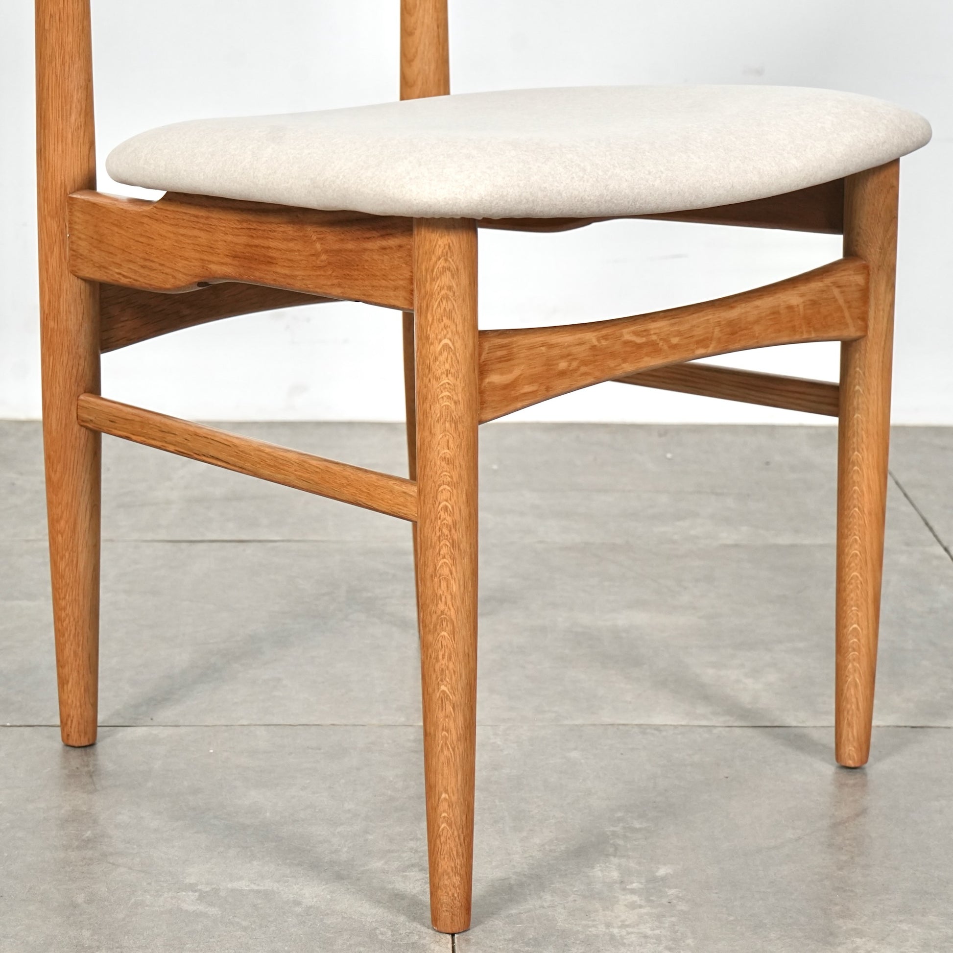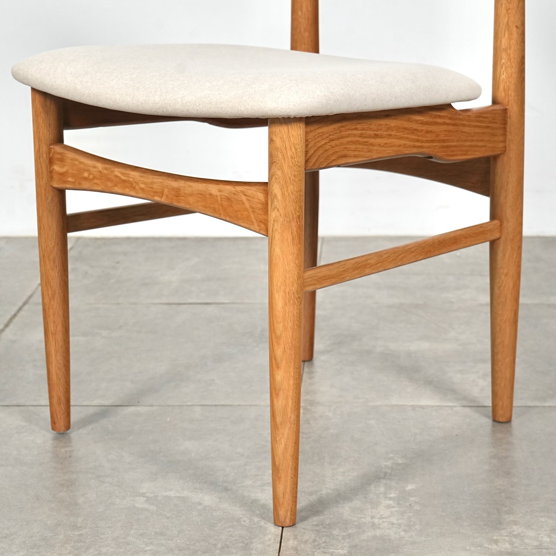 シンプルで無駄のないミニマルな構成ながらも、細部の丁寧な仕上げや美しい接合、そして何より全体のシャープなラインからは、デンマークらしい高いクラフトマンシップと美意識がしっかりと伝わってくる一脚です。
