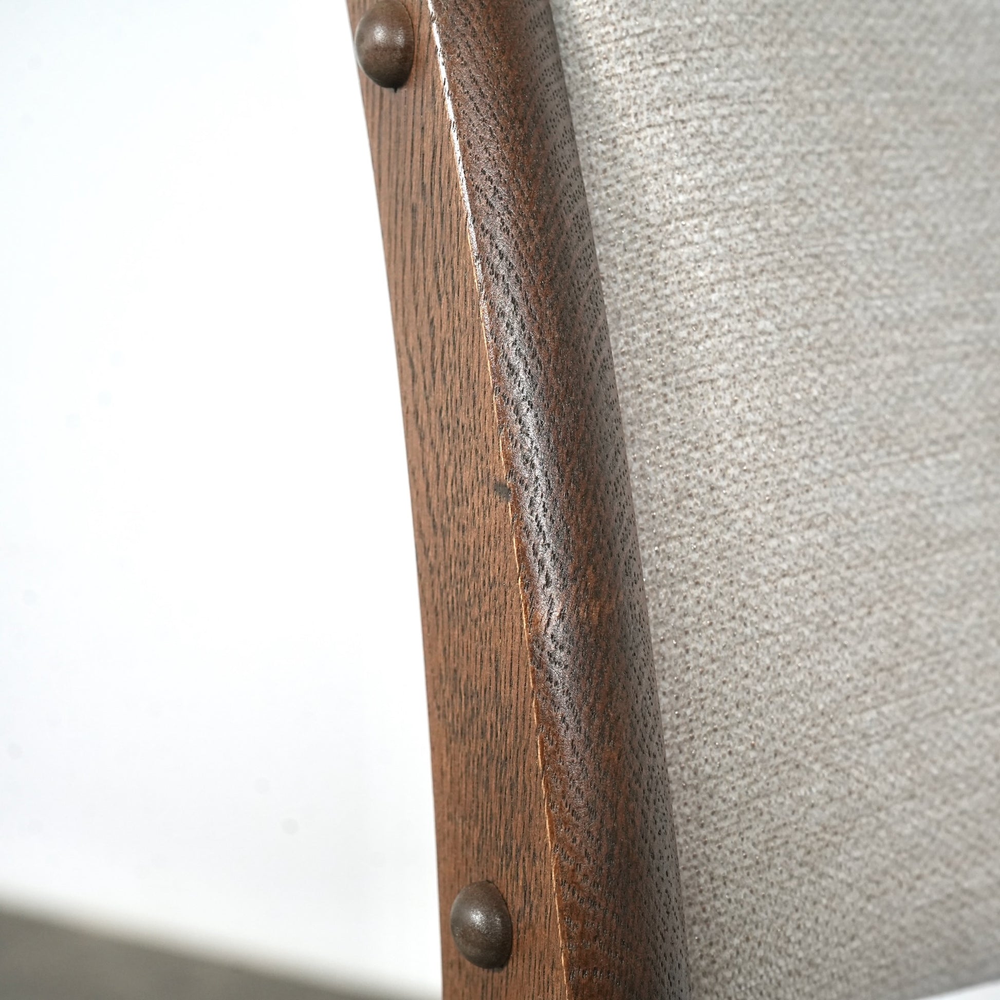 シンプルで無駄のないミニマルな構成ながらも、細部の丁寧な仕上げや美しい接合、そして何より全体のシャープなラインからは、デンマークらしい高いクラフトマンシップと美意識がしっかりと伝わってくる一脚です。
