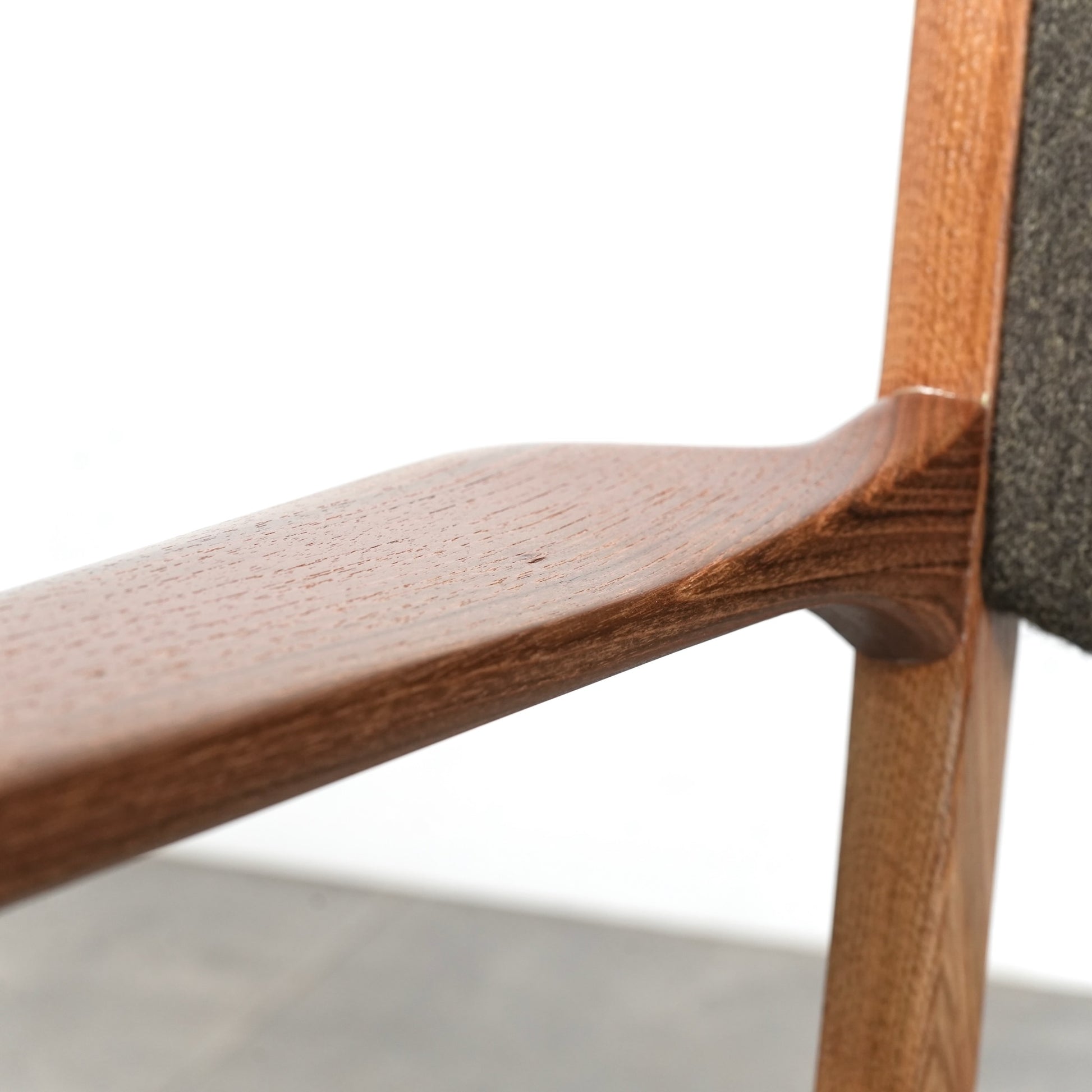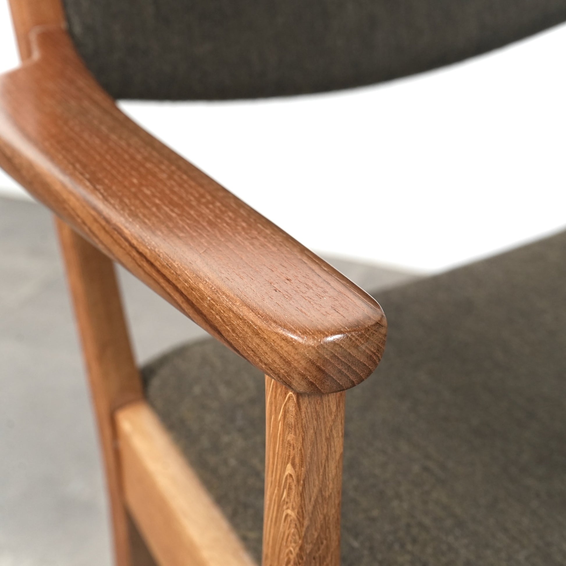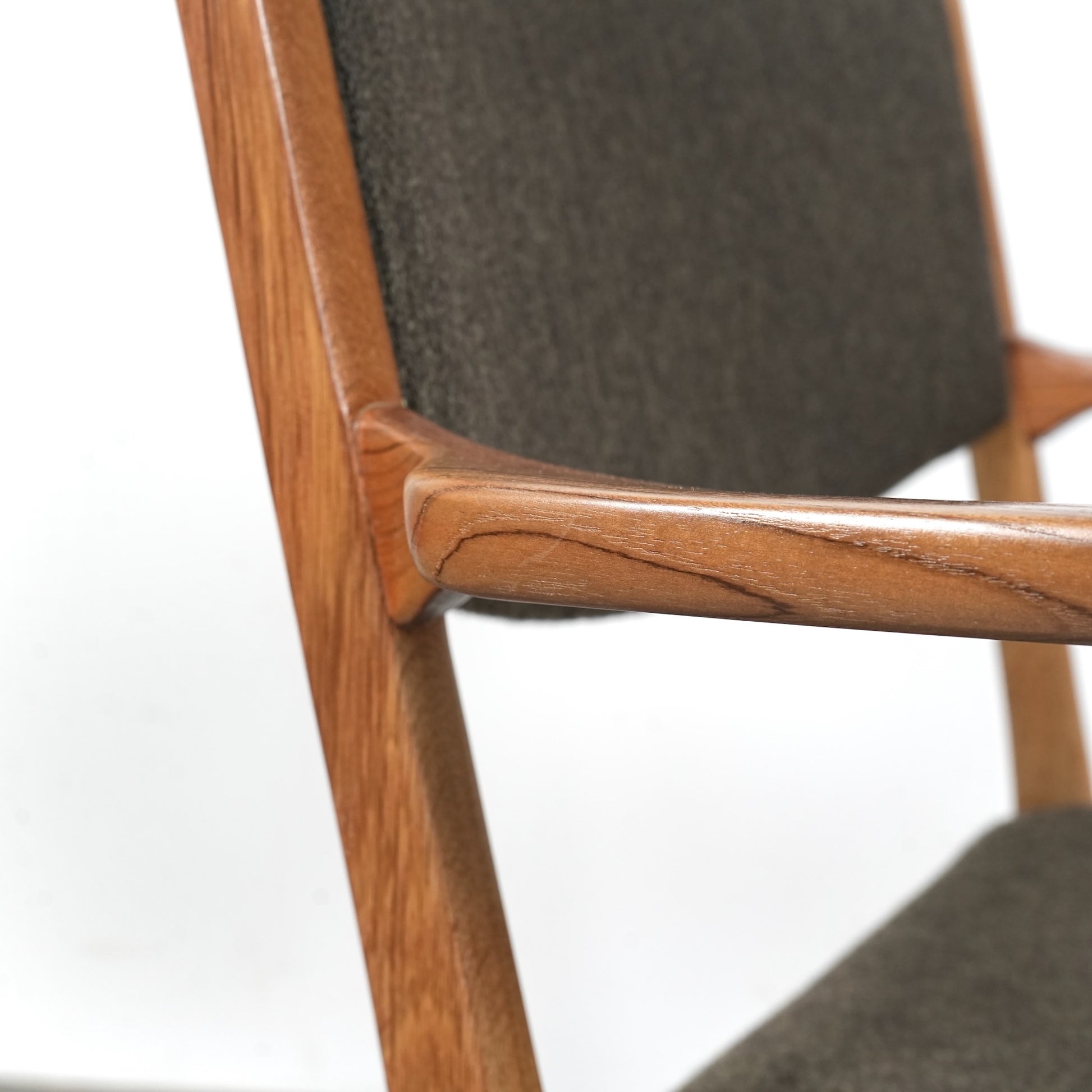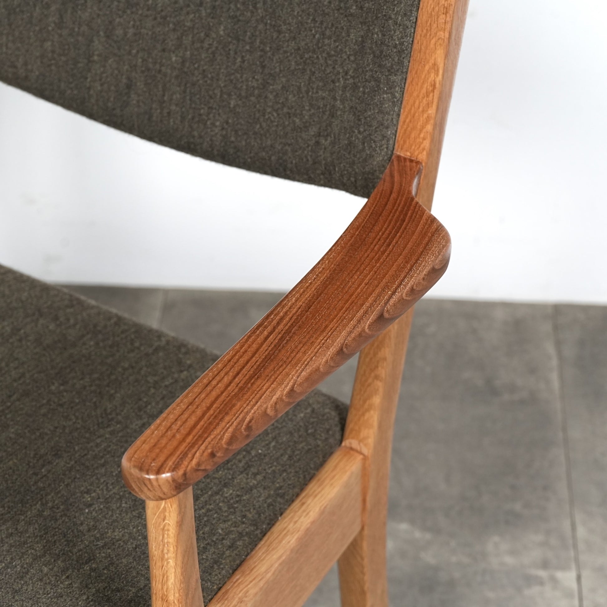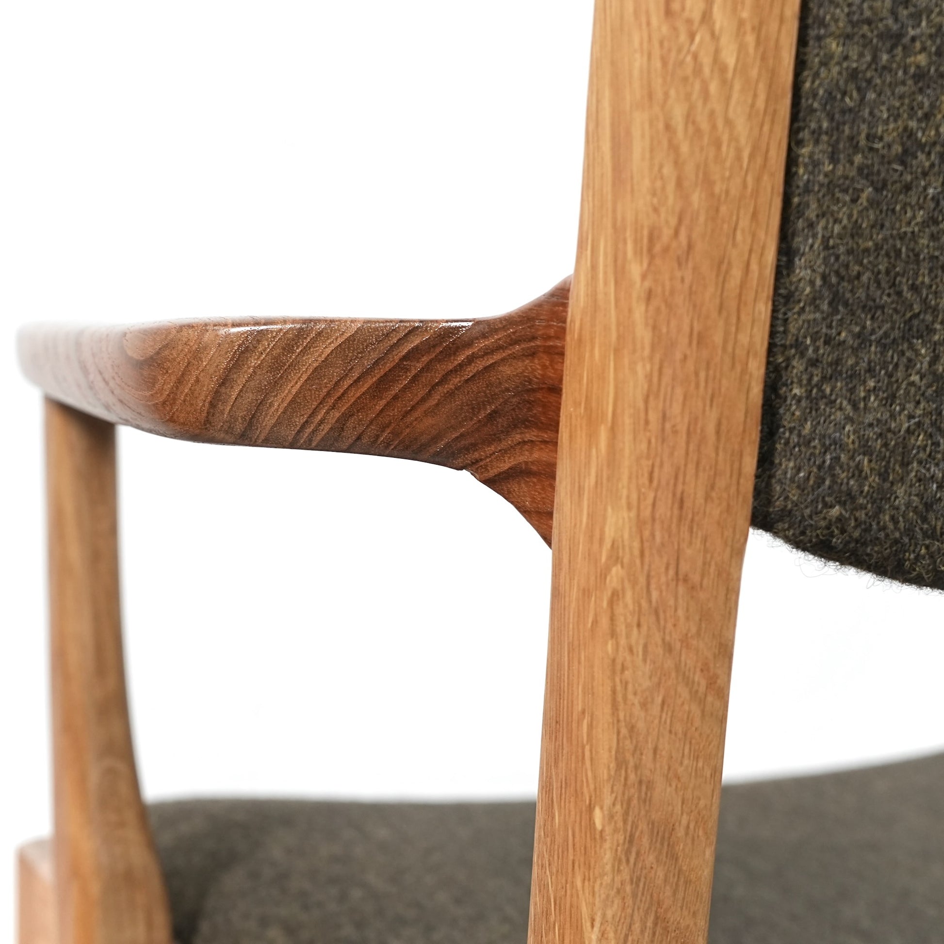 特にアーム部分の流れるようなラインは本当に美しく、オーク材×チーク材の組み合わせも見事なコントラストを生み出しています。