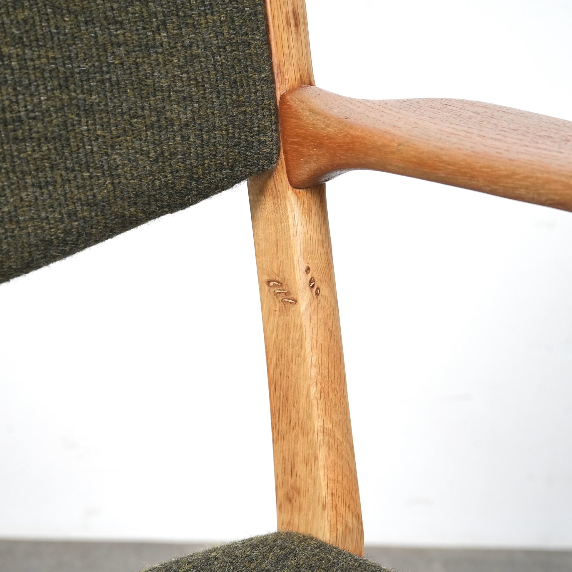 特にアーム部分の流れるようなラインは本当に美しく、オーク材×チーク材の組み合わせも見事なコントラストを生み出しています。